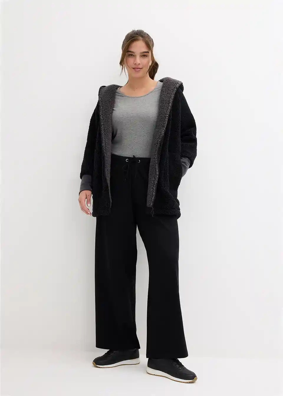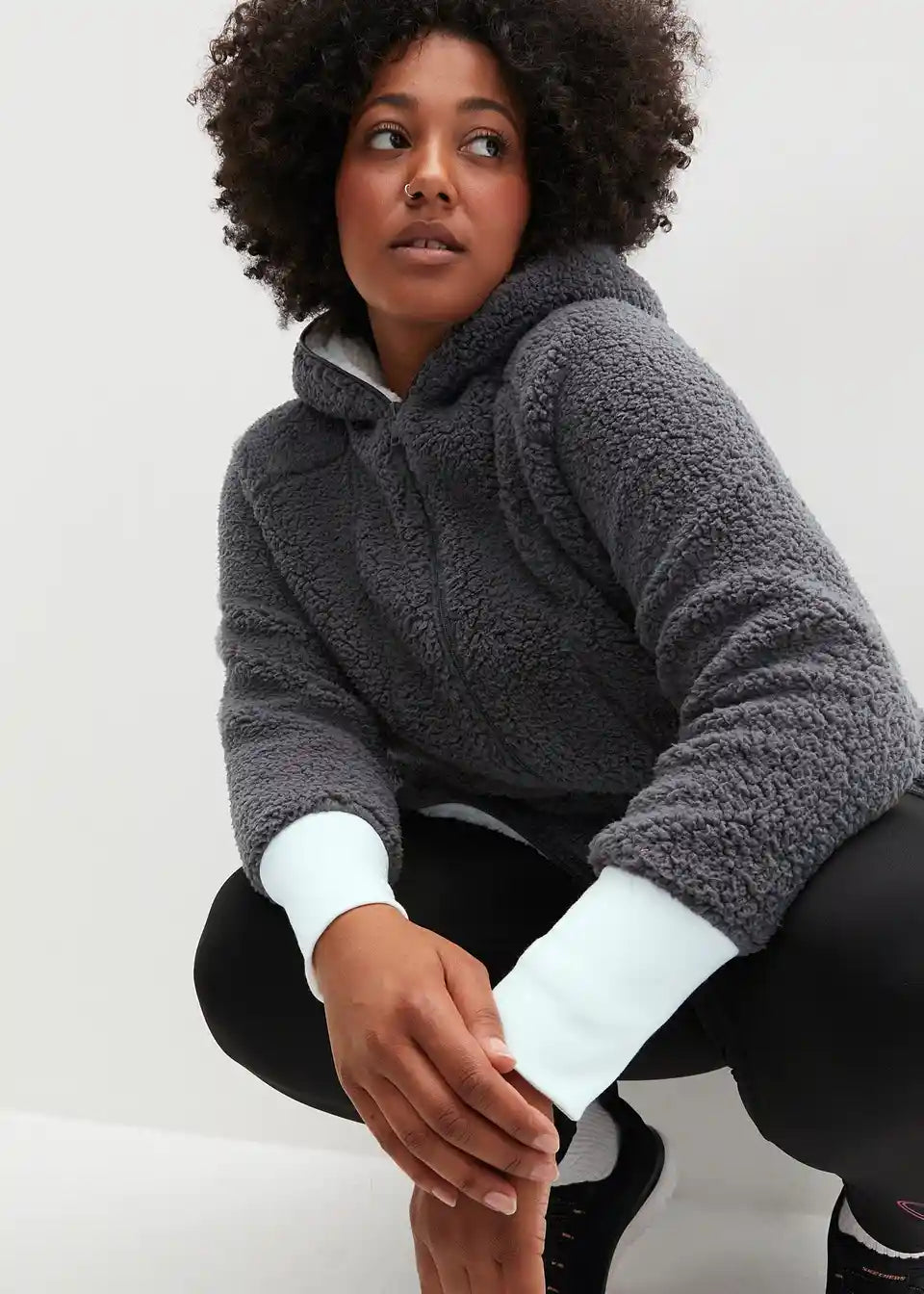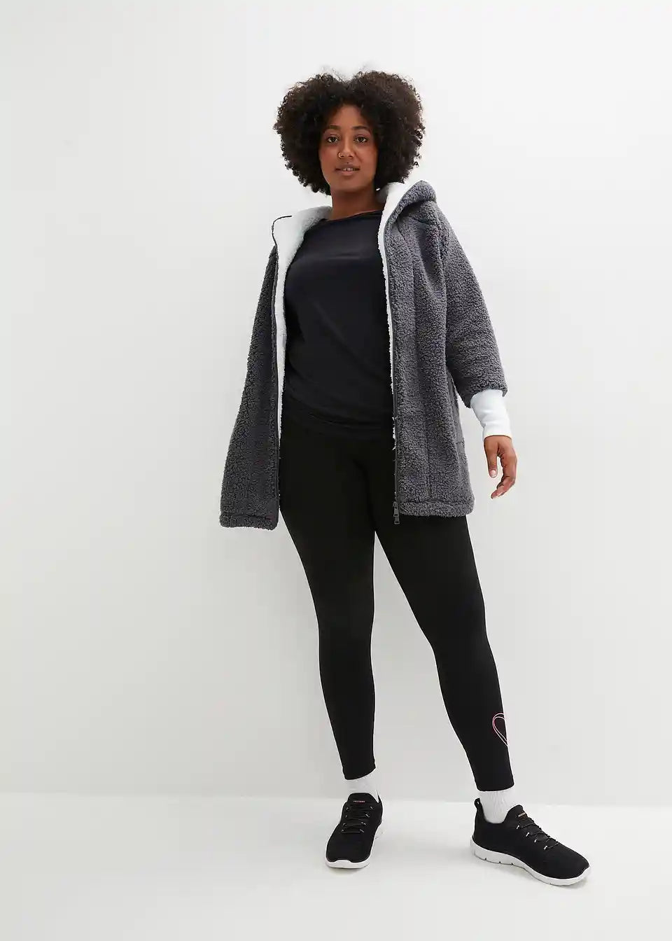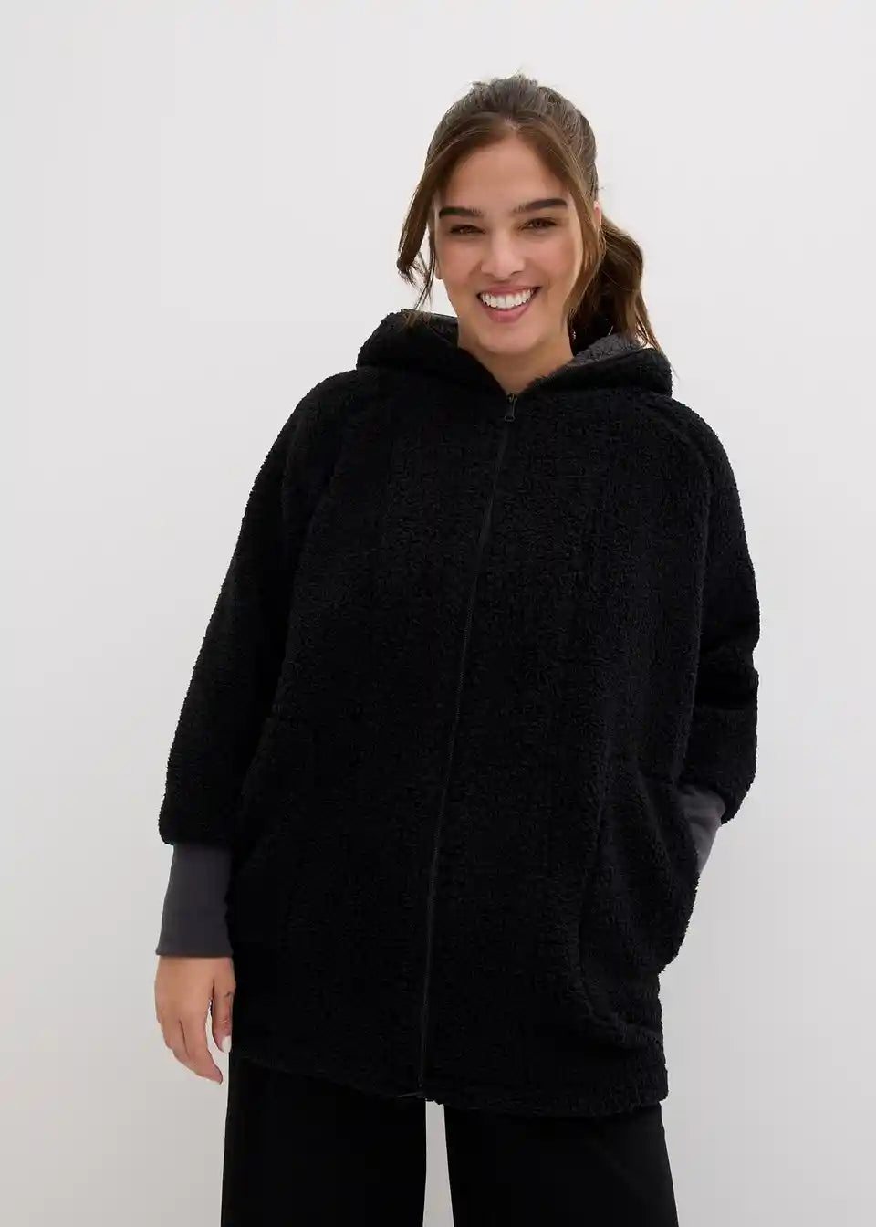 Oversized Teddy-Fleece kaput s džepovima i dvosmjernim patentnim zatvaračem koji se može zatvoriti zajedno s kapuljačom