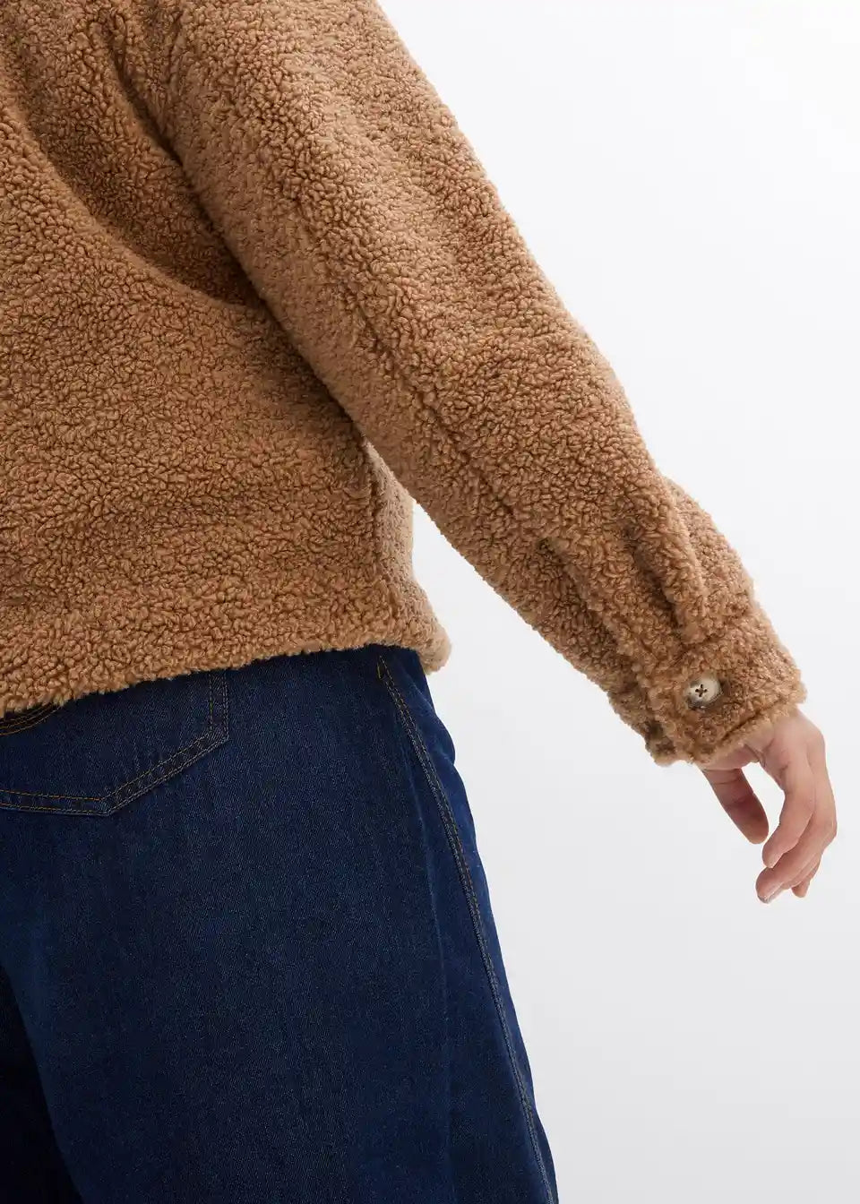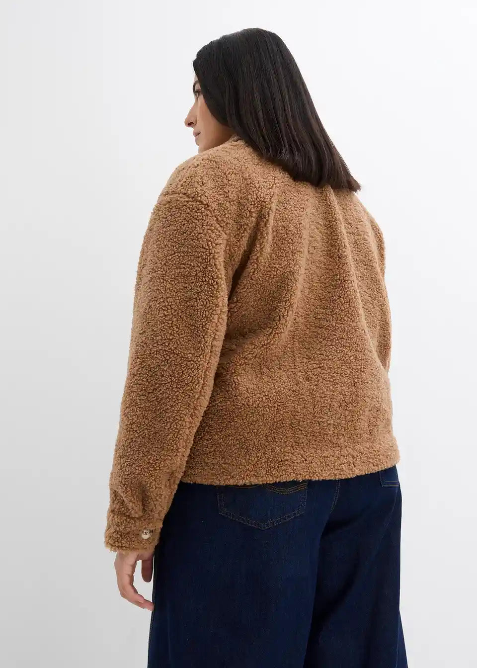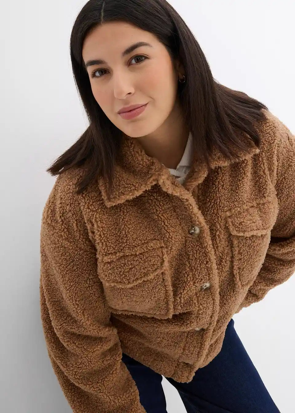 Moderni skraćeni teddy jakna s ovratnikom i kopčanjem na gumbe