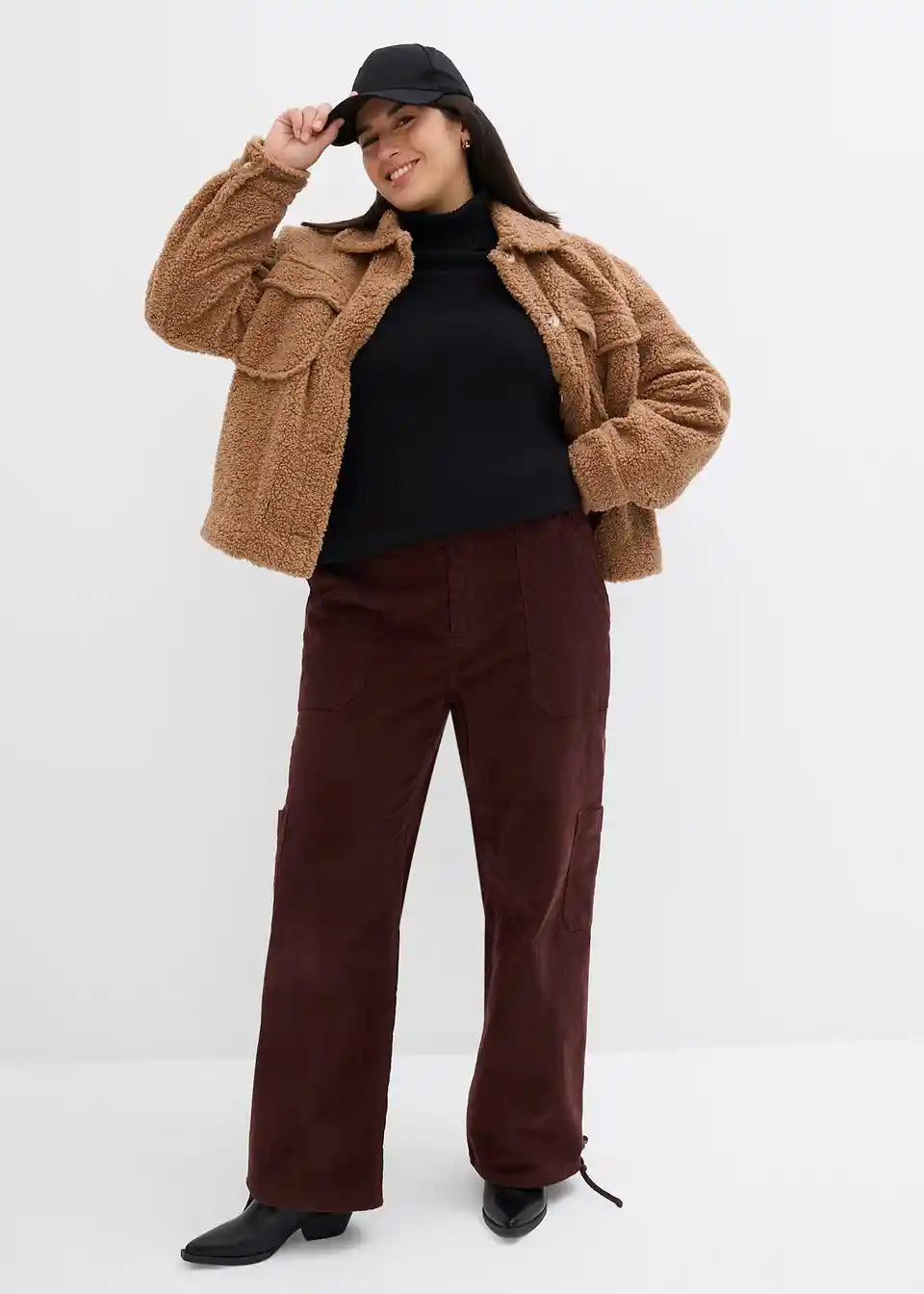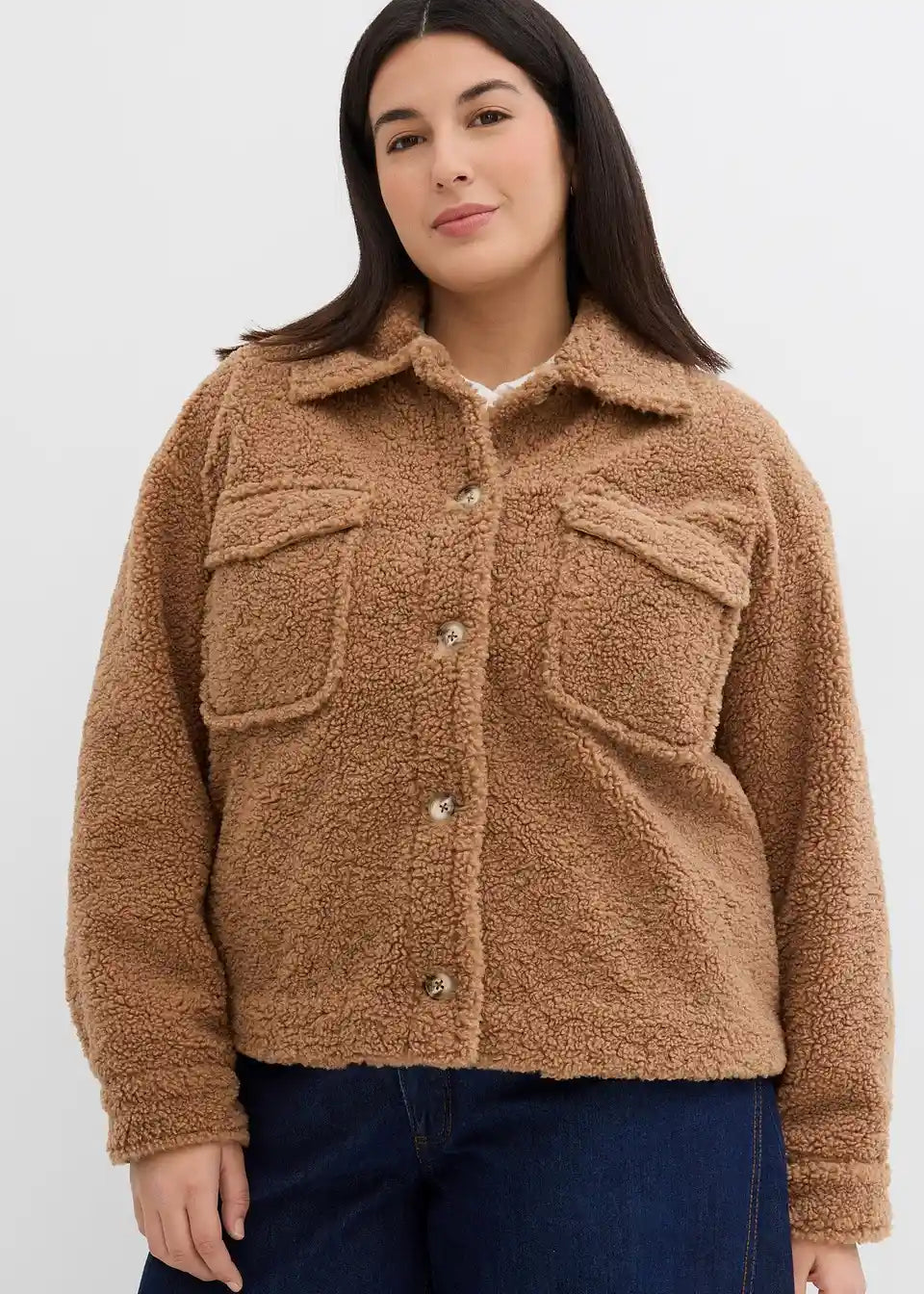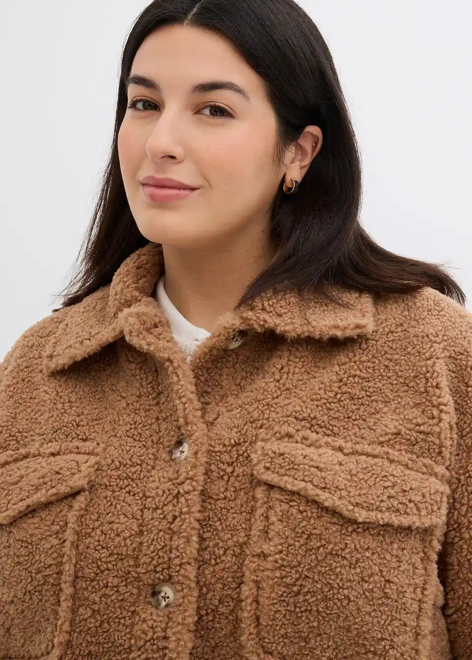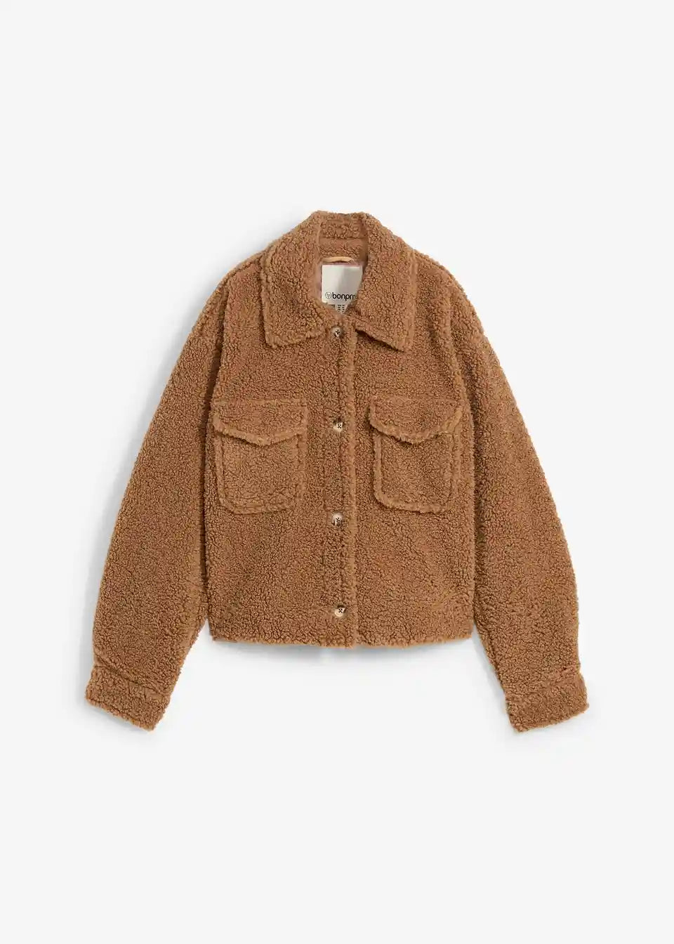 Moderni skraćeni teddy jakna s ovratnikom i kopčanjem na gumbe