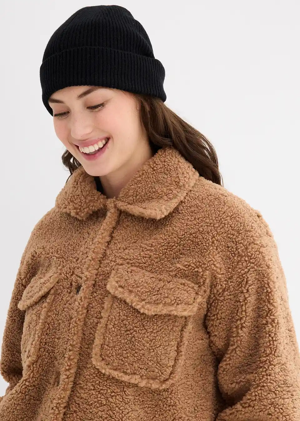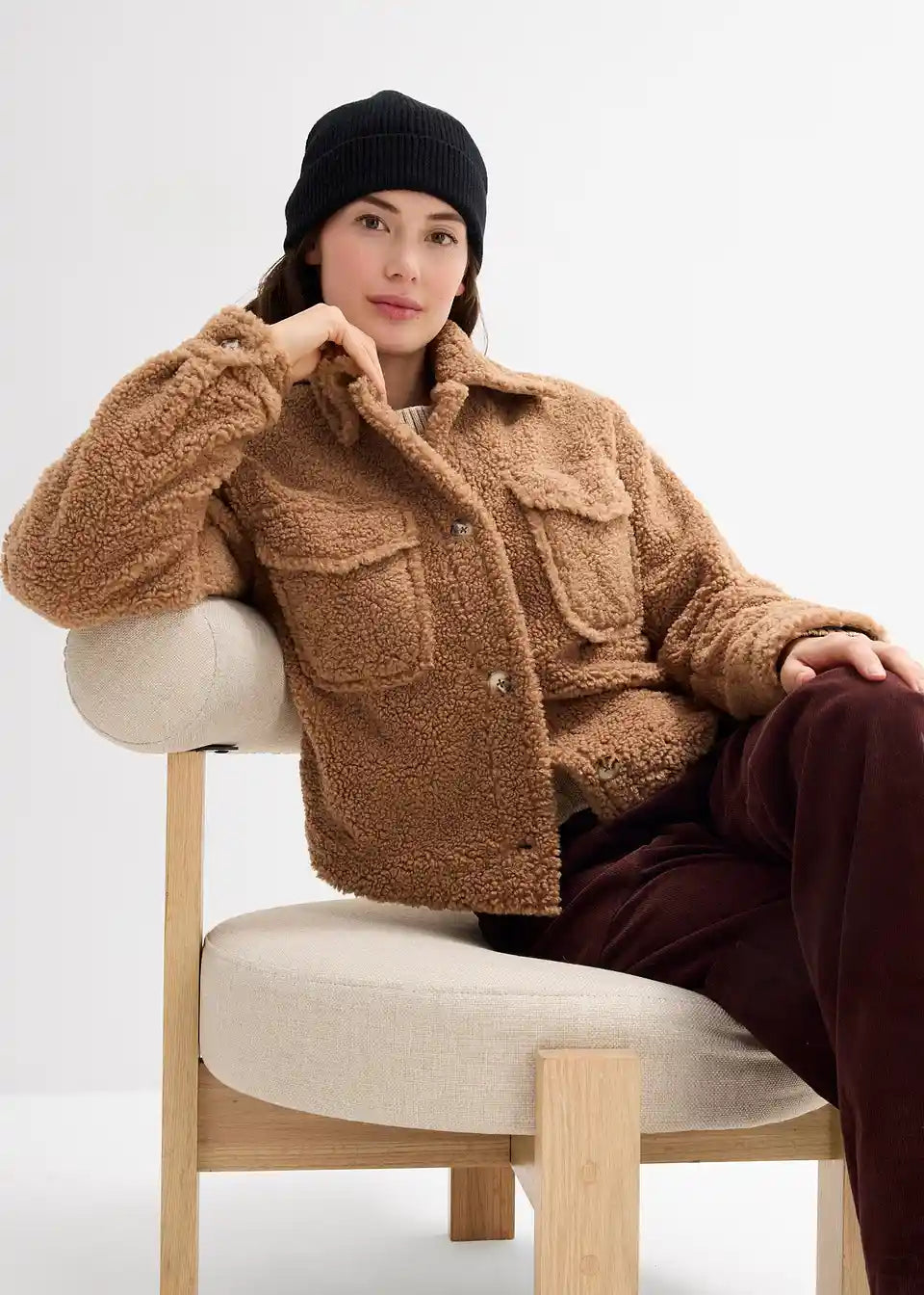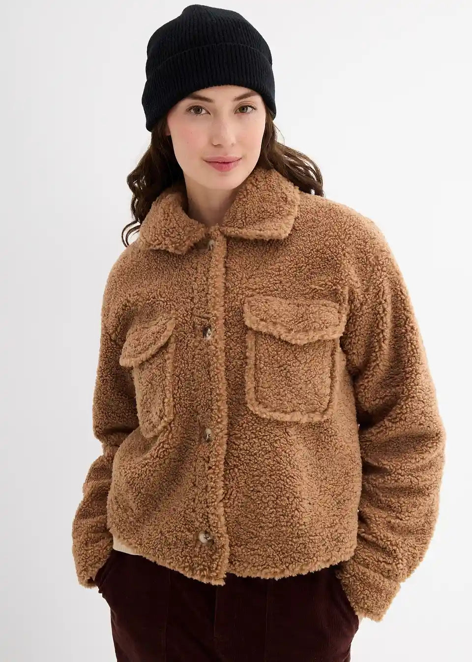 Jakna od teddy krzna s našivenim džepovima