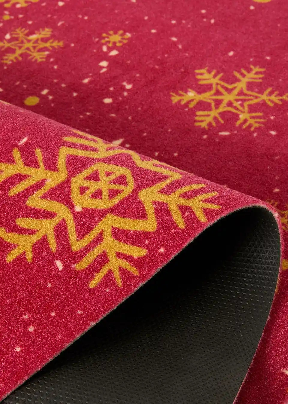 Otisnut tepih s božićnim motivom, periv i jednostavan za održavanje, s premazom na stražnjoj strani, stoga neklizajući.