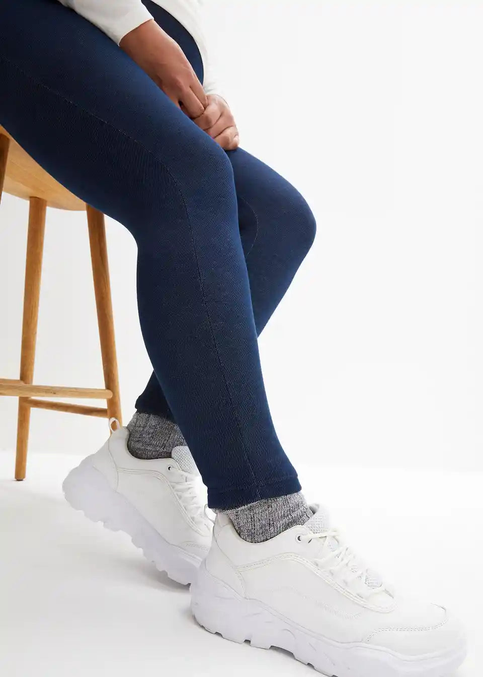 Udobne, dužine do gležnja termo-leggings od funkcionalnog materijala u izgledu traperica. Široki, pričvršćeni džersej pojas osigurava optimalno pristajanje na trbuhu.