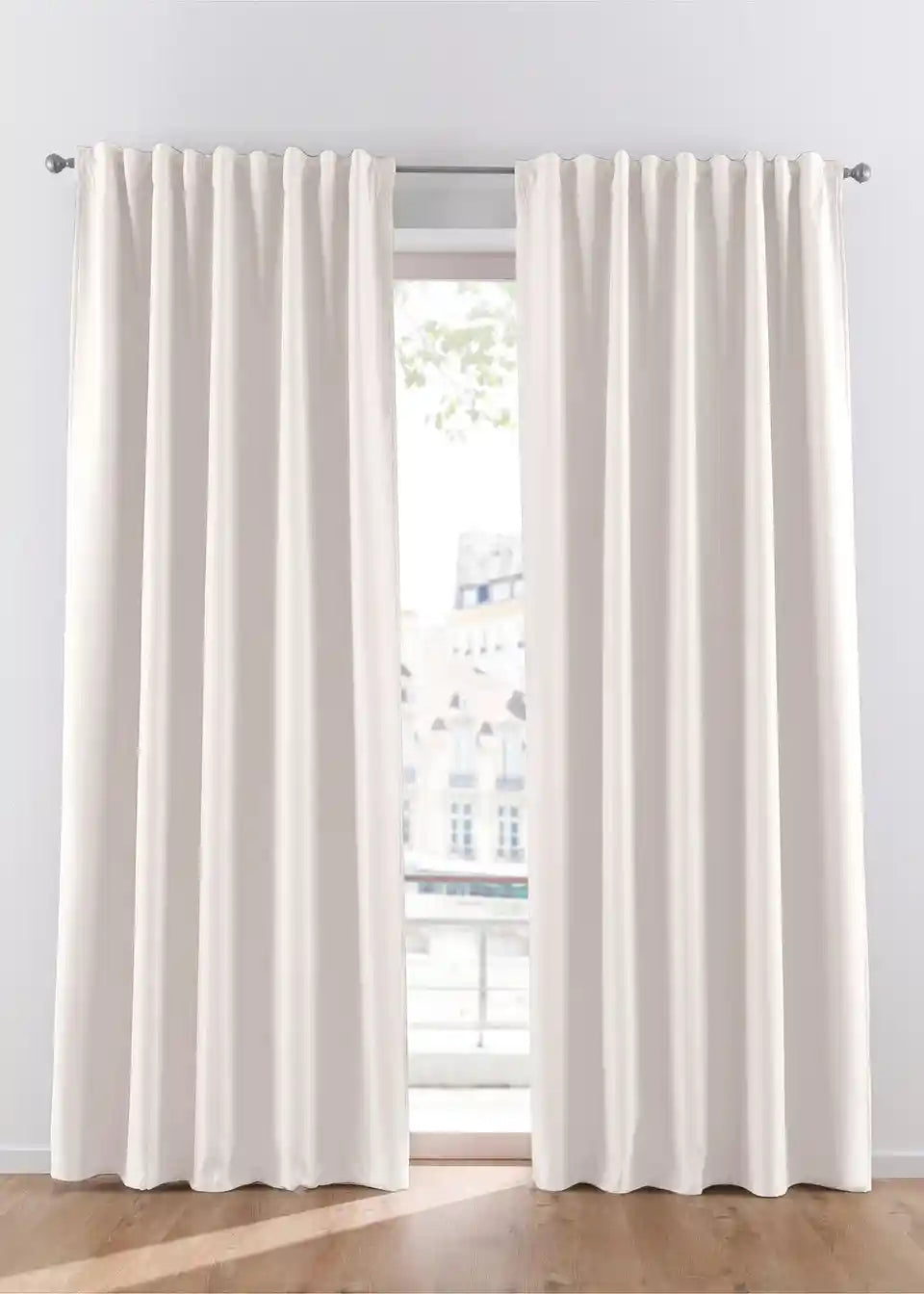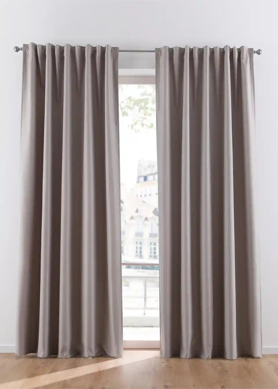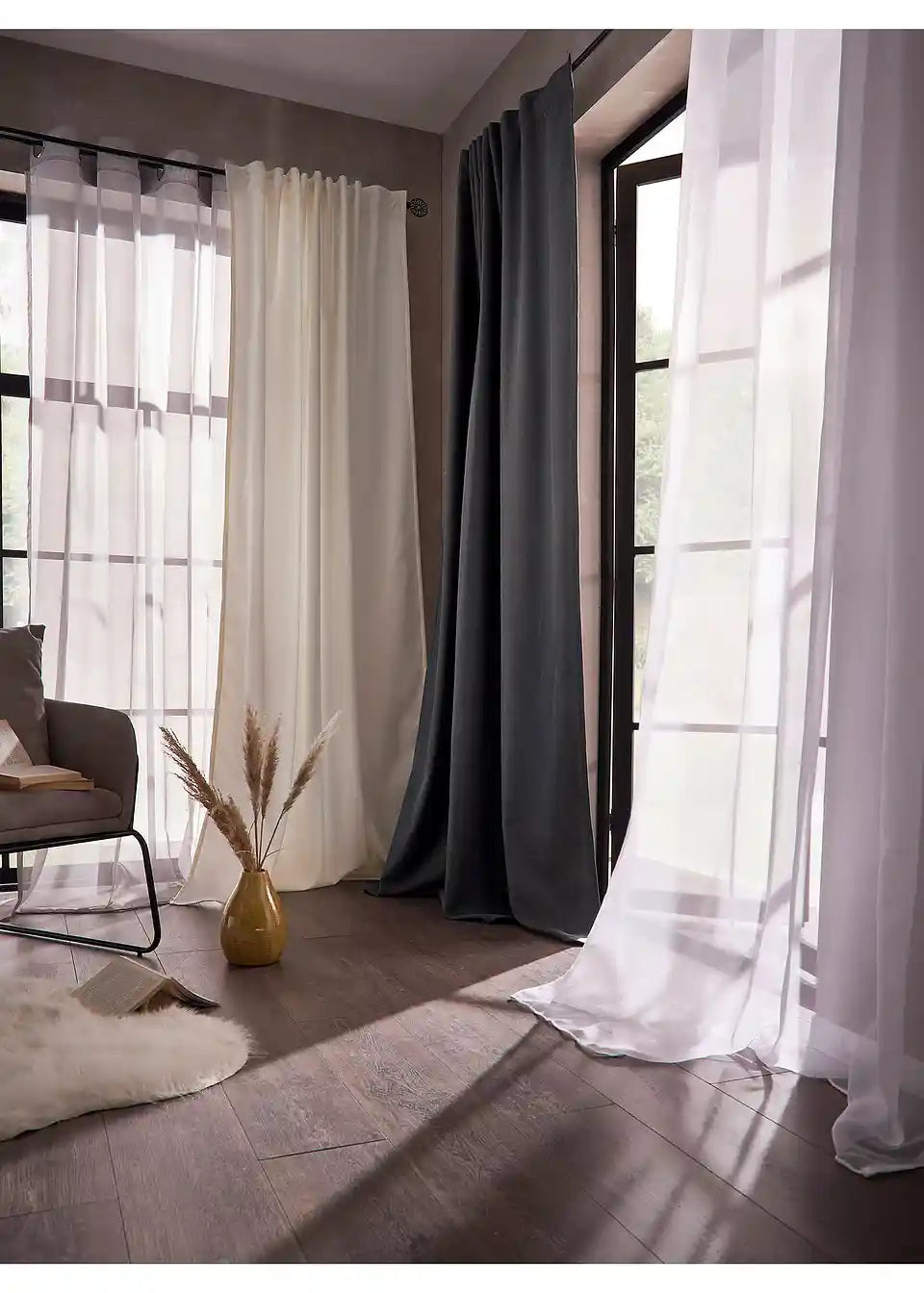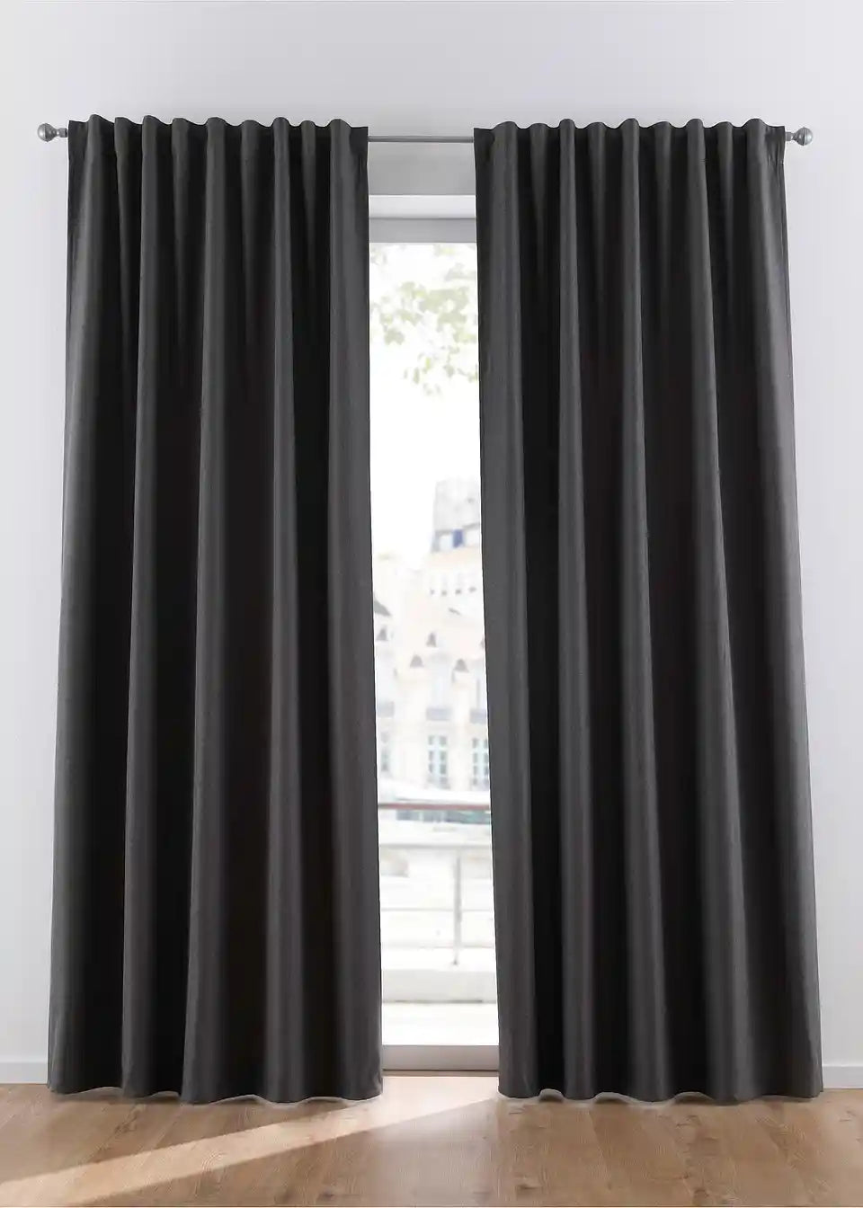Ova bezvremenska i jednostavna termo zavjesa može svojim teškim materijalom spriječiti hladne propuhe i toplinu. Na taj način može pomoći u uštedi energije. Bilo u spavaćoj sobi, dnevnom boravku ili hodniku kao zamjena za vrata - ova zavjesa je svestrano primjenjiva. Stražnja strana je nešto svjetlija od prednje i hrapava.