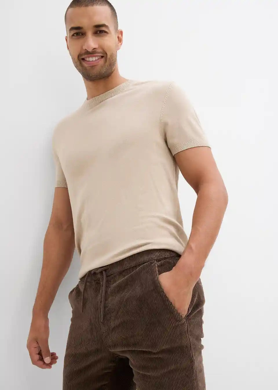 Mekano podstavljene cord hlače s vezicom i četiri džepa