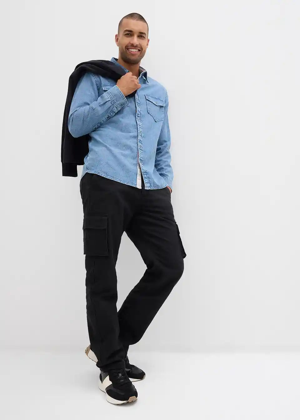 Zimske komotne hlače s cargo džepovima, podstavom od flanela i komotnim strukom ravnog kroja