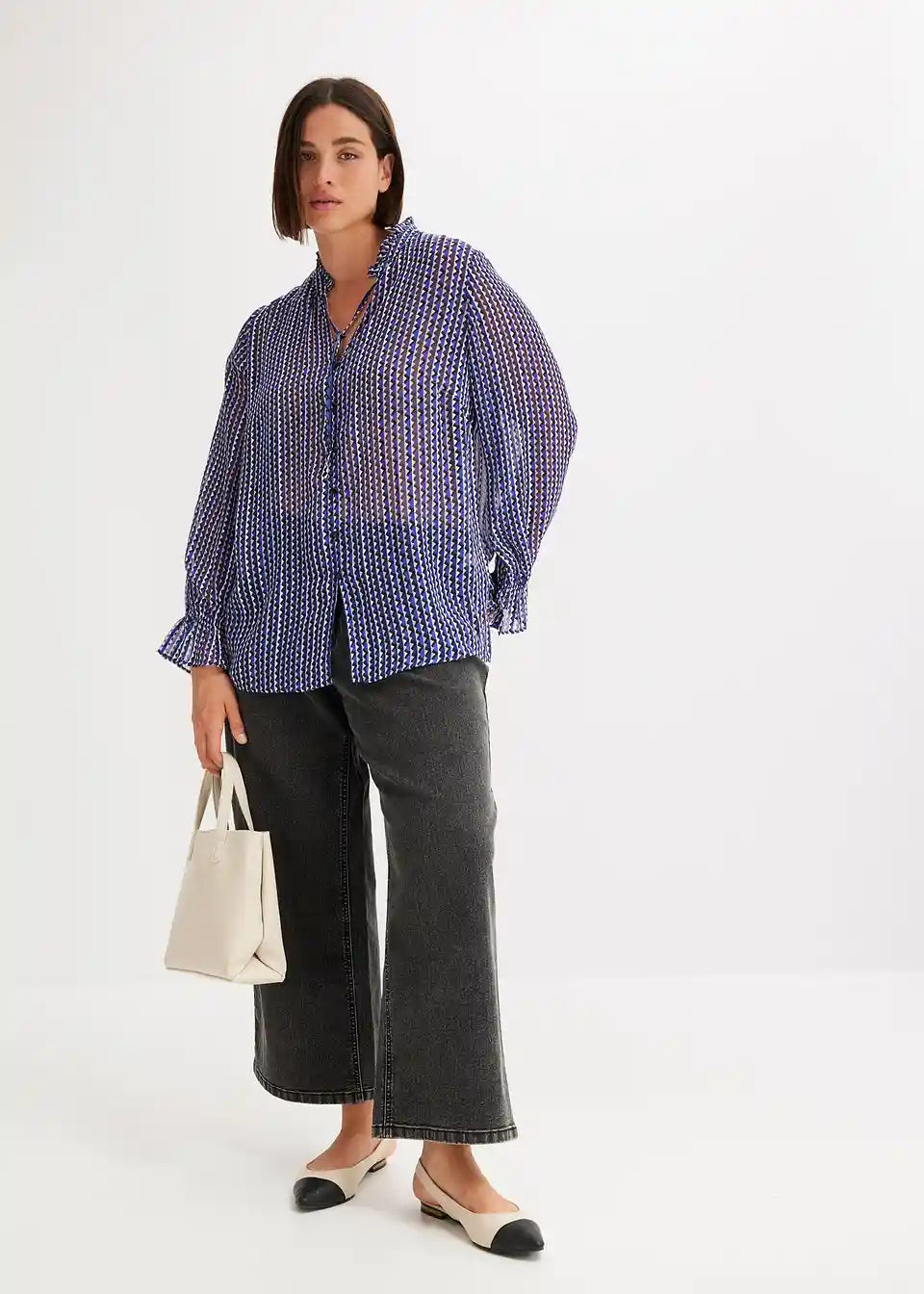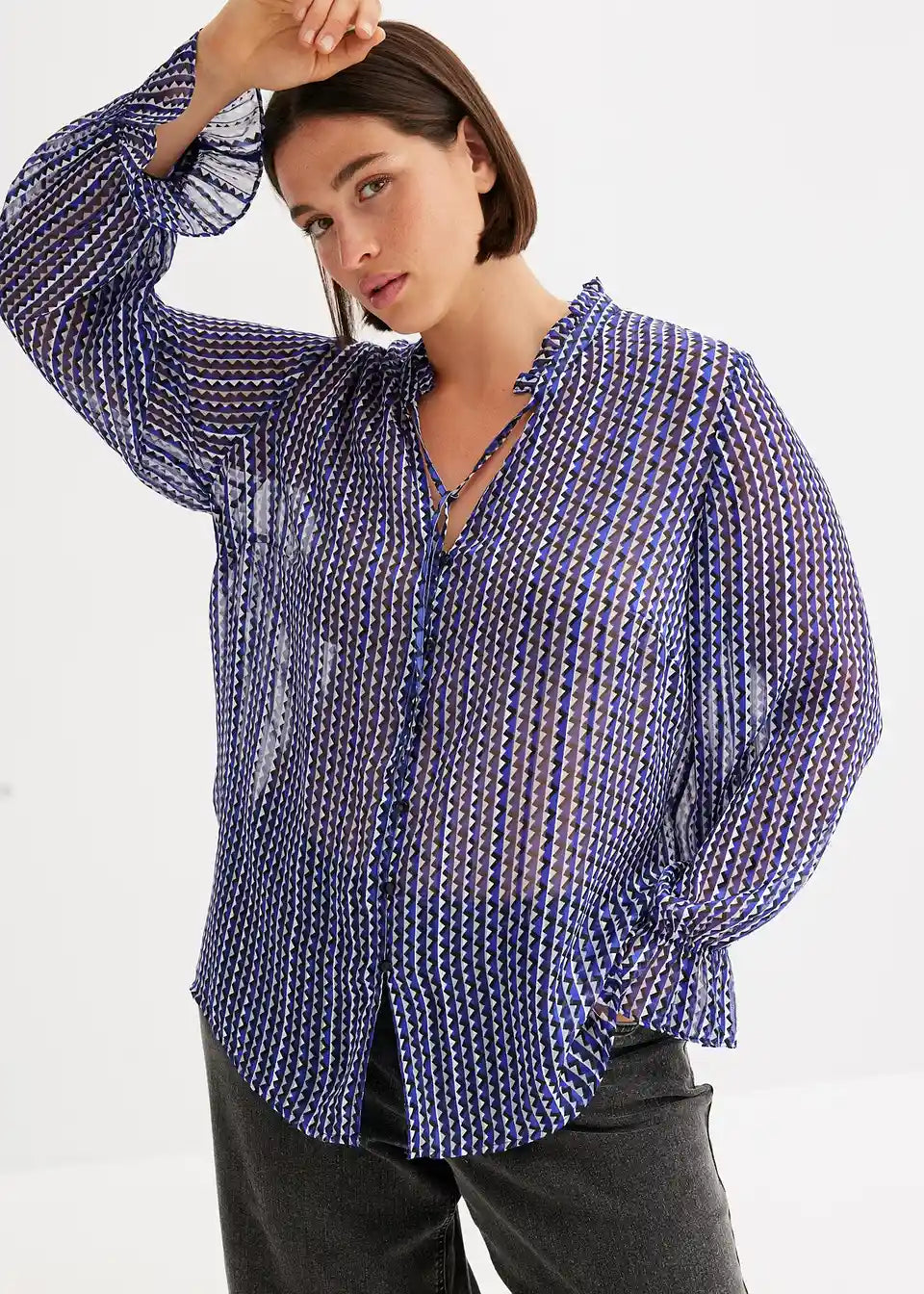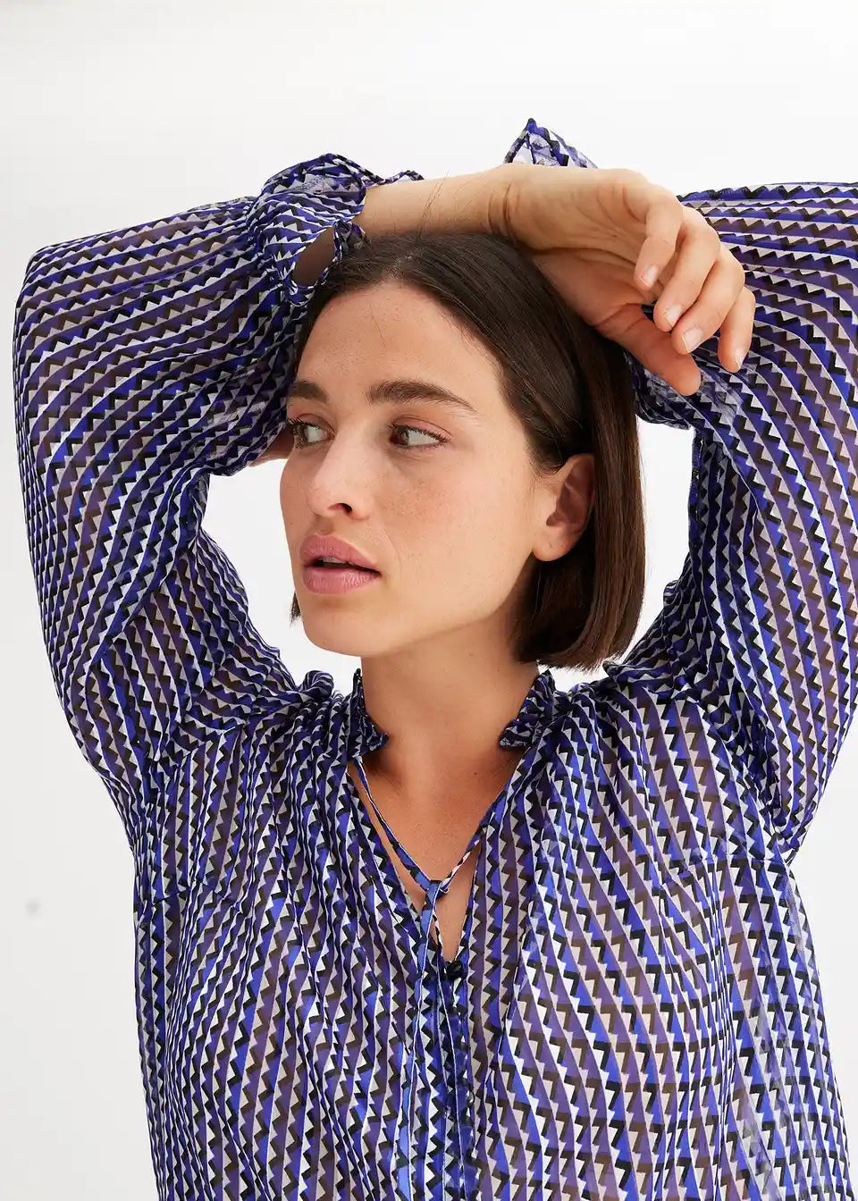 tiskana bluza s malim vezanjem sprijeda na dekolteu