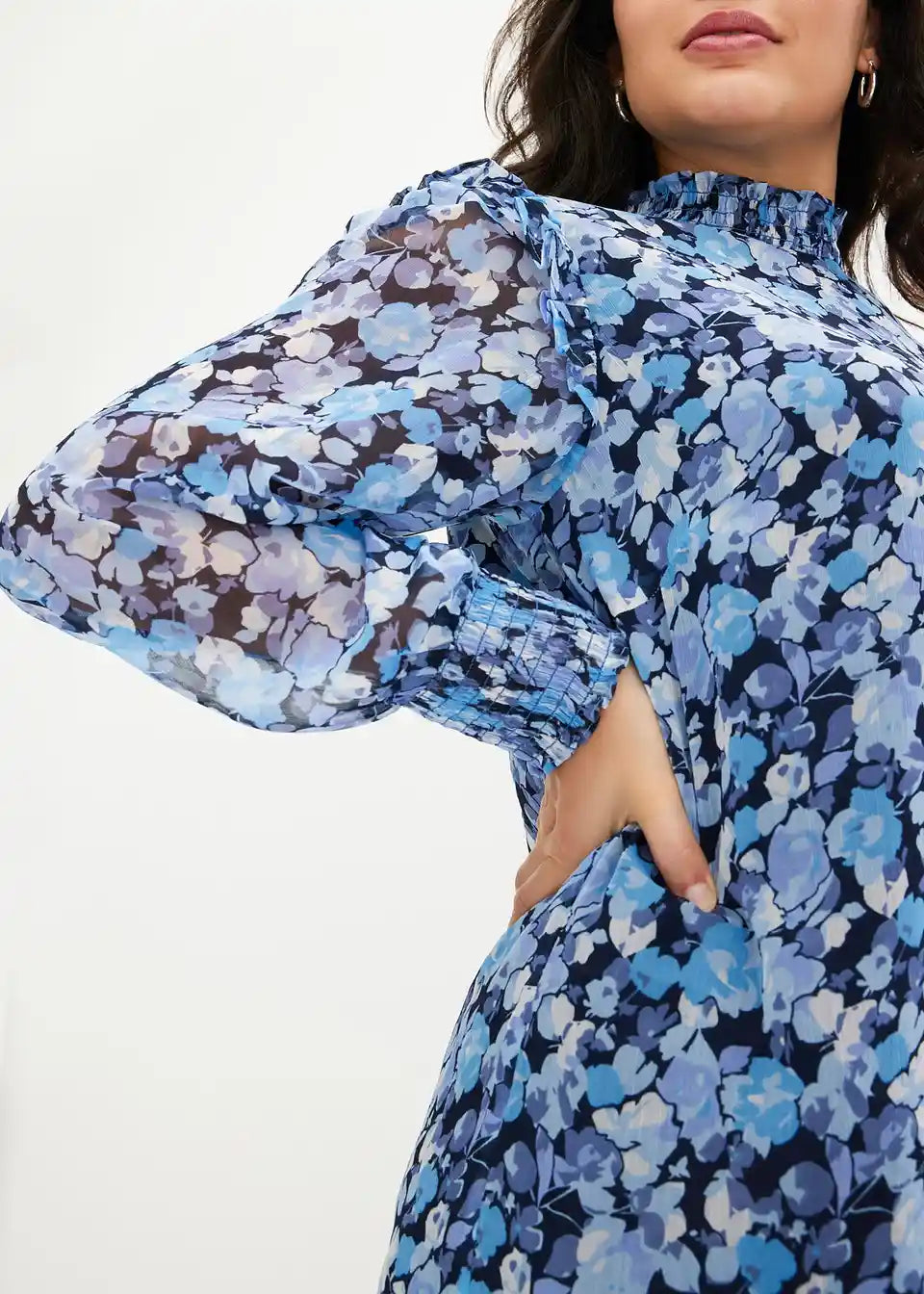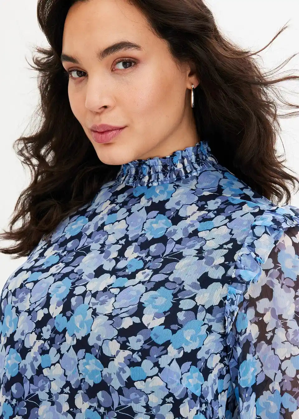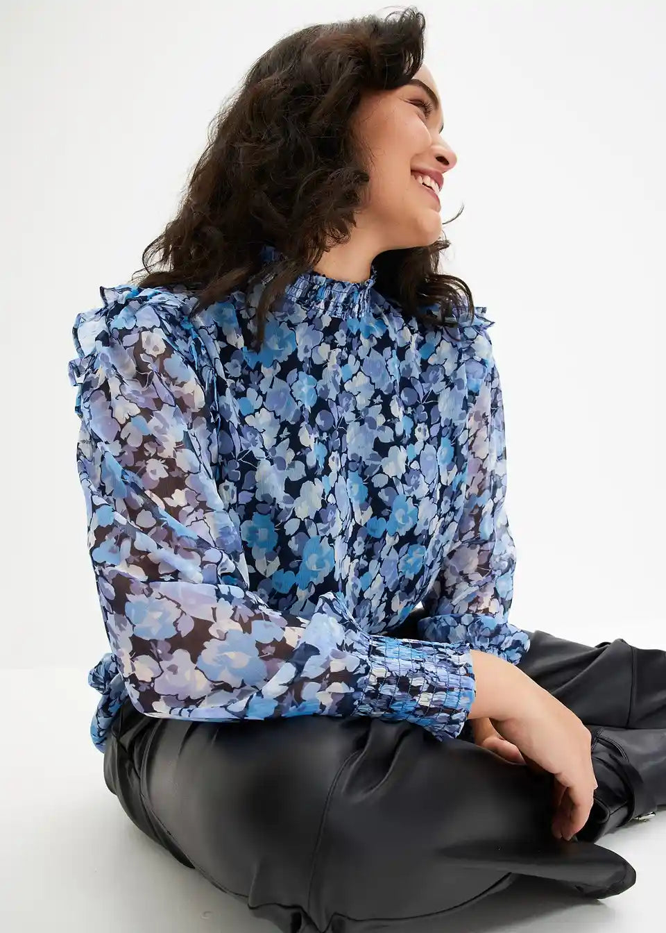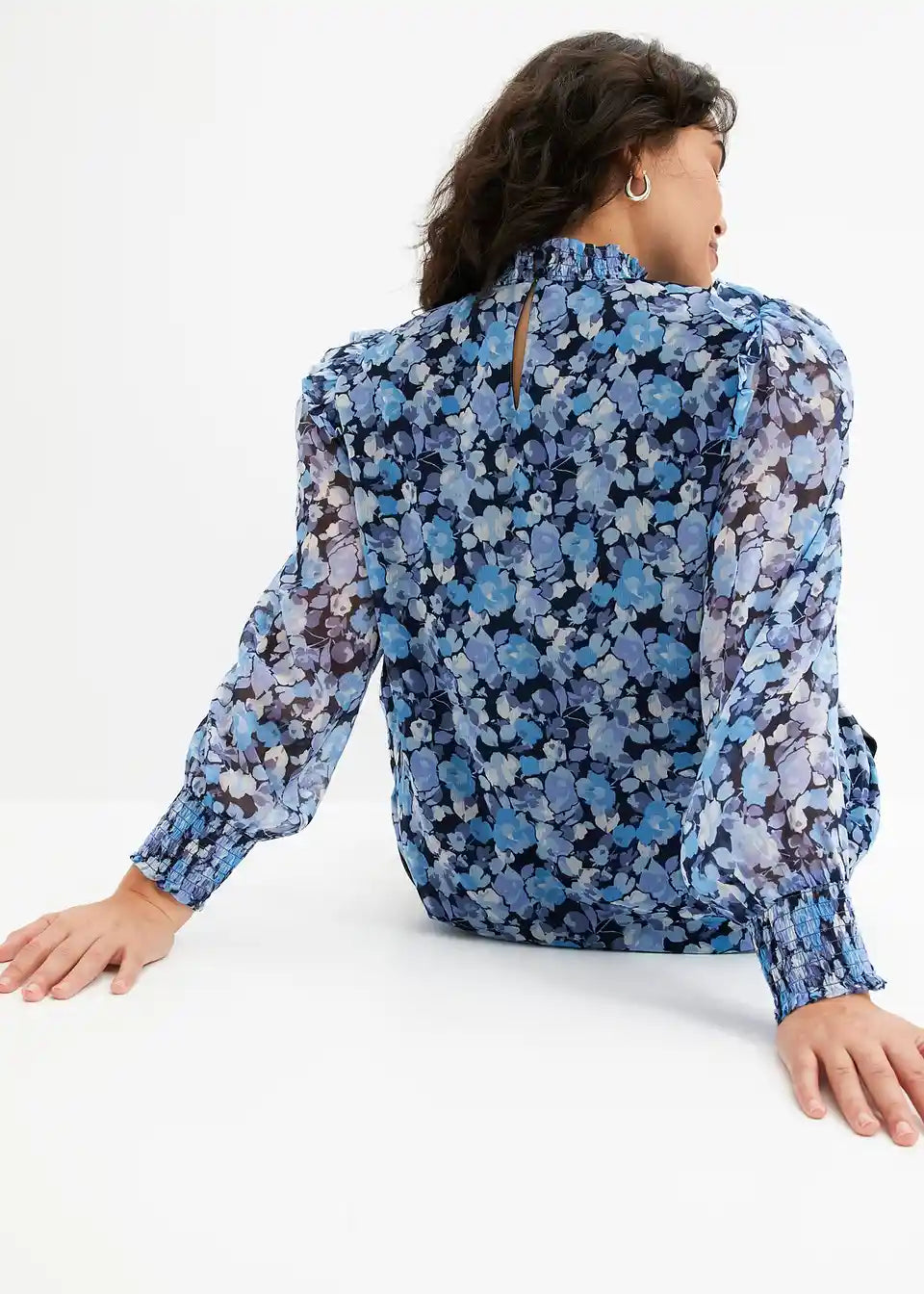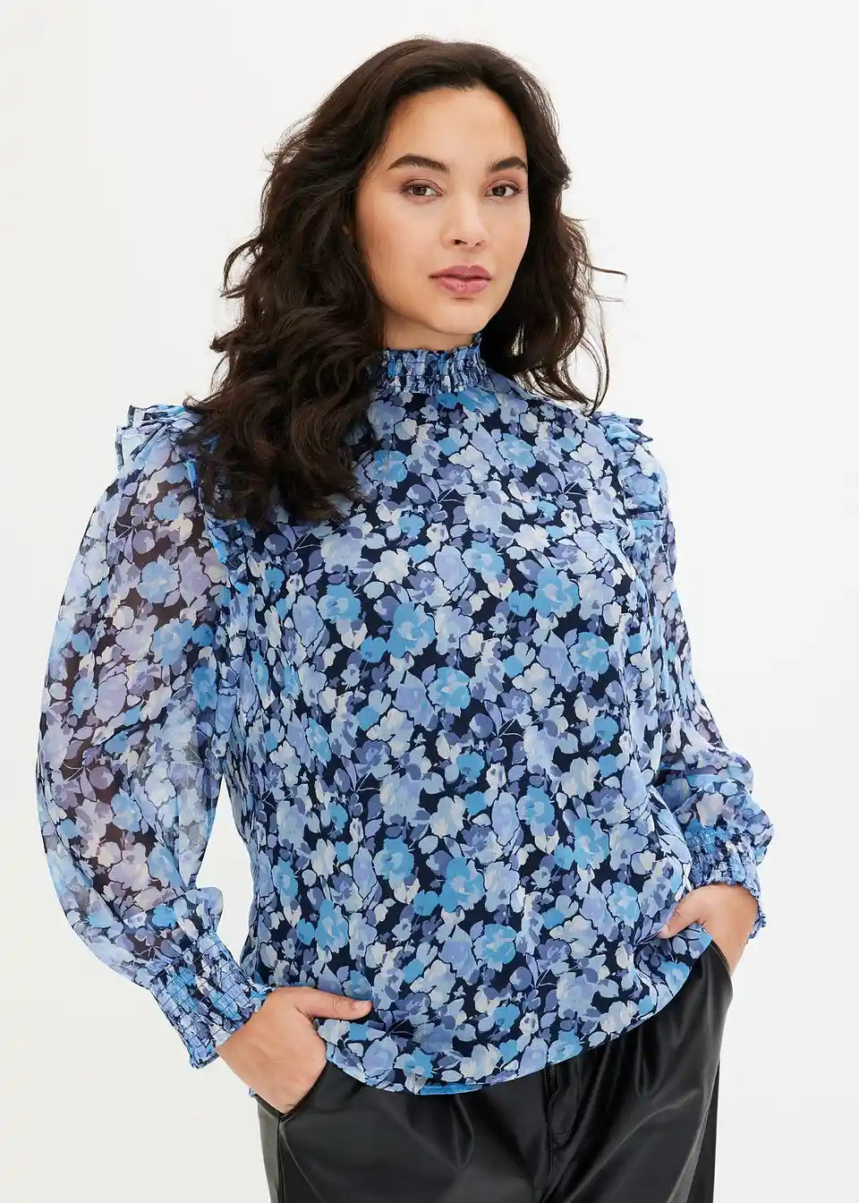 moderna bluza s visokim ovratnikom i cvjetnim printom