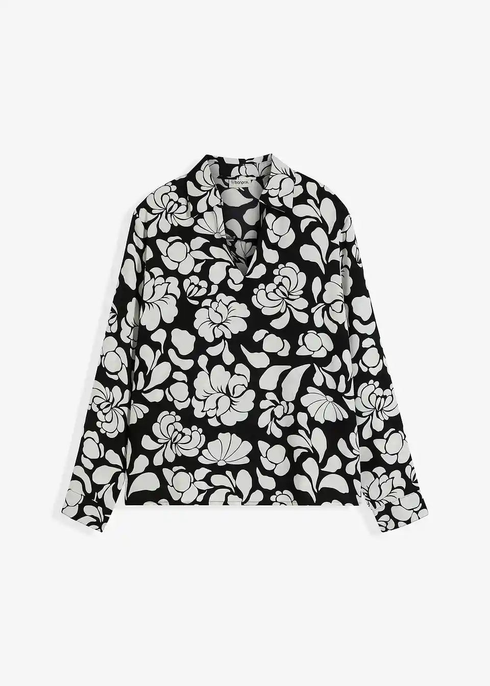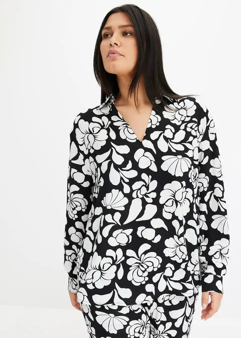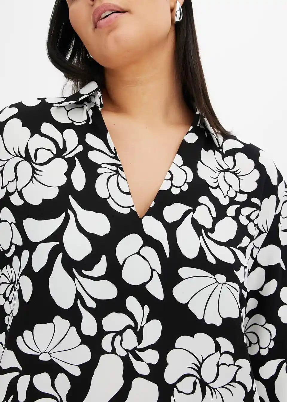 moderna tiskana bluza s V-izrezom i košuljastim ovratnikom