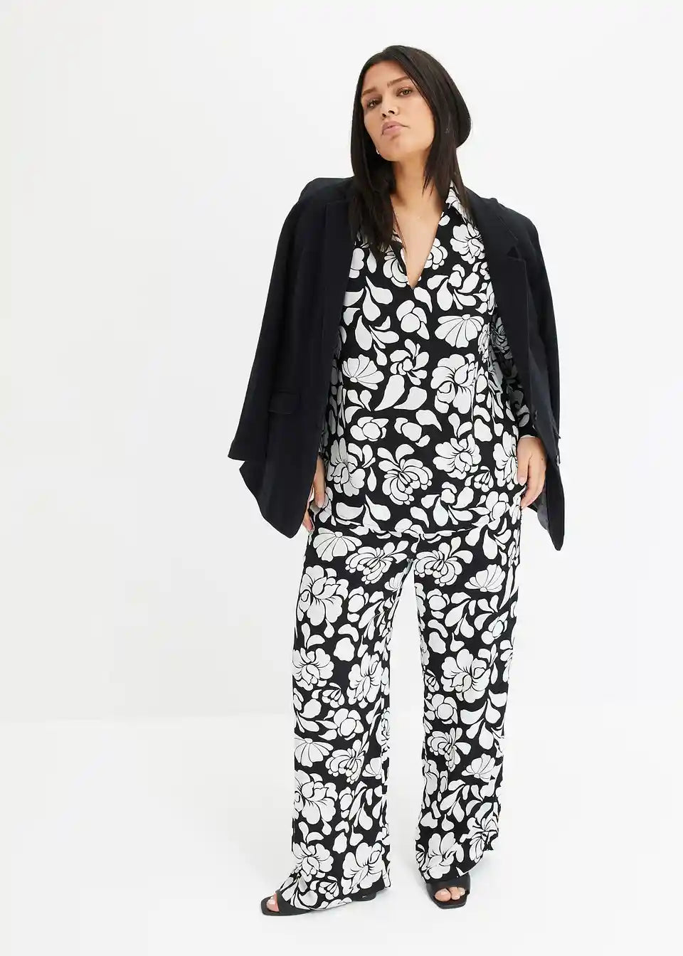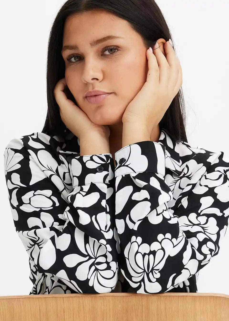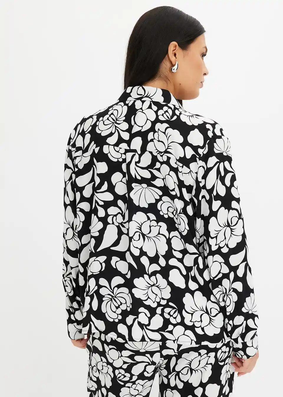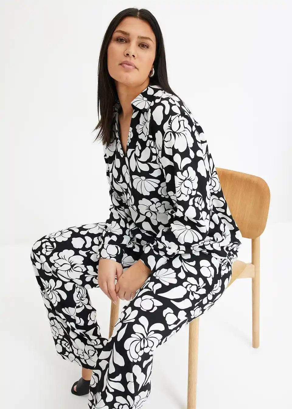 moderna tiskana bluza s V-izrezom i košuljastim ovratnikom