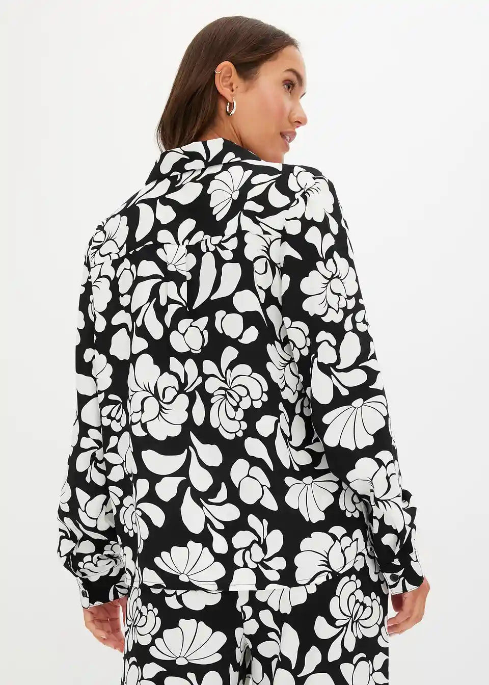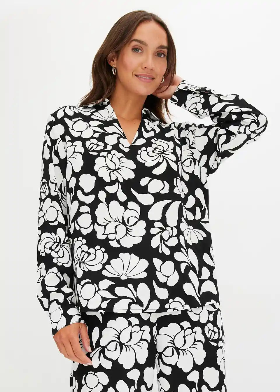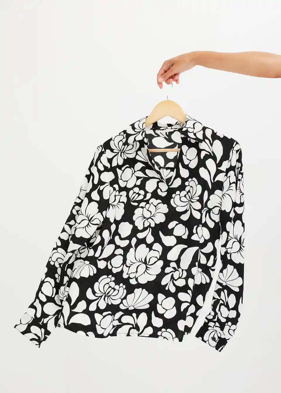 moderna tiskana bluza s V-izrezom i košuljskim ovratnikom