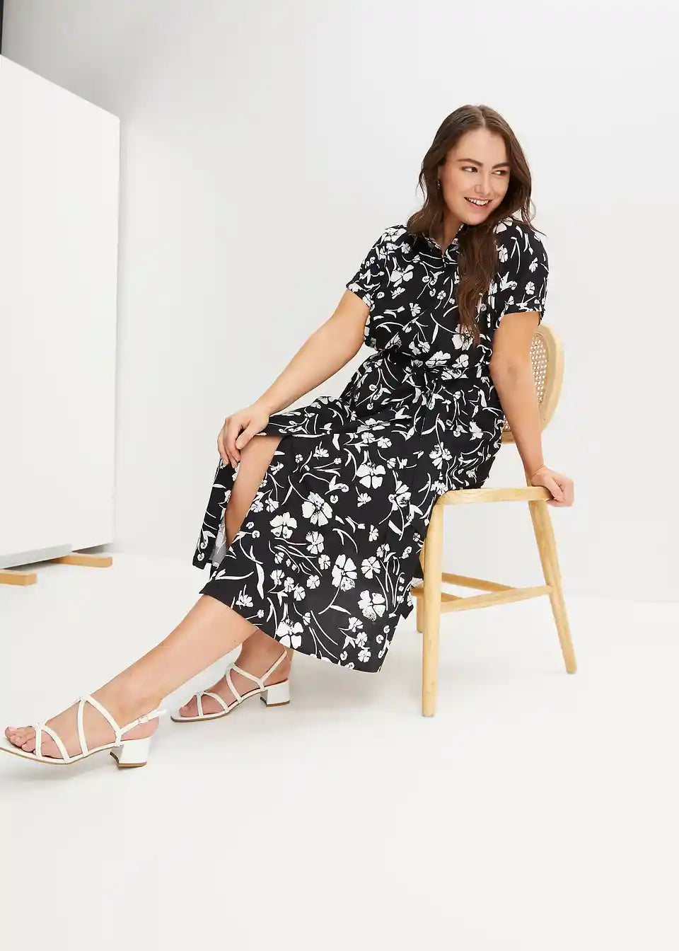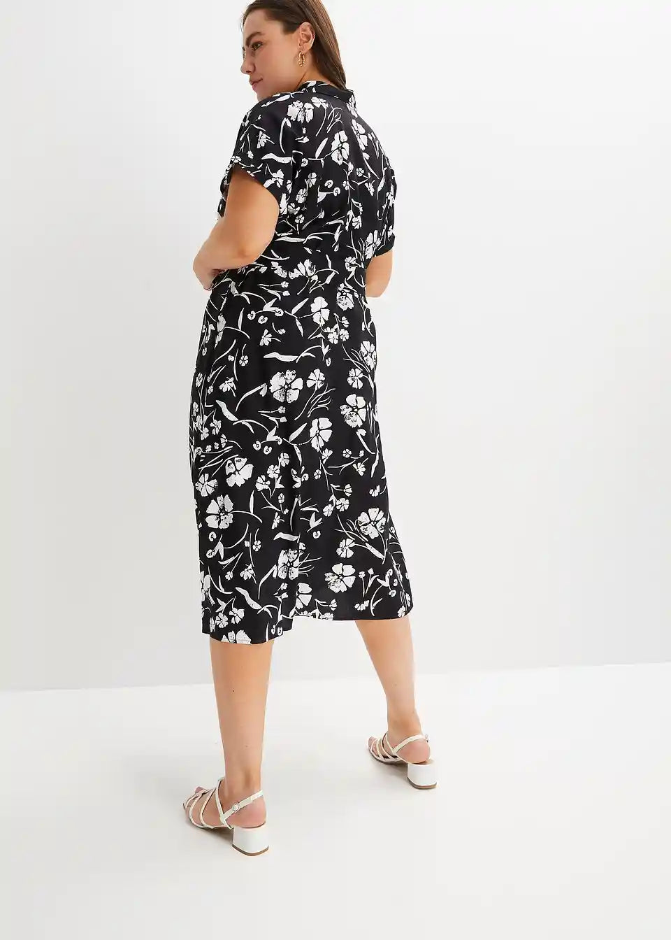Moderna haljina s kopčanjem na gumbe i pojasom za vezanje
