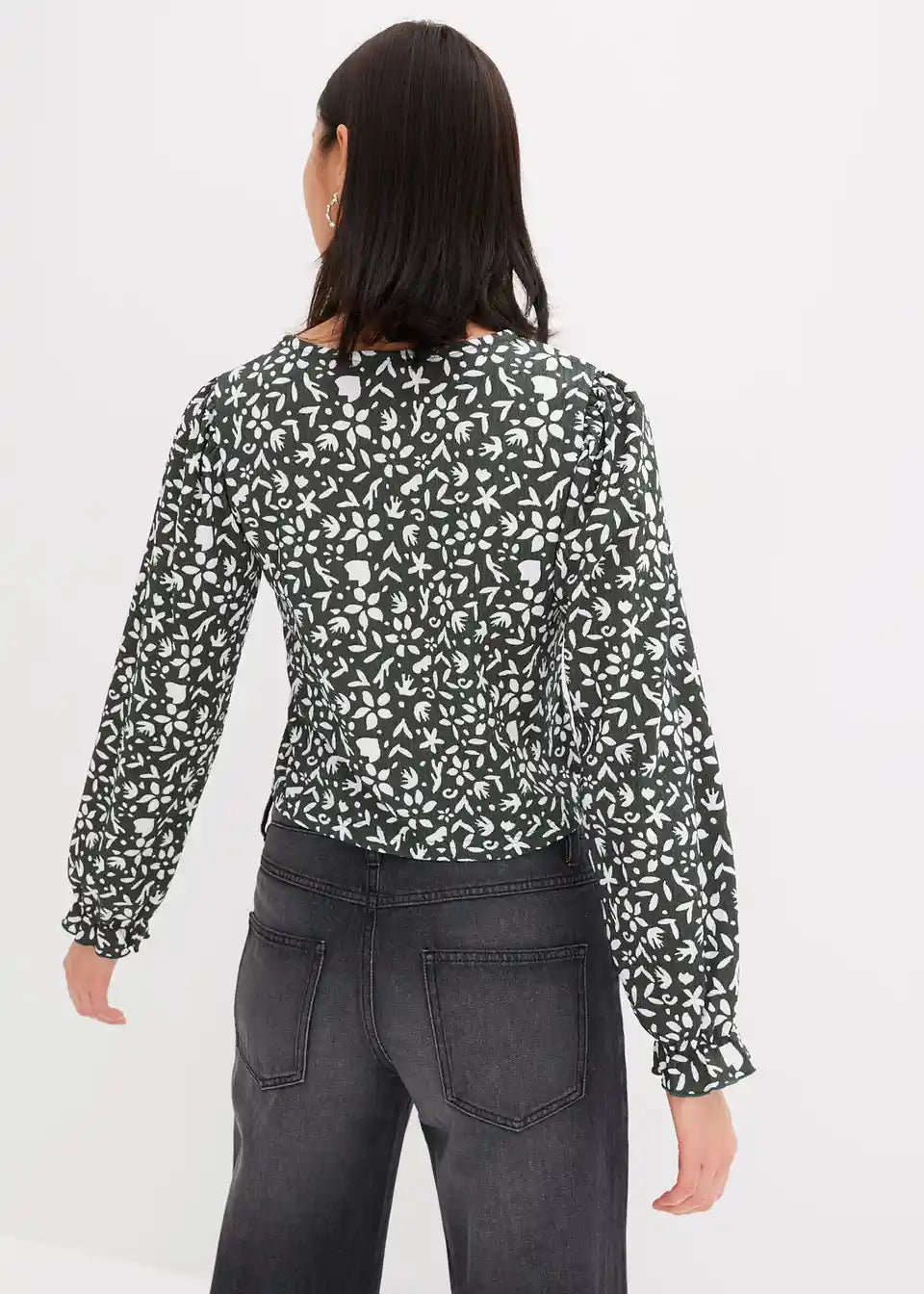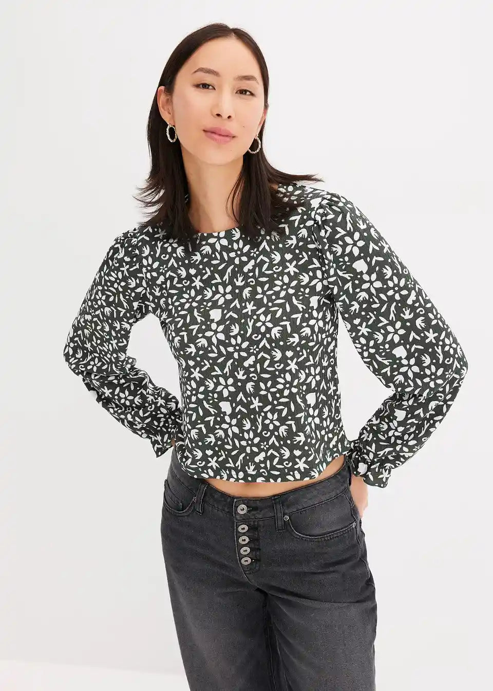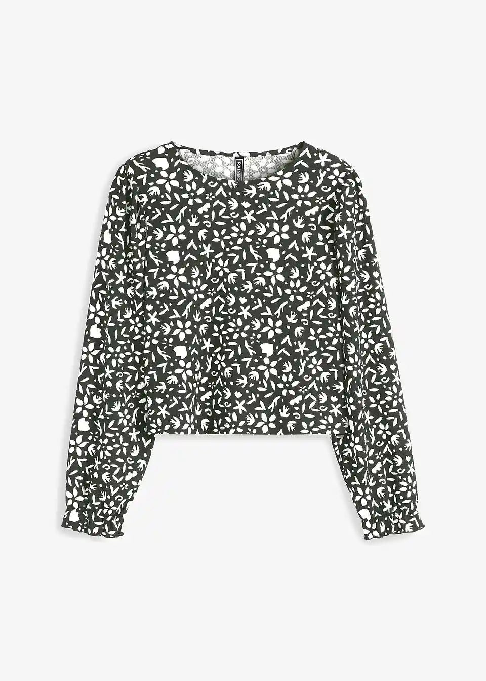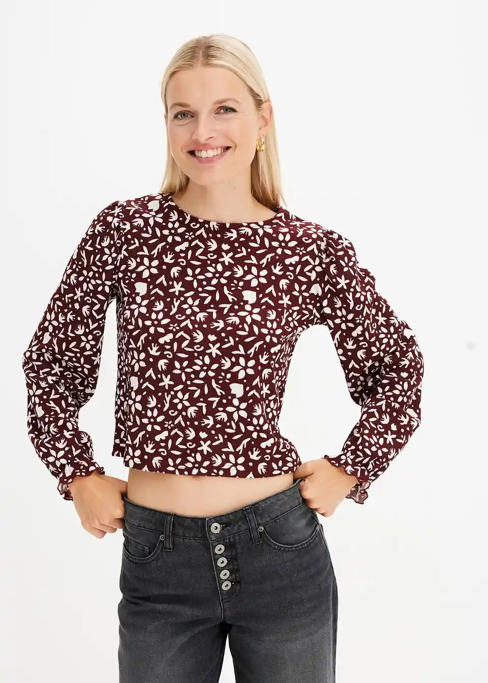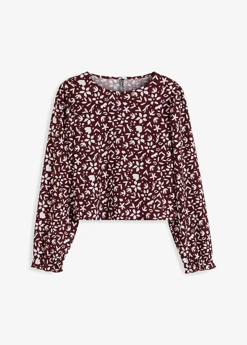 Tiskana majica s dugim rukavima i puf rukavima