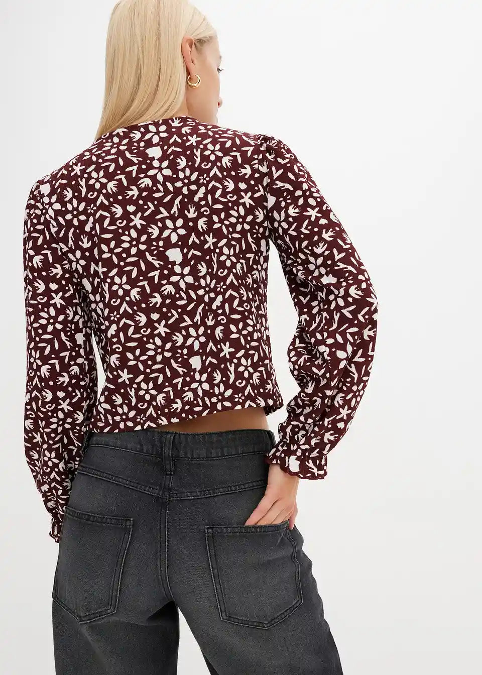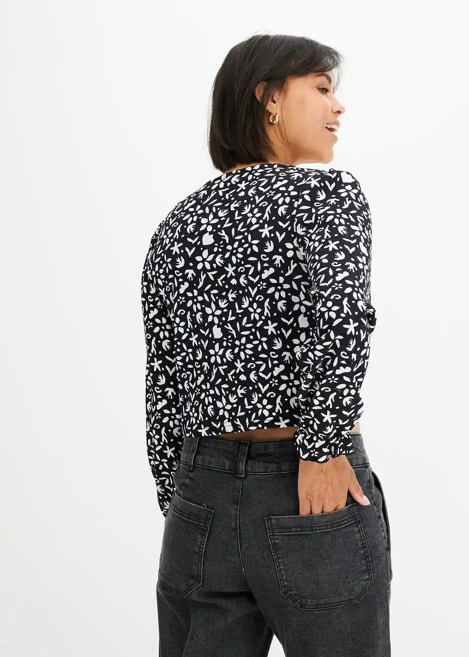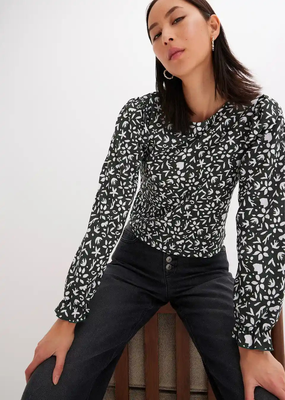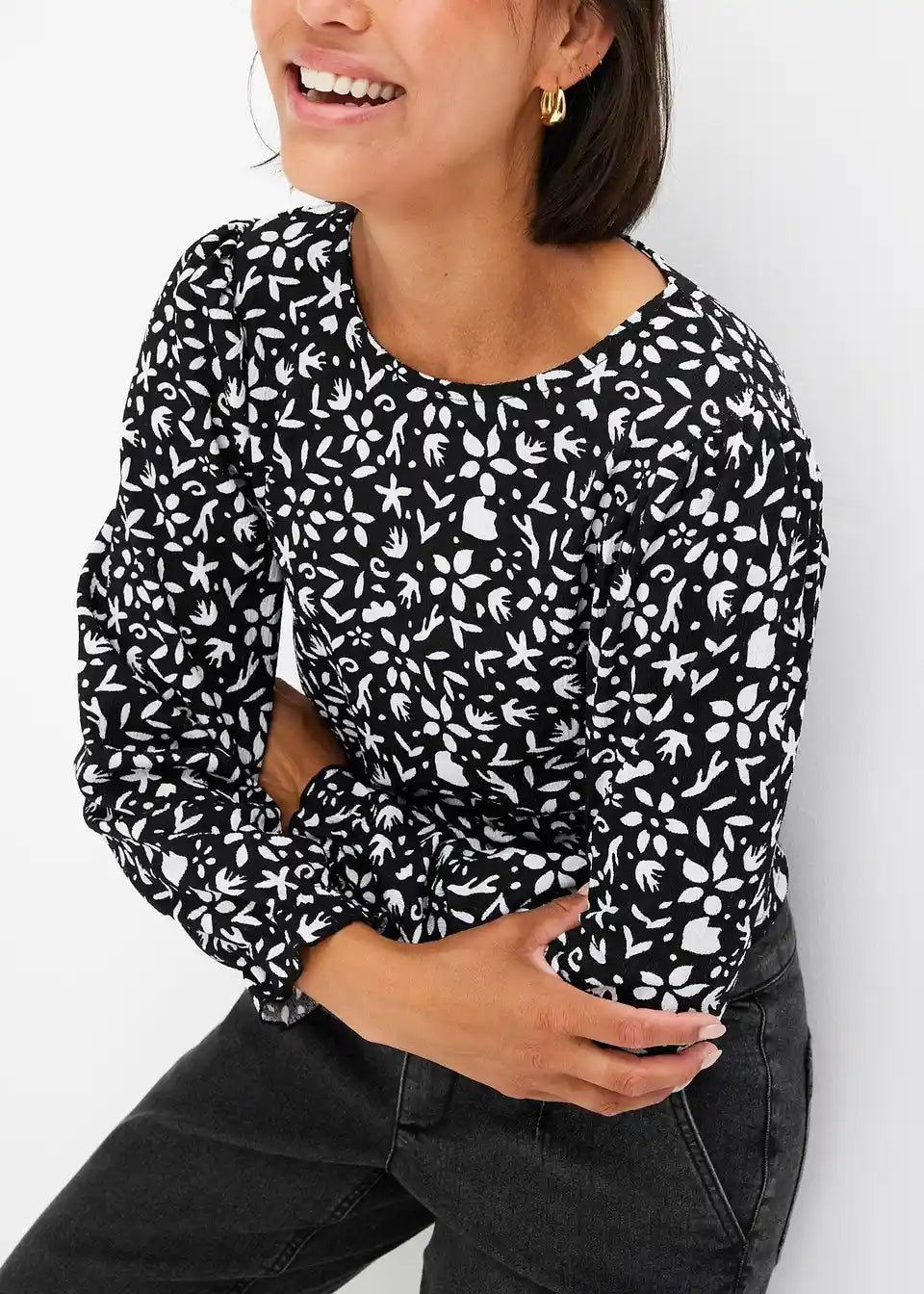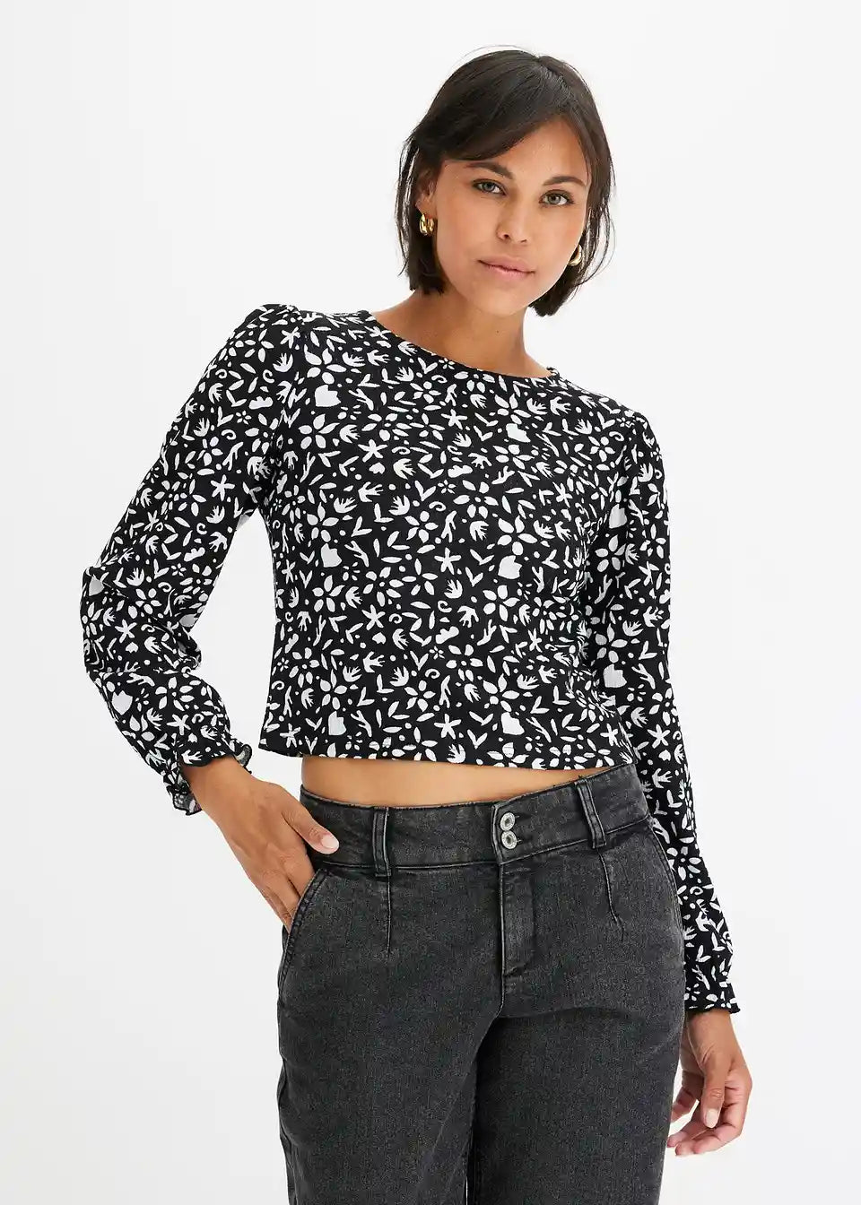 Tiskana majica s dugim rukavima i puf rukavima