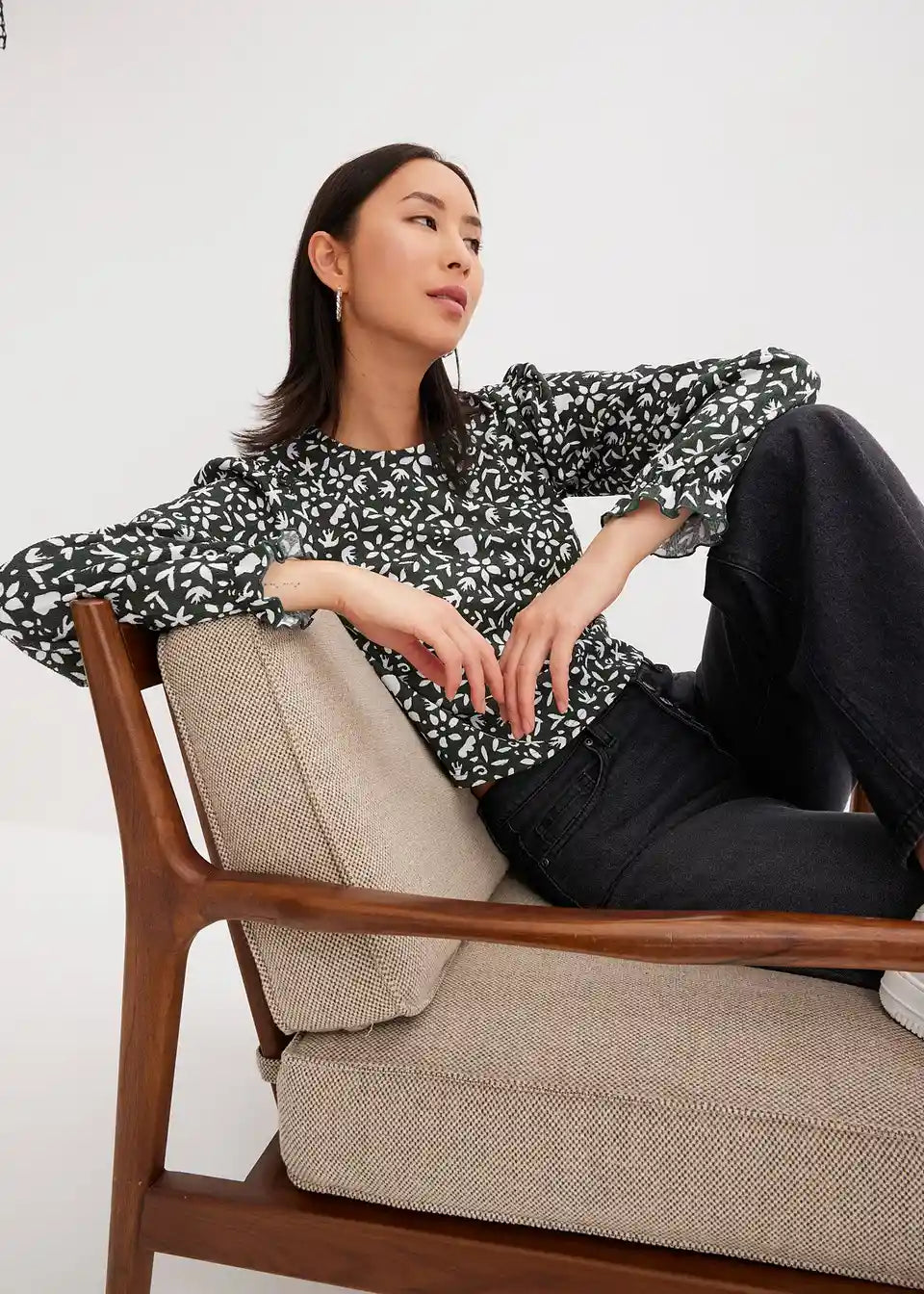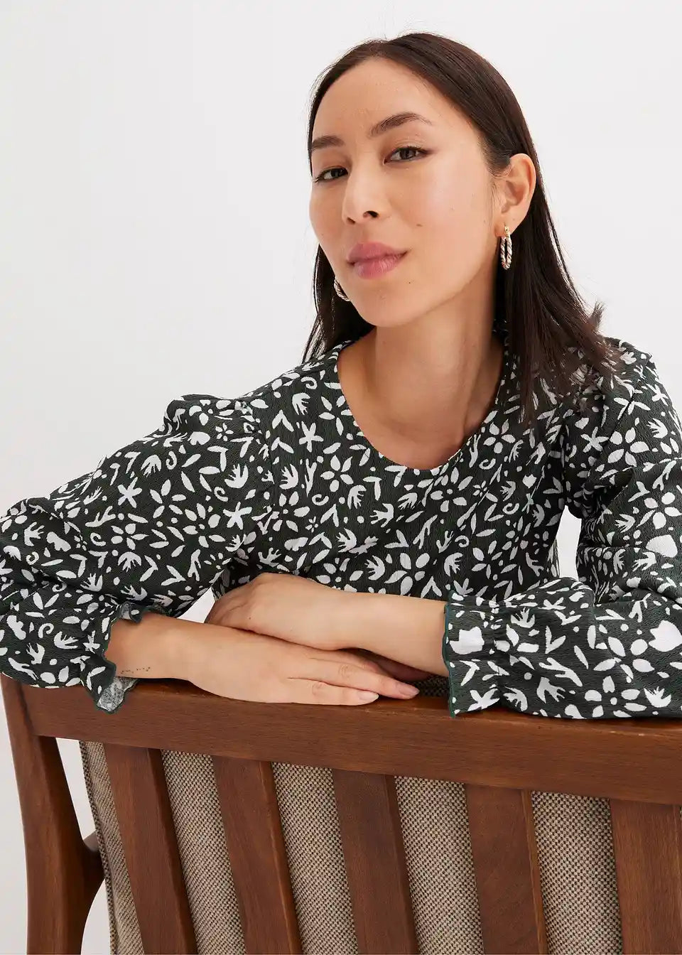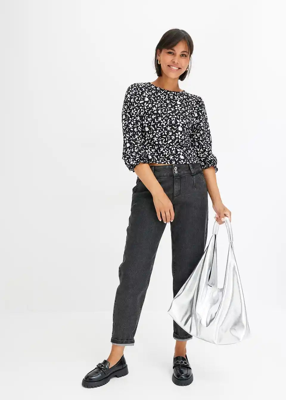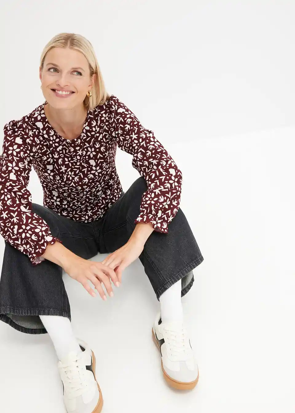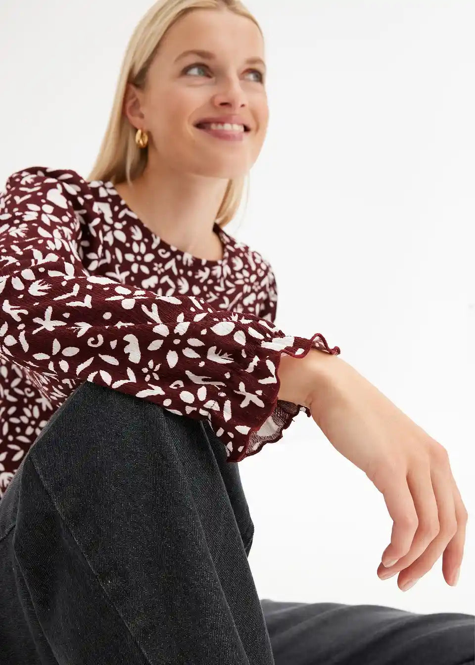 Tiskana majica s dugim rukavima i puf rukavima