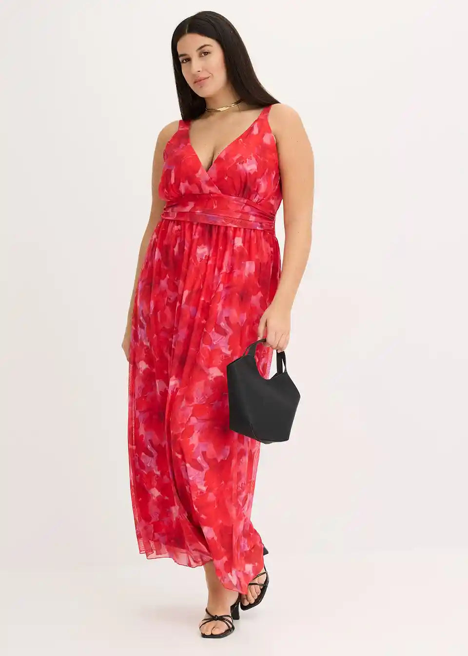 Maksi haljina s uzorkom od mekanog mrežastog materijala