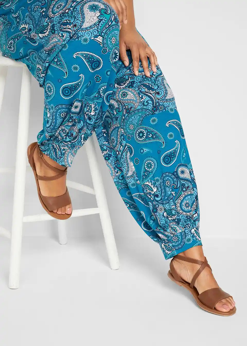 Udobne jersey harem hlače s prekrasnim paisley uzorkom i udobnim dimije-pojasom
