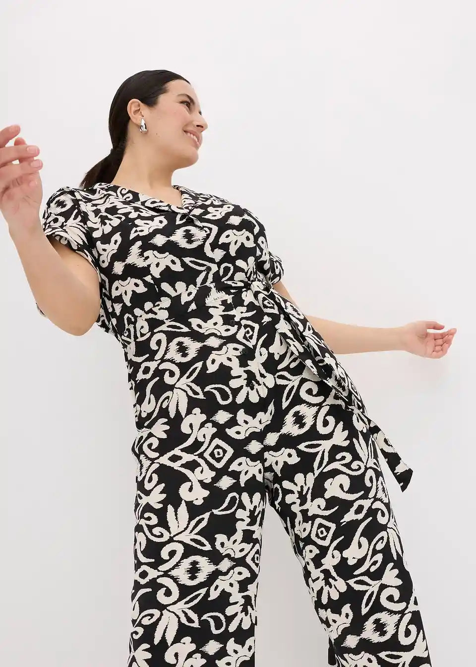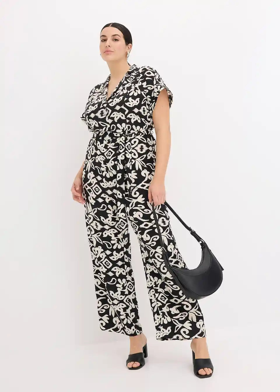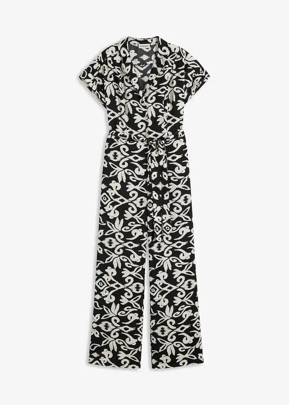 Moderan jumpsuit s tiskom i širokim nogavicama.