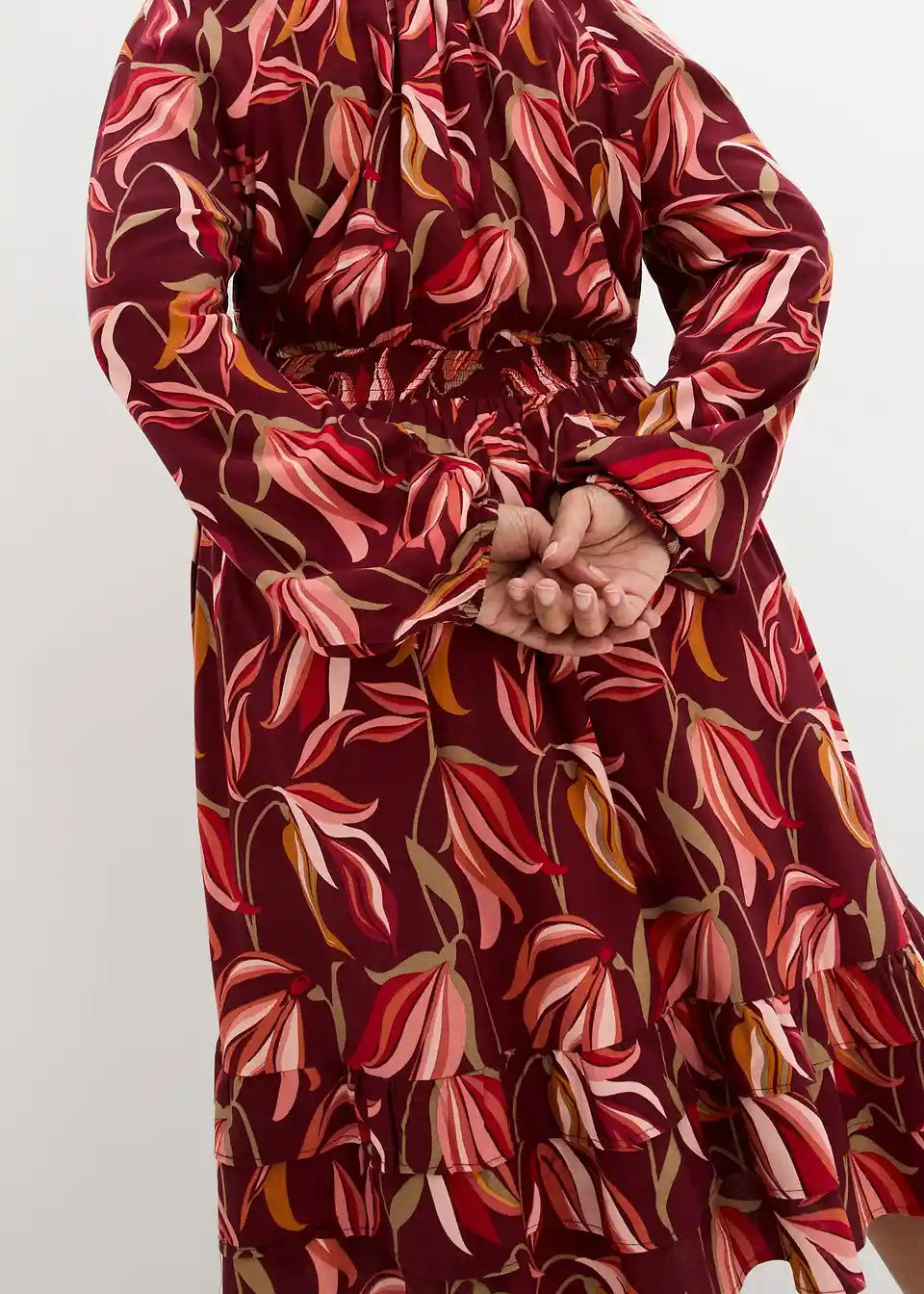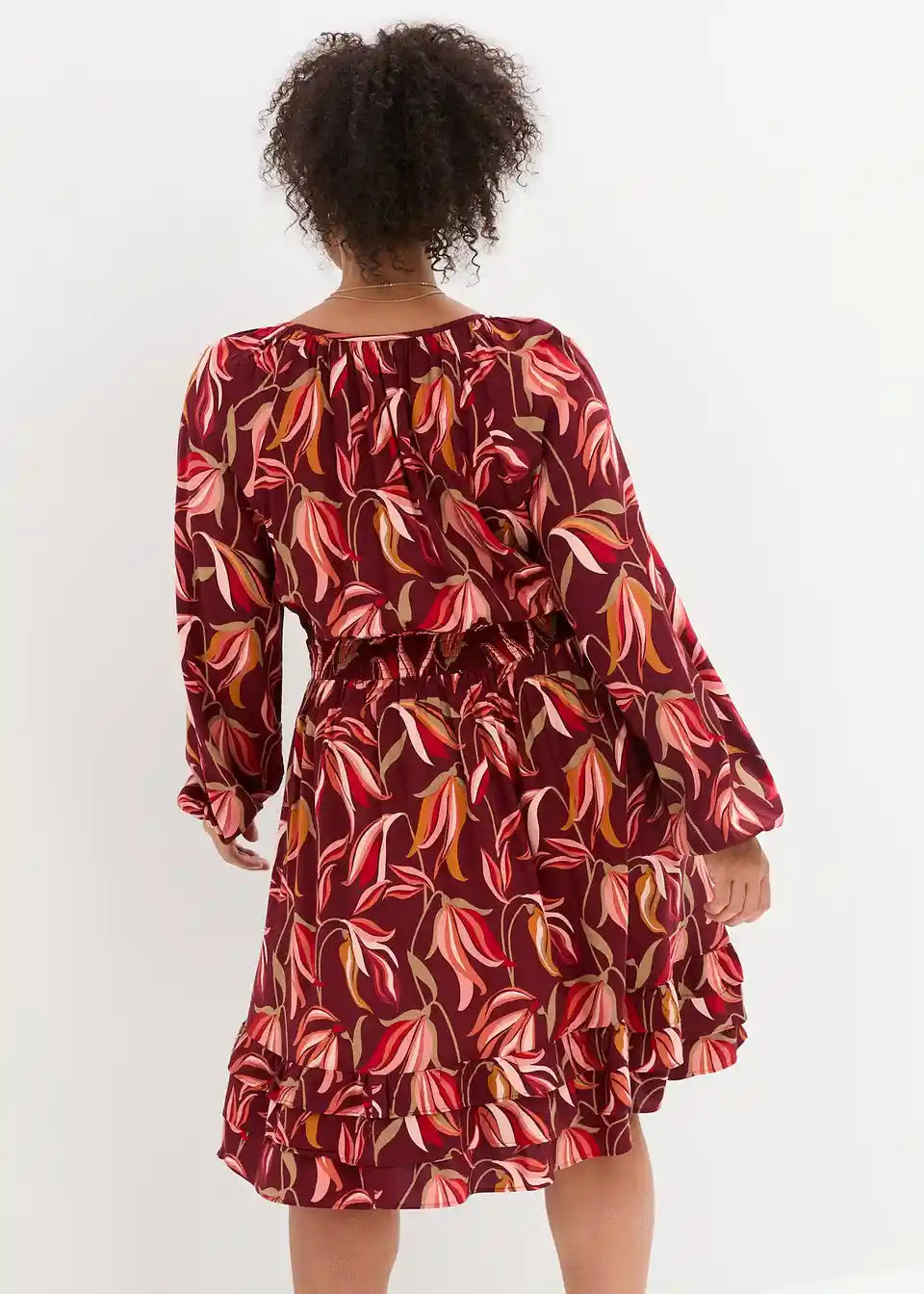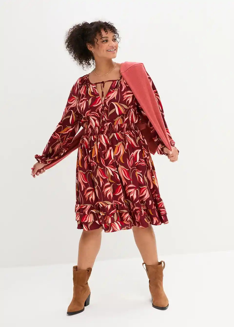 Razigrana viskozna haljina naglašava struk i pruža kamuflažne efekte