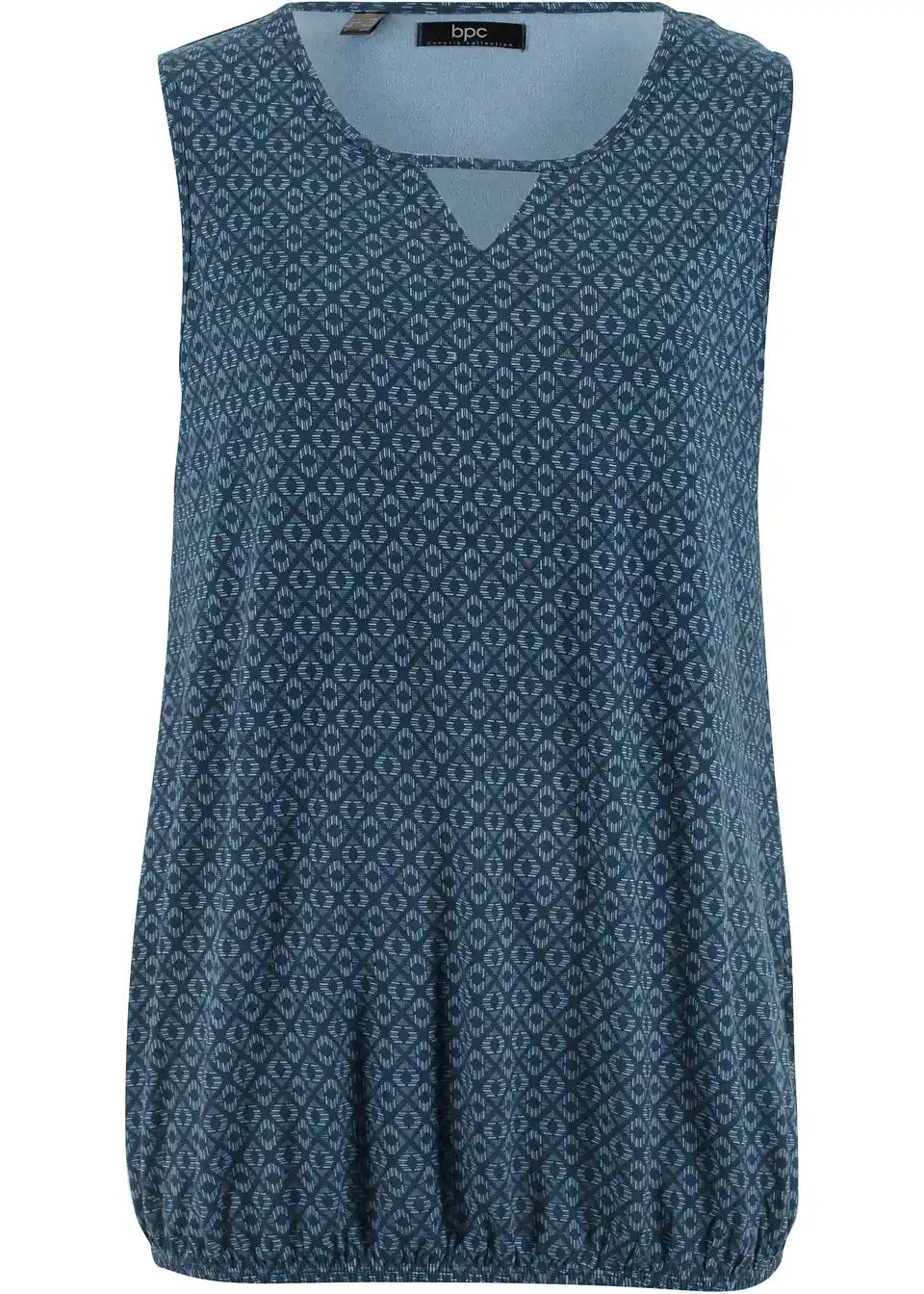 Ovaj prozračni top s elastičnim pojasom na rubu i širokim naramenicama svestran je izbor za raznovrsne kombinacije. Suptilan uzorak po cijeloj površini daje elegantan izgled. Moderan izrez s V-otvorom i malom vrpcom izgleda vrlo dekorativno. Lepršavi materijal od viskoze s elastanom i ležeran, prikrivajući kroj čine ovaj top iz bpc kolekcije odličnim saveznikom za figuru.