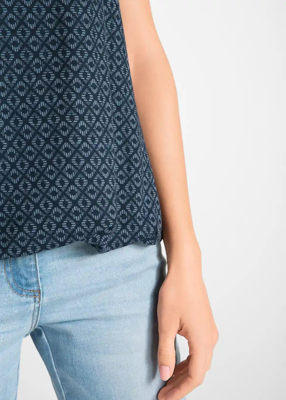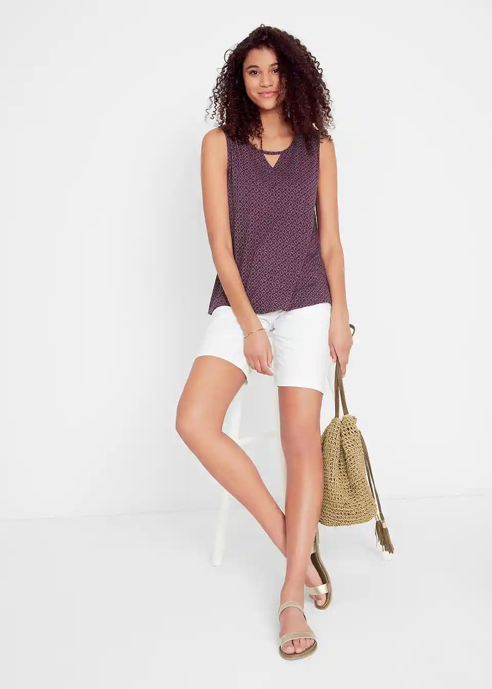 Svestrani dodatak za raznolike kombinacije predstavlja ovaj prozračni top s elastičnom trakom na rubu i širokim naramenicama. Suptilni uzorak s printom čini ga elegantnim. Vrlo dekorativan je modni izrez s V-oblikovanim otvorom i malenom trakom. Lepršava viskoza-elastan kvaliteta i opušten, prikrivajući kroj čine top marke bpc odličnim saveznikom za figuru.