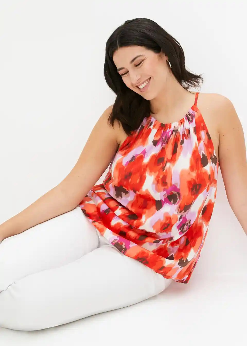 modni satenski top s upečatljivim printom