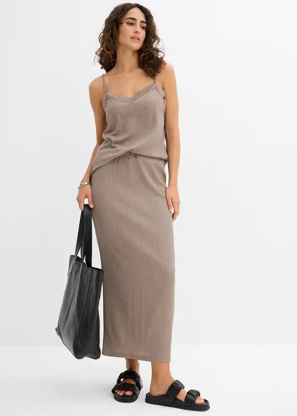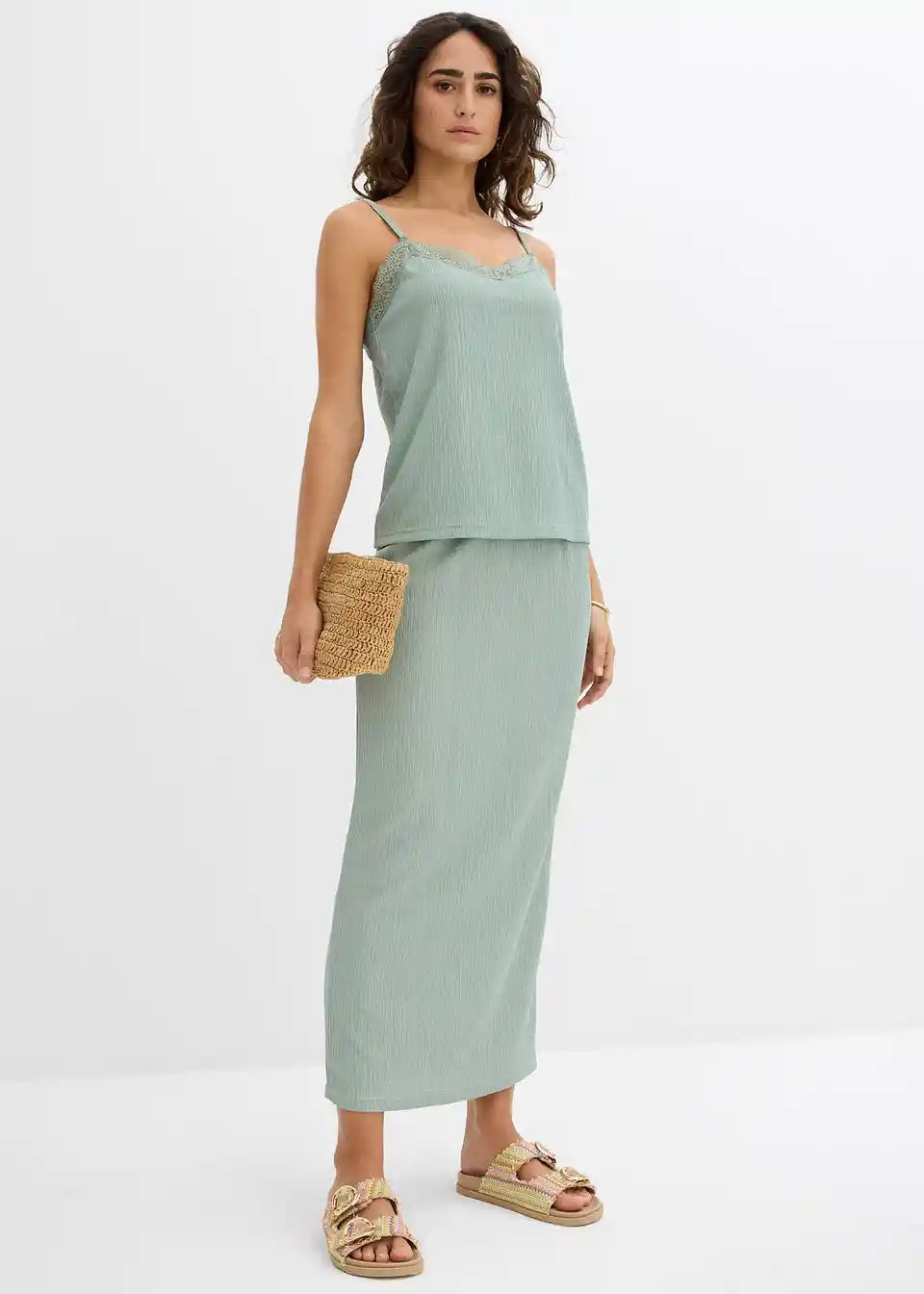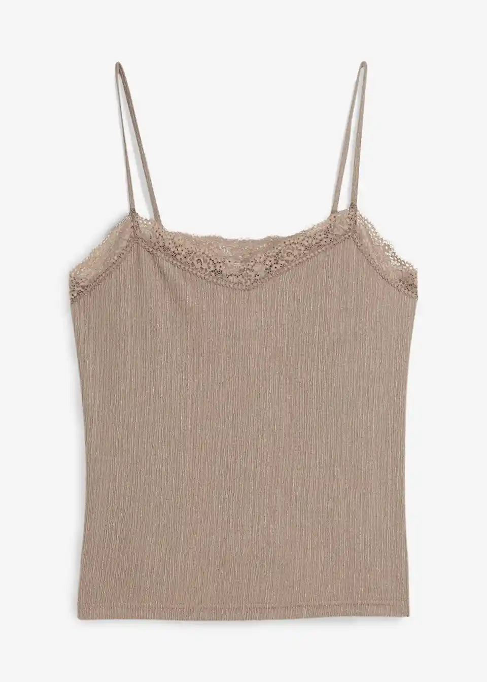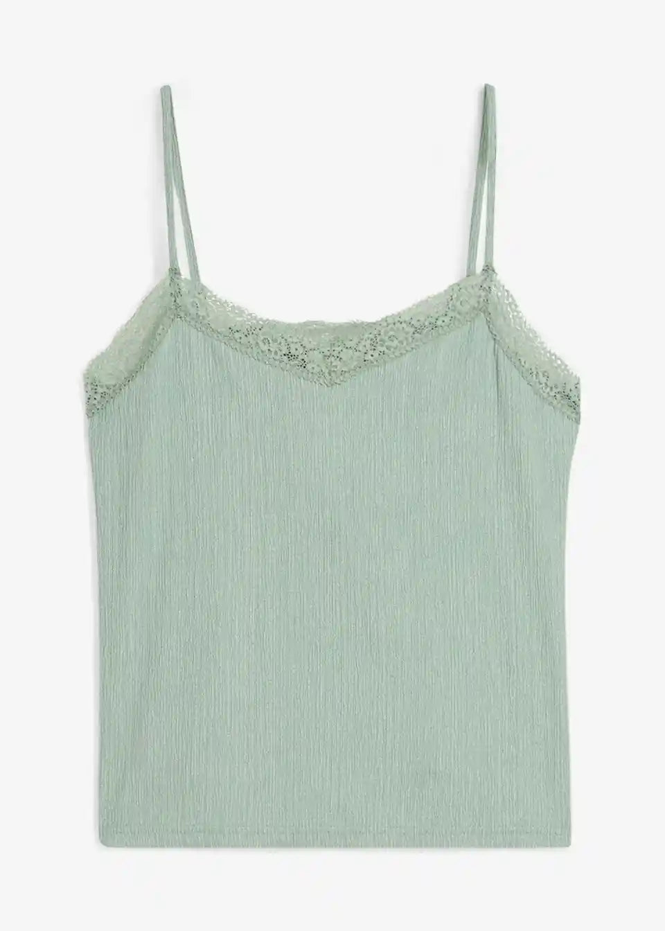 Trendi top sa špaget naramenicama od Crêpea sa čipkastim umetcima
