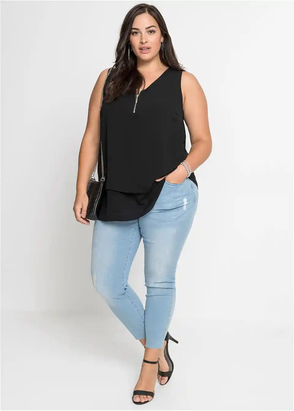 Ženski Top u slojevitom izgledu s ukrasnim patentnim zatvaračem