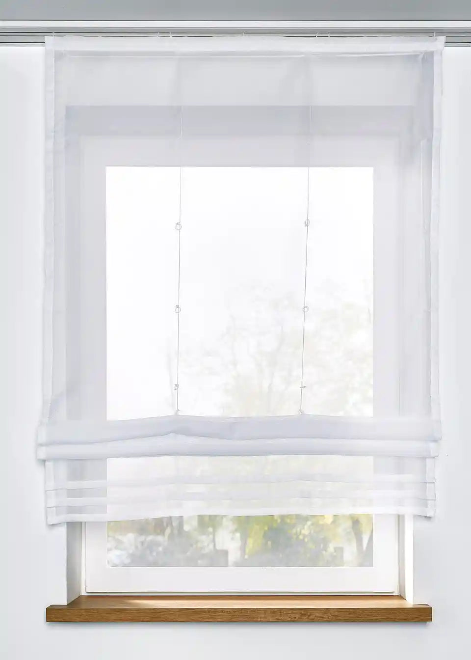 Jednostavni jednobojni Raffrollo od lako održivog Voilea s ukrasnim naborima na rubu. Dostupno s pričvršćivanjem na čičak za vodilice za zavjese ili s petljama za karniše.