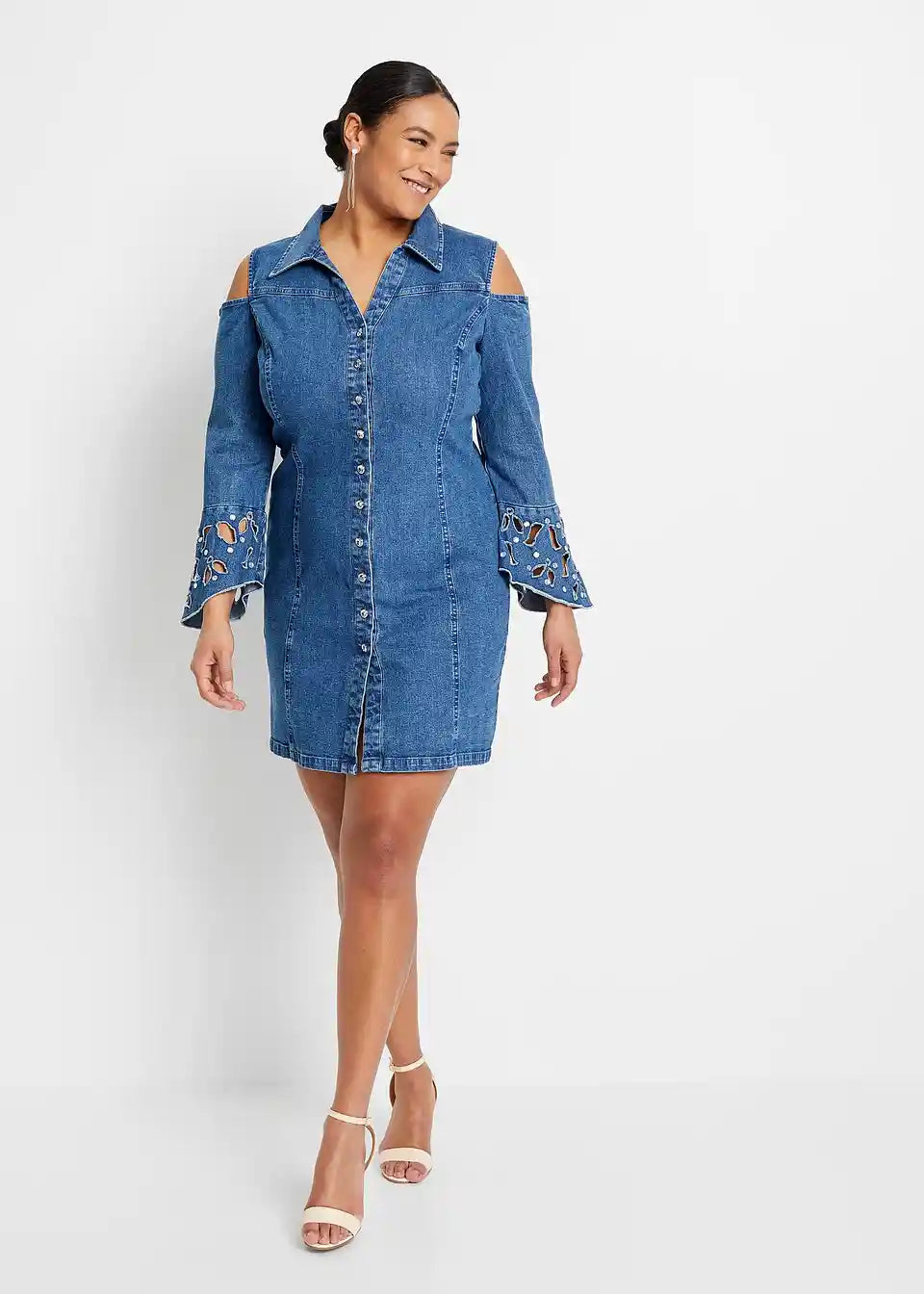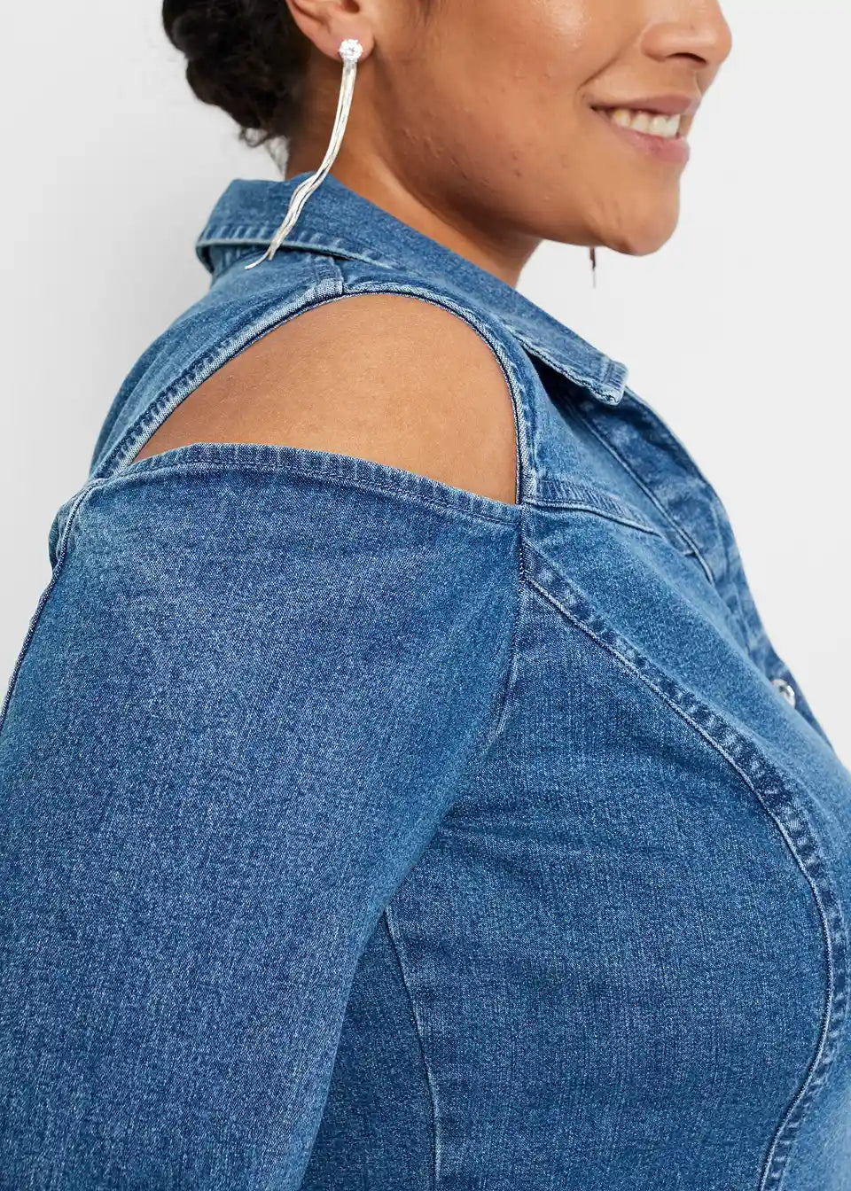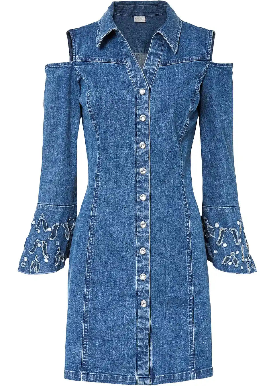 Moderno i ženstveno: Traper haljina s volan rukavima i izrezima.
