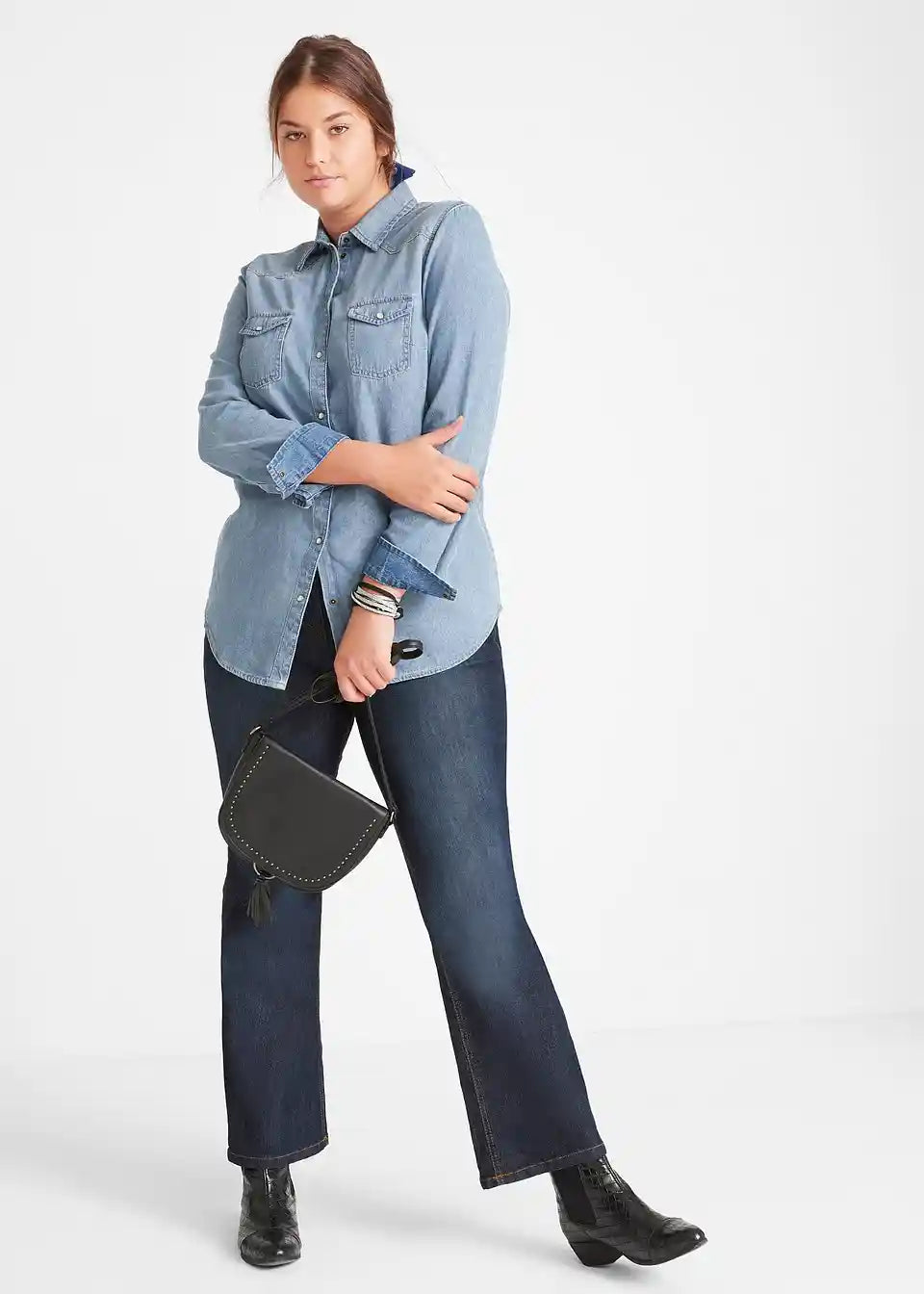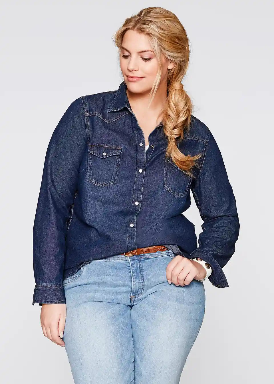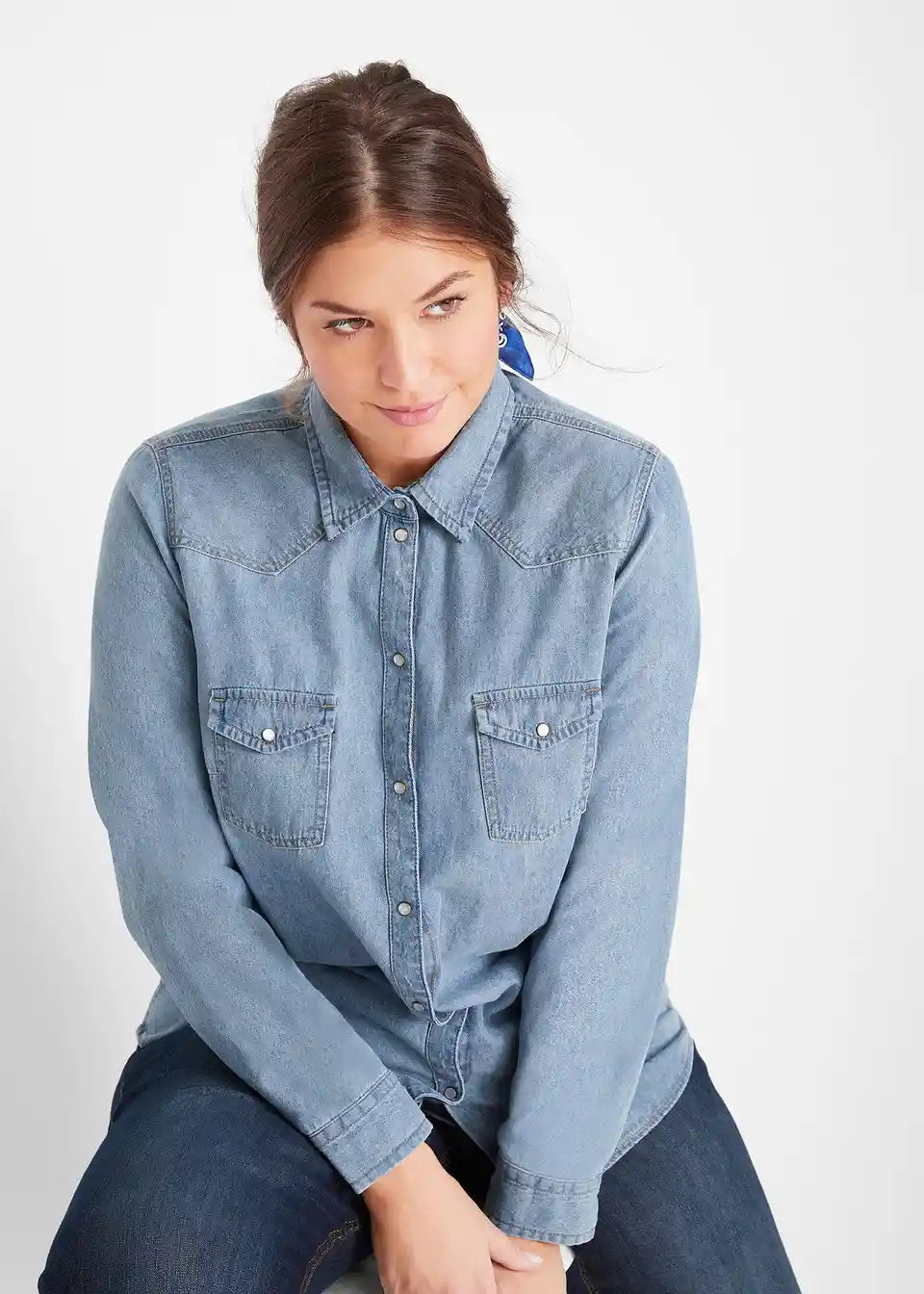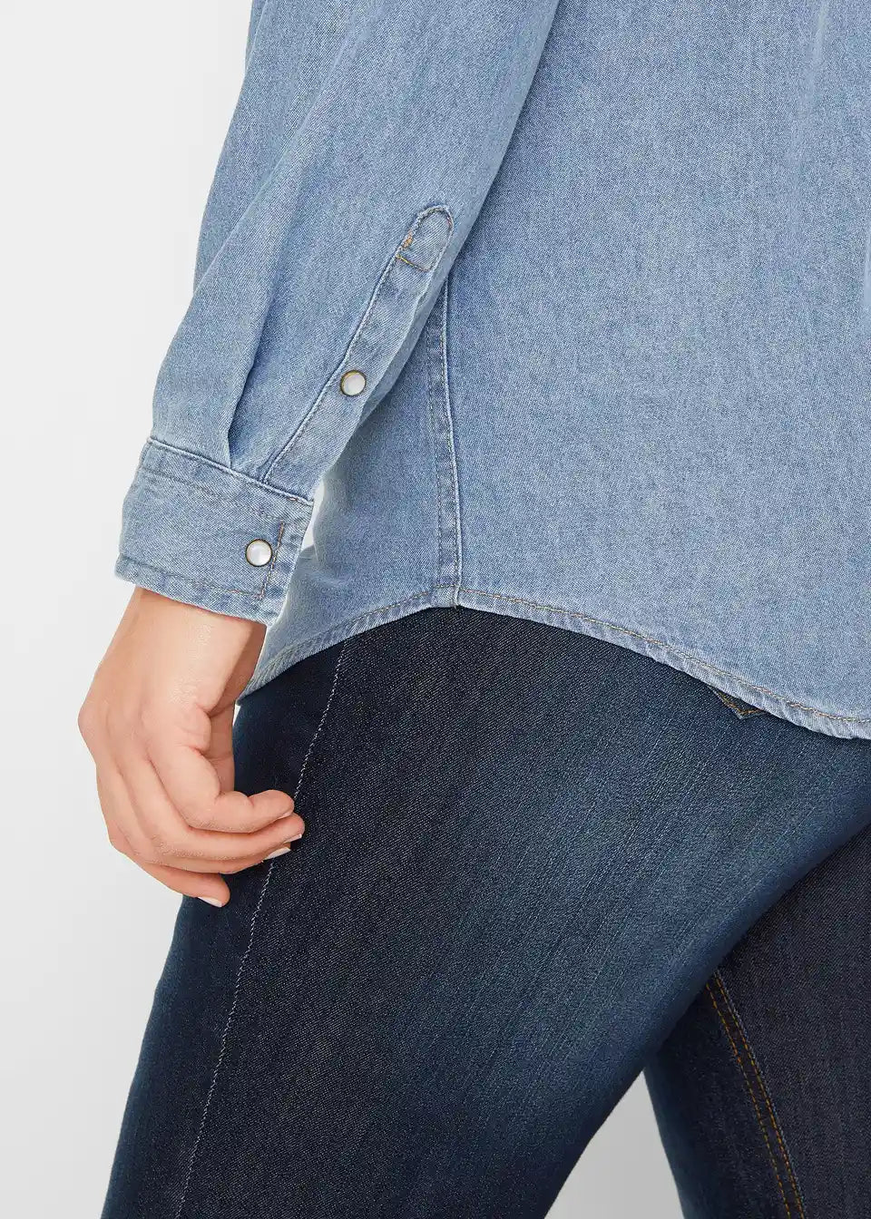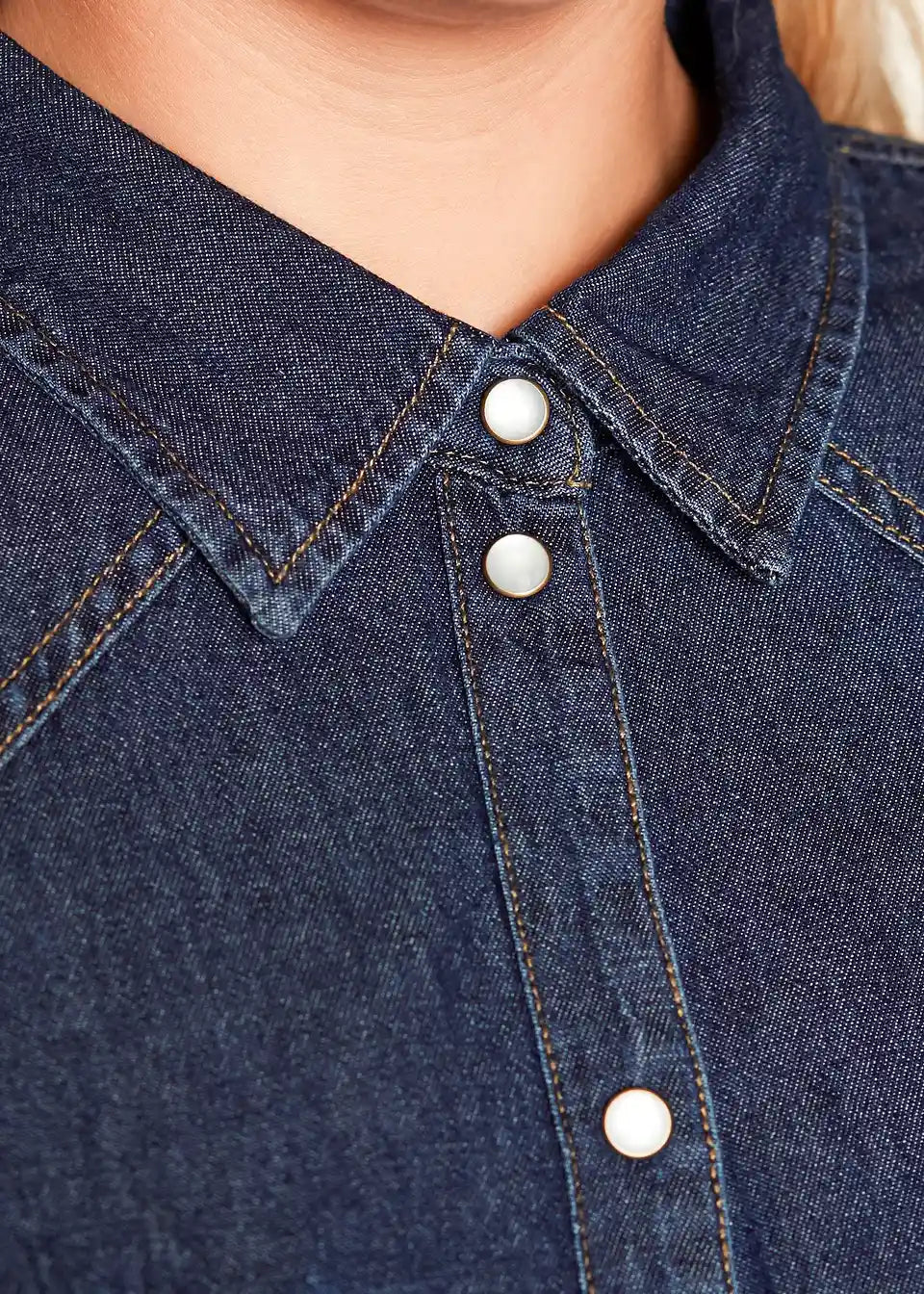 Klasična basic traper košulja s dugim rukavima i dva džepa na prsima