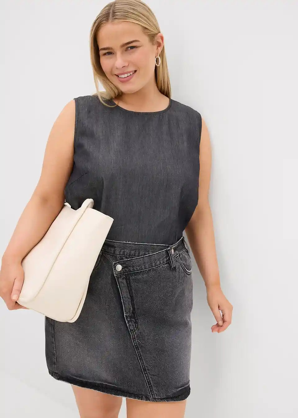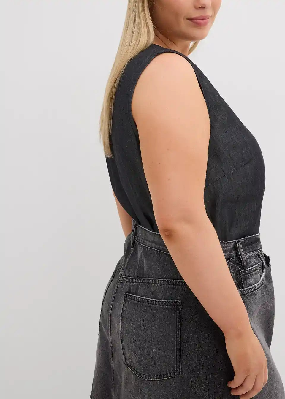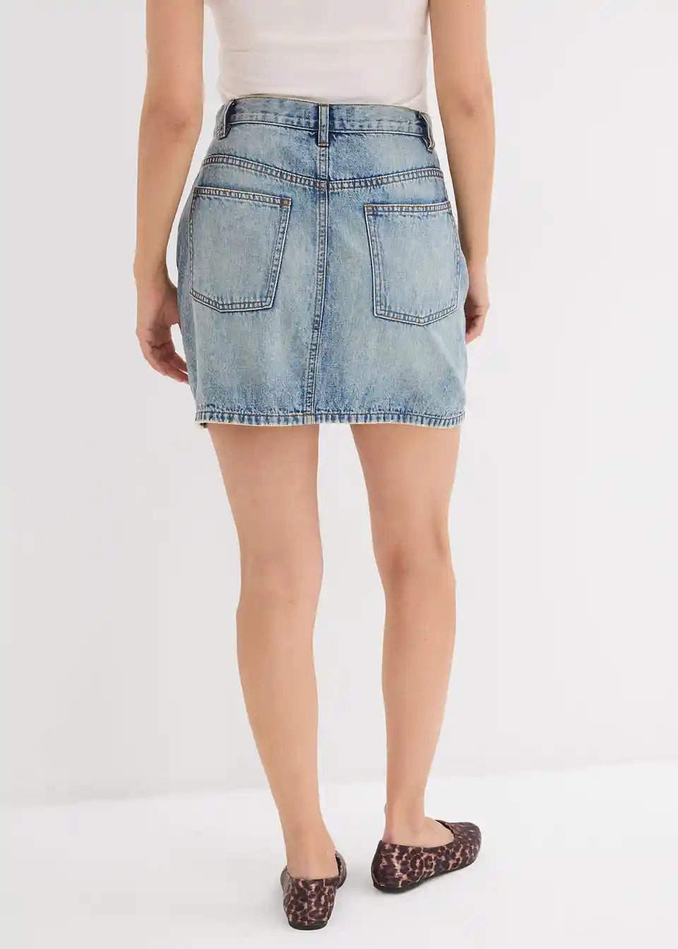 Traper suknja od čvrstog pamučnog trapera koji je na početku malo krut, a čestim nošenjem postaje mekši i udobniji. Ukupna duljina u vel. 42 cca 52 cm, periva u perilici rublja.