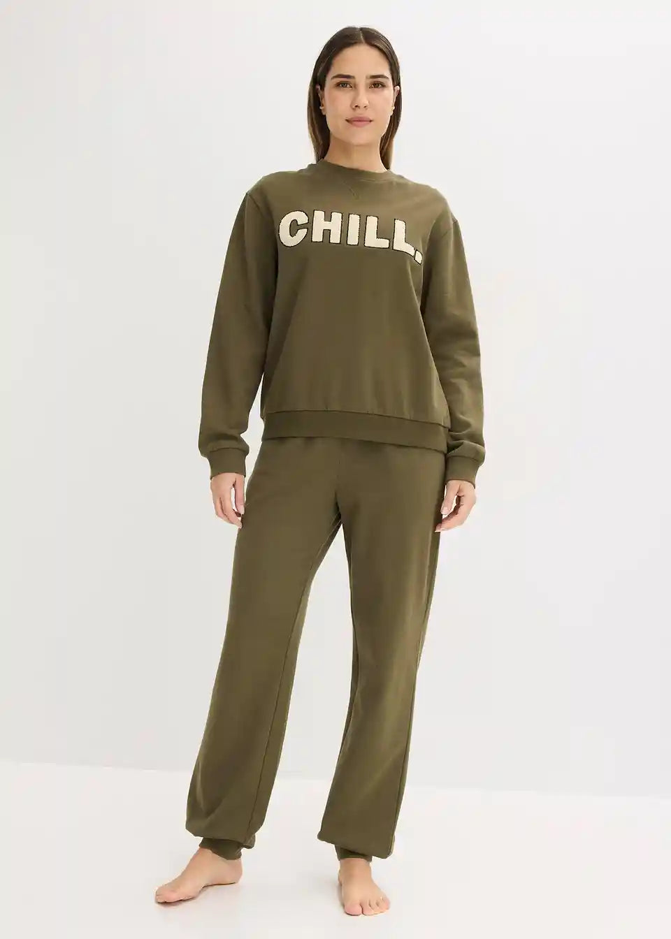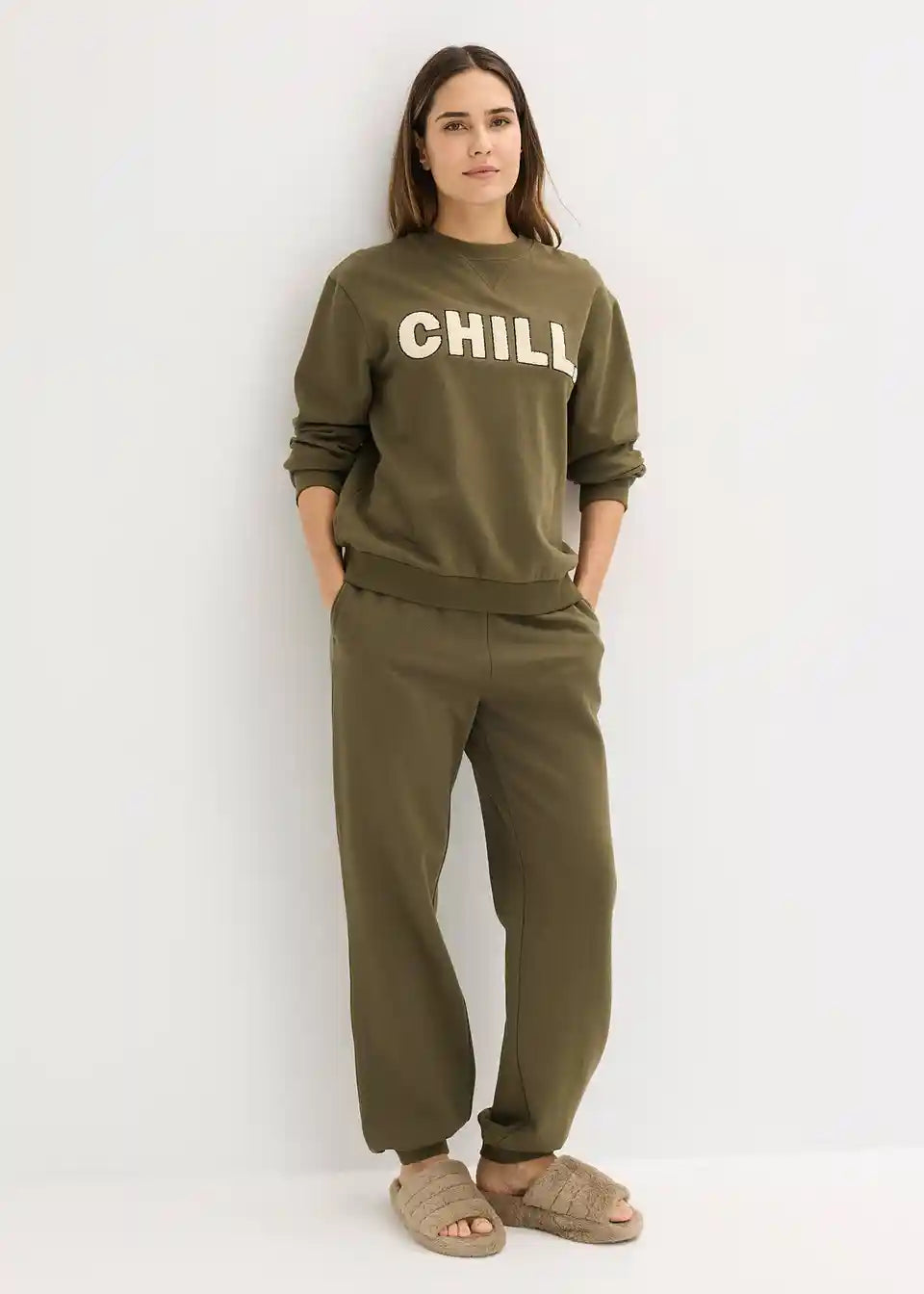 Udobna trenerska kućna trenirka s lijepom aplikacijom i rebrastim rubovima te bočnim umetnutim džepovima