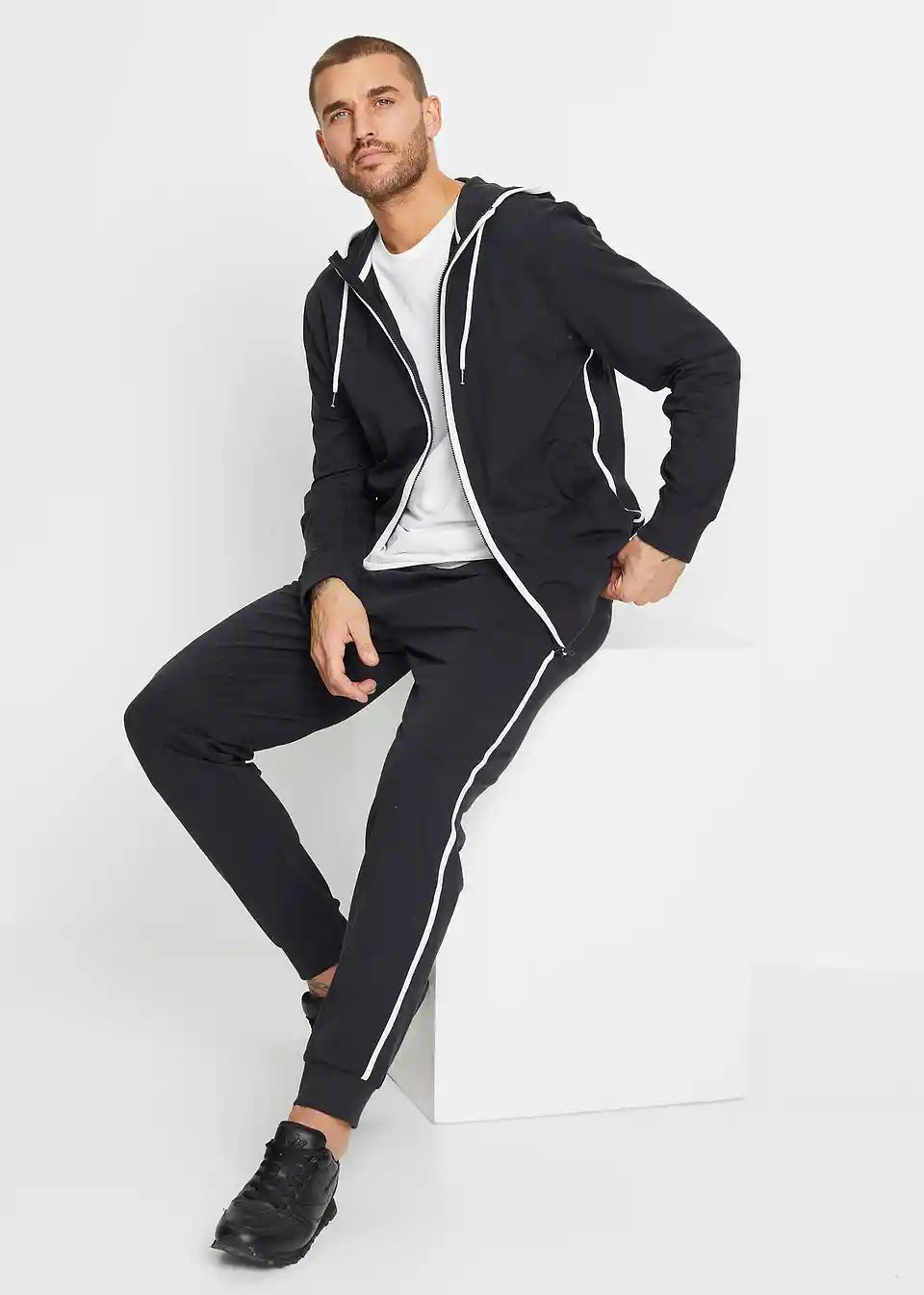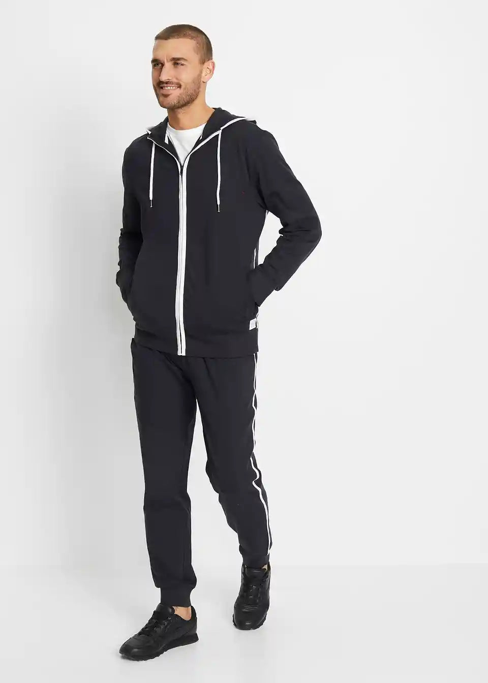 Prekrasna trenirka s malom tkanom oznakom na jakni i hlačama, perivo u perilici rublja