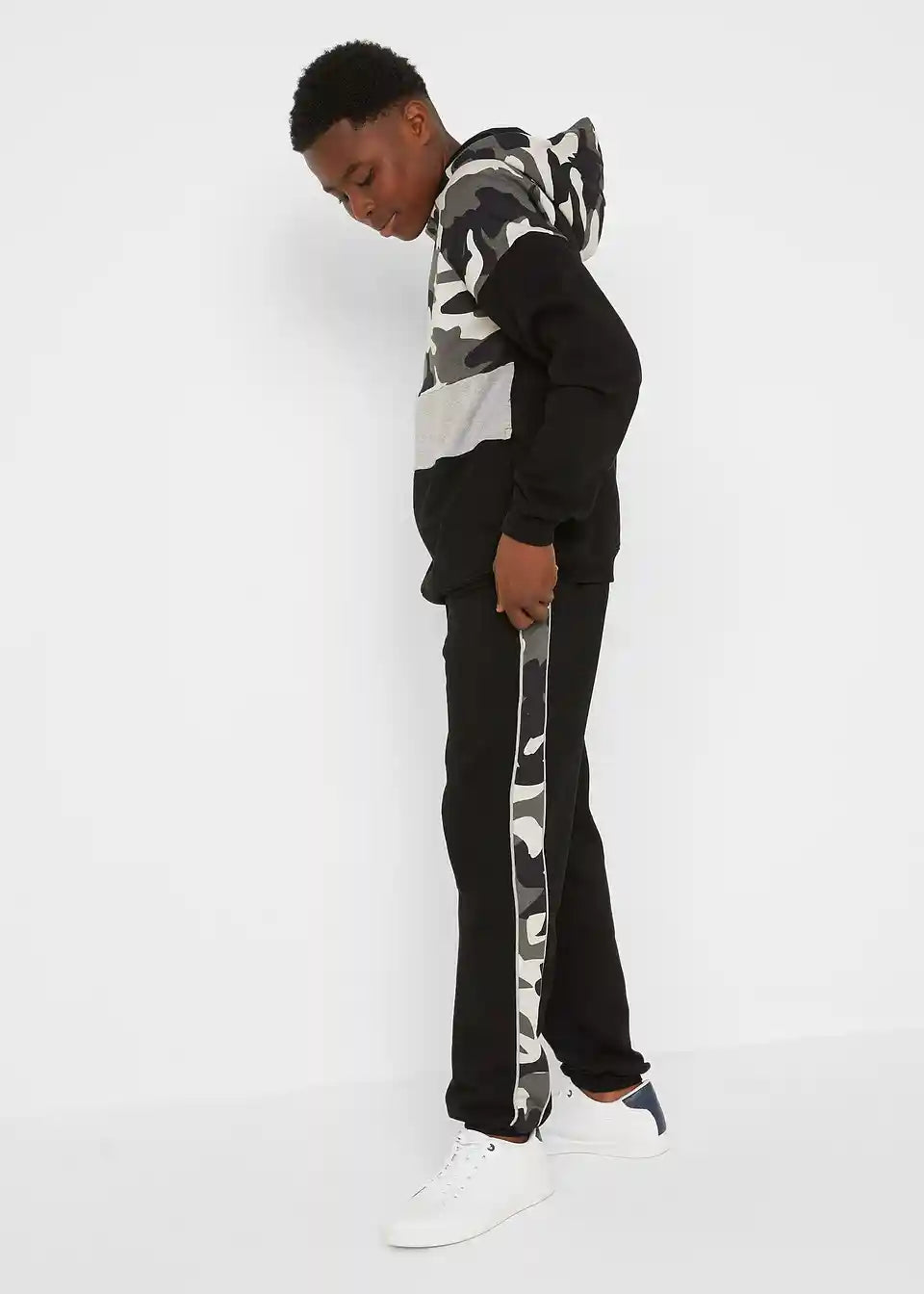 Super cool set koji se sastoji od pulovera s kapuljačom i donjeg dijela trenirke. Kamuflažni uzorak i kontrastne boje osiguravaju apsolutnu cool notu. Kombiniran s tenisicama, ovaj set može se vrlo brzo pretvoriti u ležerni outfit.