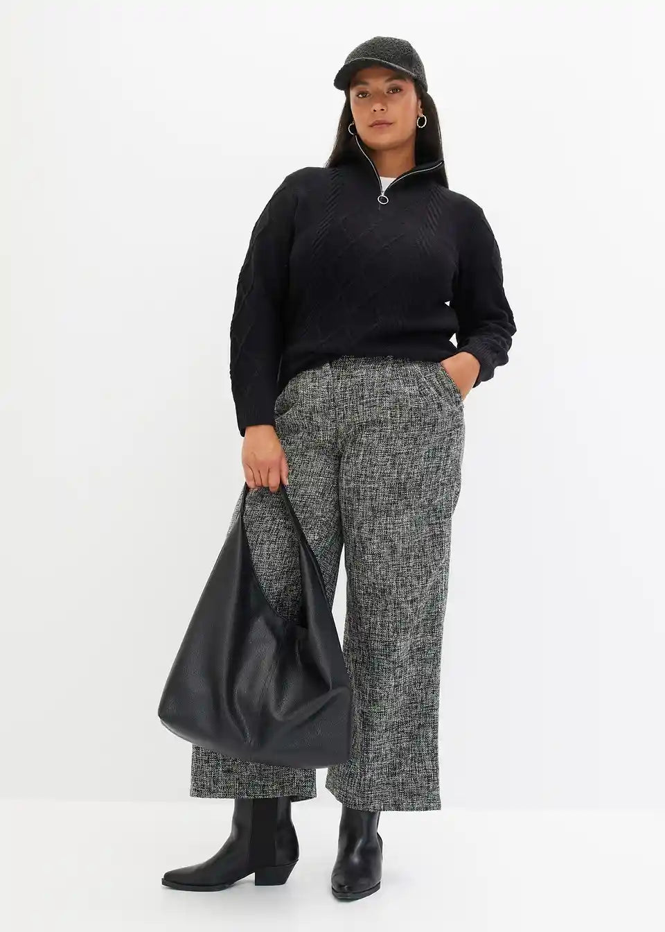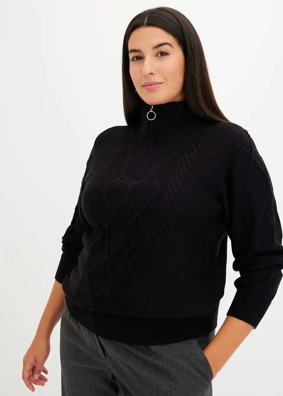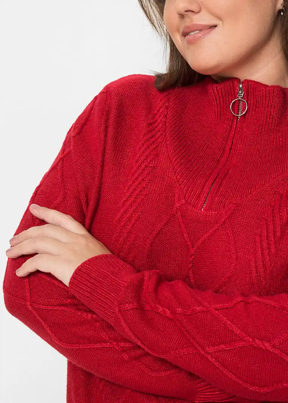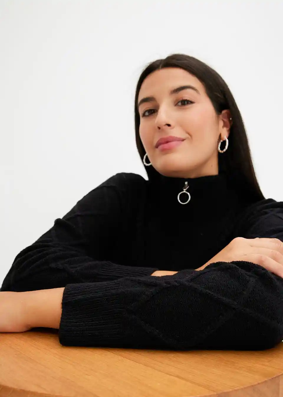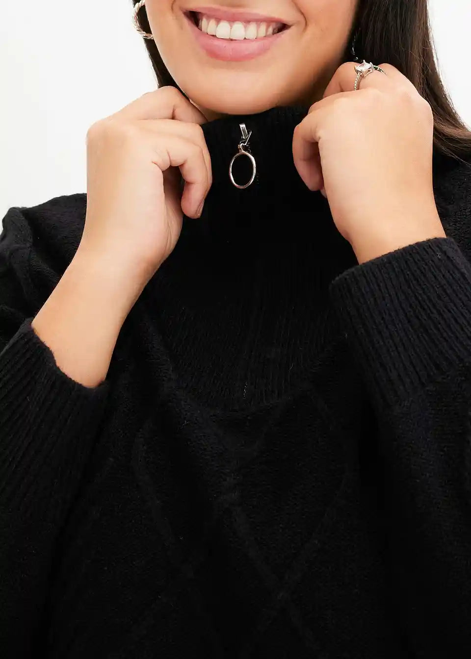 Pulover s visokim ovratnikom s patentnim zatvaračem i pletenicama