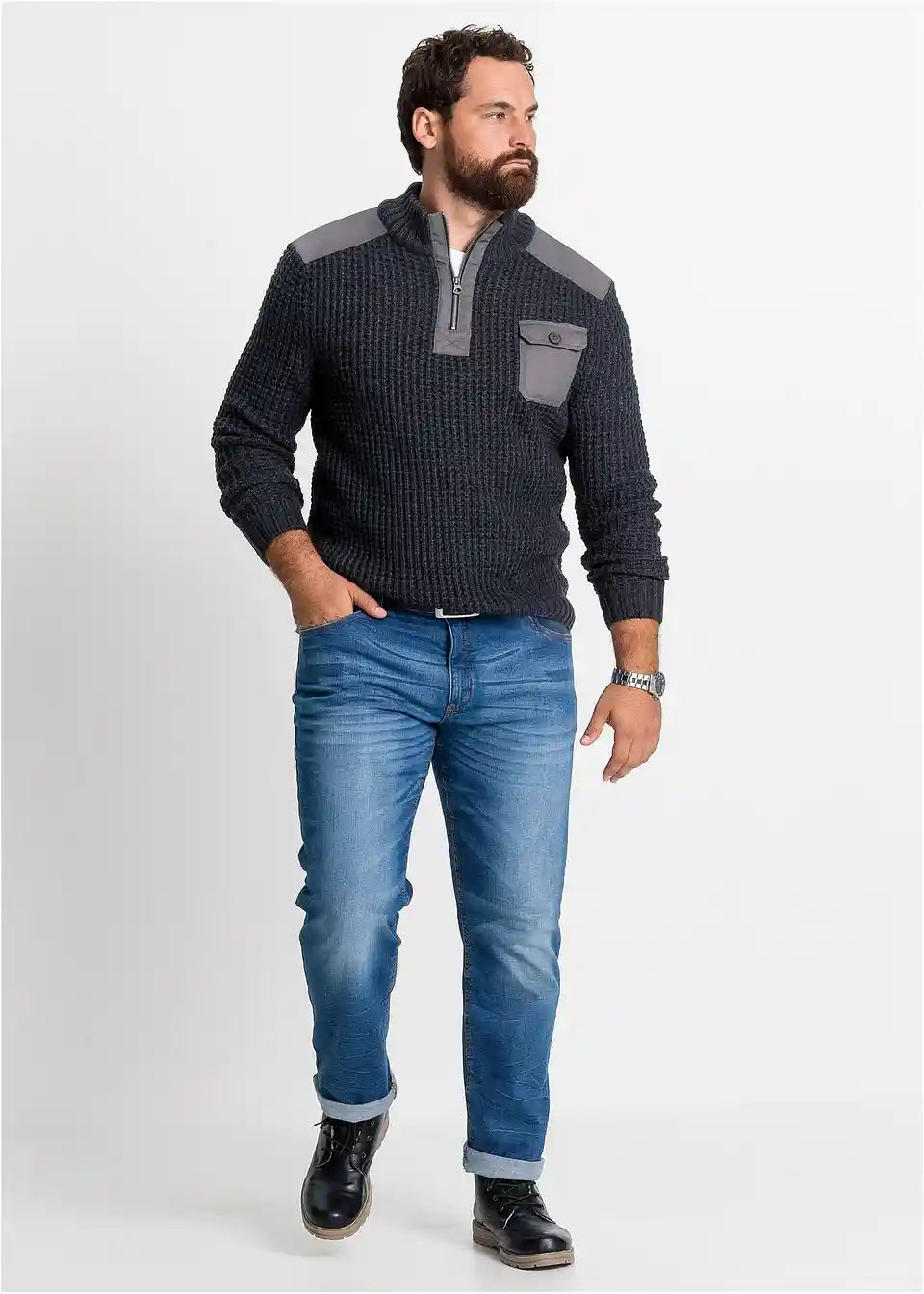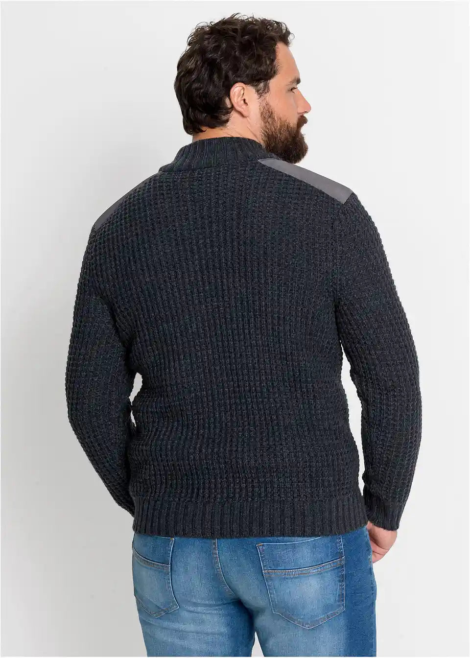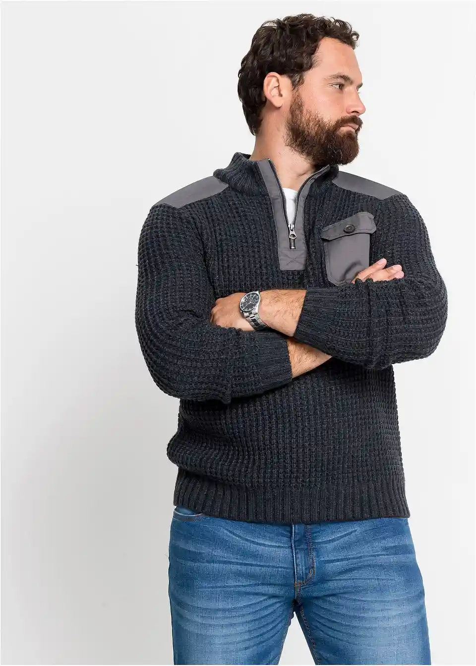 Ovaj udoban muški pulover iz aktualne kolekcije John Baner pravi je svestrani izbor za slobodno vrijeme. Ležerni pulover od grubo pletenog pletiva ima stojeći ovratnik sa zatvaračem i duge rukave. Našiveni džep na prsima i tkaninske aplikacije na ramenima naglašavaju moderan izgled pulovera. Može se svestrano kombinirati s trapericama i chinos hlačama.