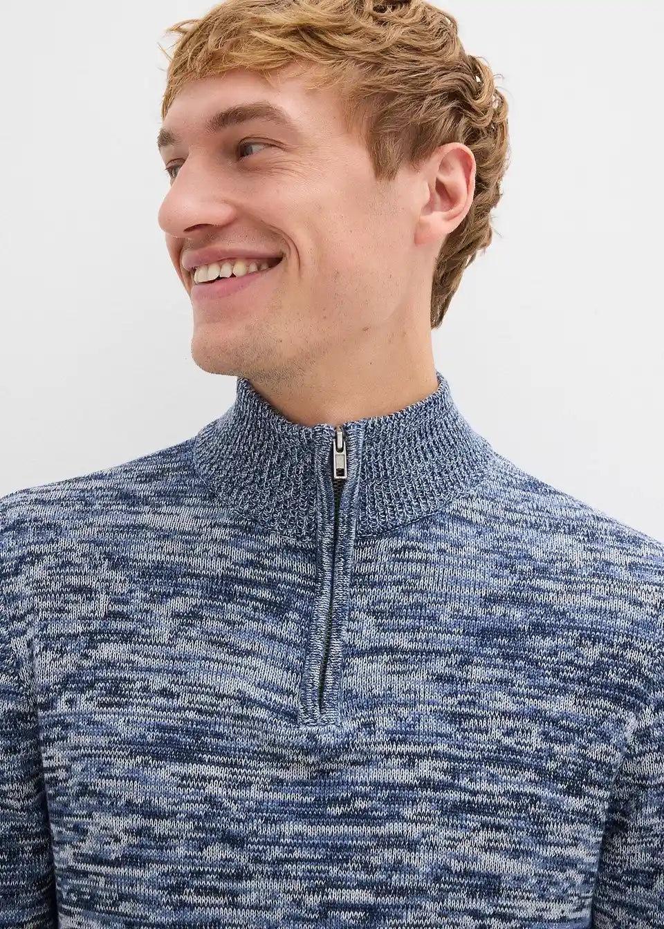 Melanž pulover s visokim ovratnikom s patentnim zatvaračem od mekanog materijala s udjelom pamuka