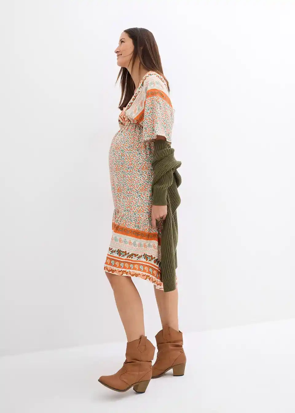 Trudnička haljina u tunika stilu nudi budućim majkama elegantnu i udobnu opciju za svakodnevnicu. Širok kroj omogućuje puno slobode kretanja i prilagođava se rastućem trbuhu, bez stezanja. Sa svojim ležernim, ali ipak stiliziranim dizajnom haljina se može svestrano kombinirati i pogodna je za svakodnevne aktivnosti kao i za posebne prilike. Mekani, prozračni materijal osigurava ugodan osjećaj nošenja, dok opušteni tunika oblik stvara bezvremensku i ležernu siluetu.