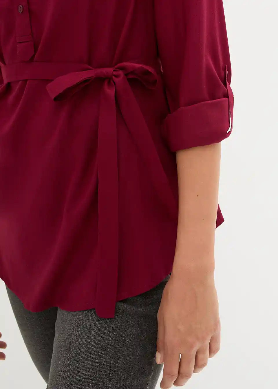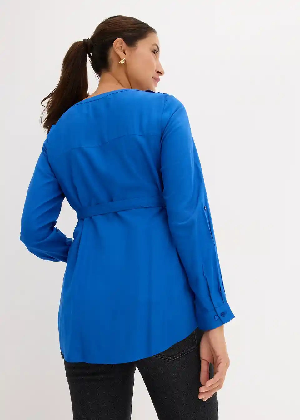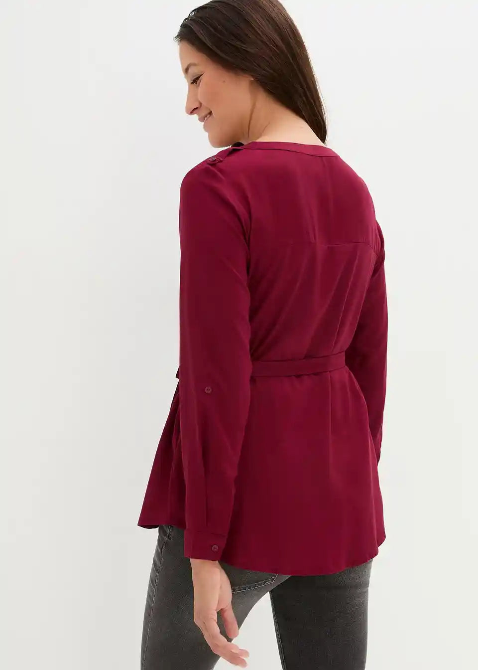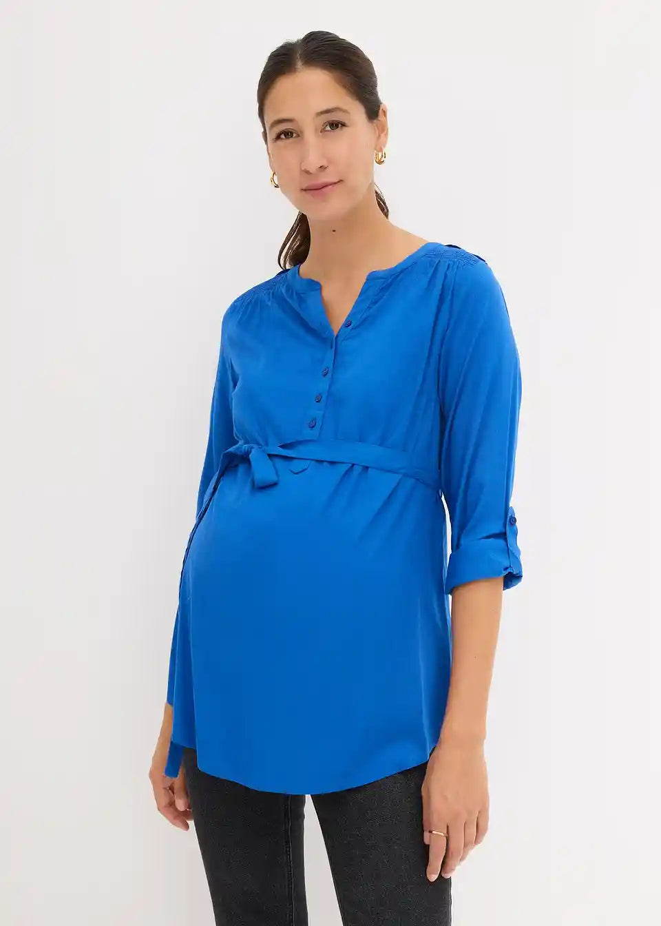 Trudnička bluza se zahvaljujući laganom viskoznom materijalu dobro prilagođava rastućem trudničkom trbuščiću i ugodno prijanja na kožu. Pojas ističe trbuščić, ali se može i ukloniti. Nakon trudnoće omogućeno je jednostavno dojenje zahvaljujući prednjem dijelu s gumbima.