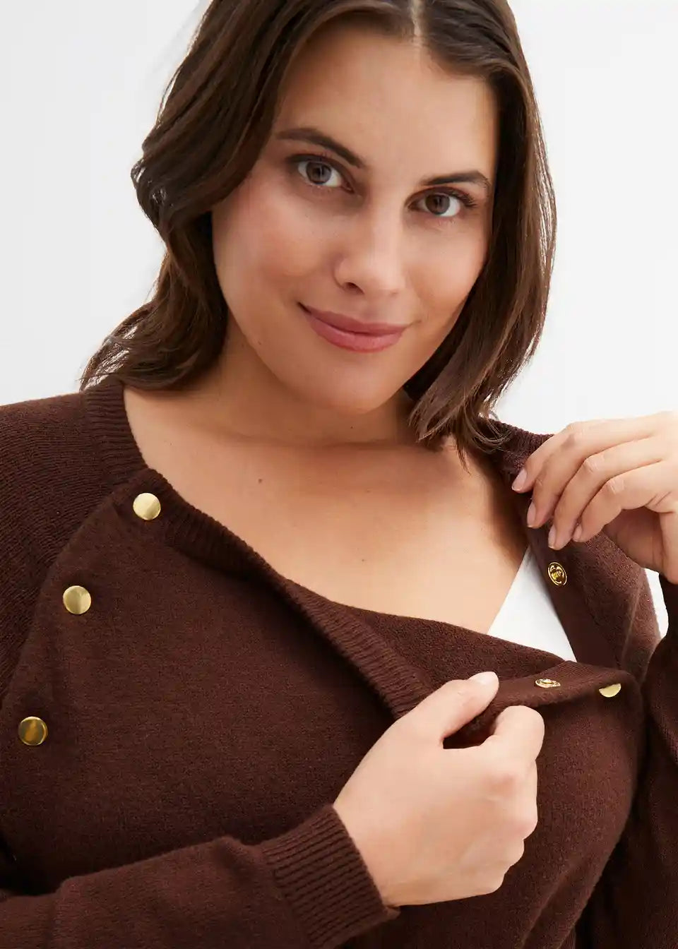 Ovaj pleteni pulover pogodan je za svaki mjesec trudnoće, a kasnije i kao pulover za dojenje zahvaljujući gumbima sa strane na ovratniku. Osobito mekan i udoban materijal. Ova kombinacija osigurava ugodan i topao osjećaj tijekom nošenja.