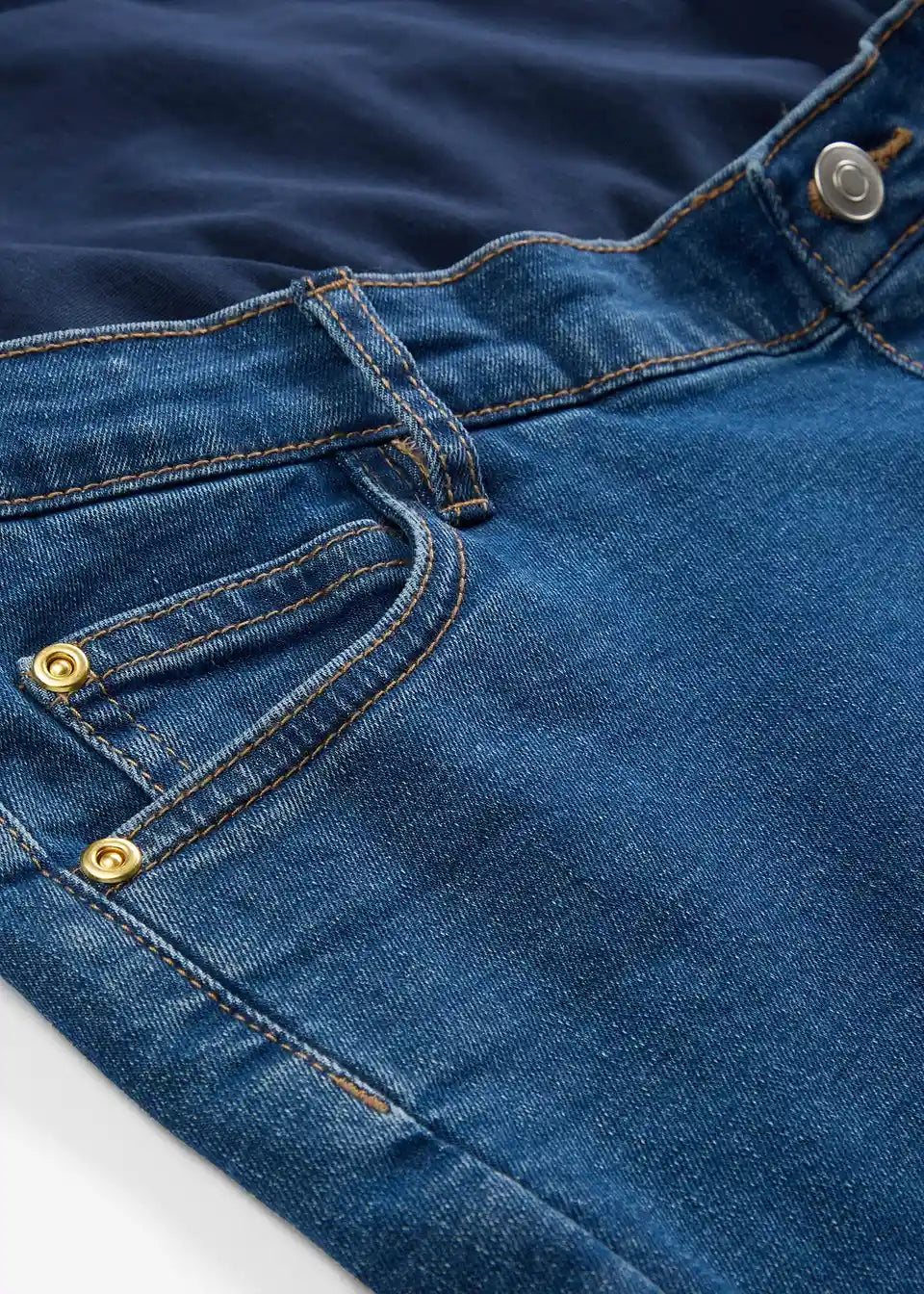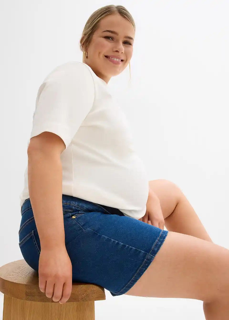 5-džepne traper kratke hlače od pamučnog trapera s udjelom elastana za visoku udobnost nošenja. Udoban kroj s ravnim nogavicama. Široki, ušiveni pojas od džerseja od pamuka s malo elastana osigurava optimalno prianjanje uz trbuh. Podesiva elastična vrpca u pojasu omogućuje namještanje širine, tako da se hlače mogu prilagoditi mjesecu trudnoće.