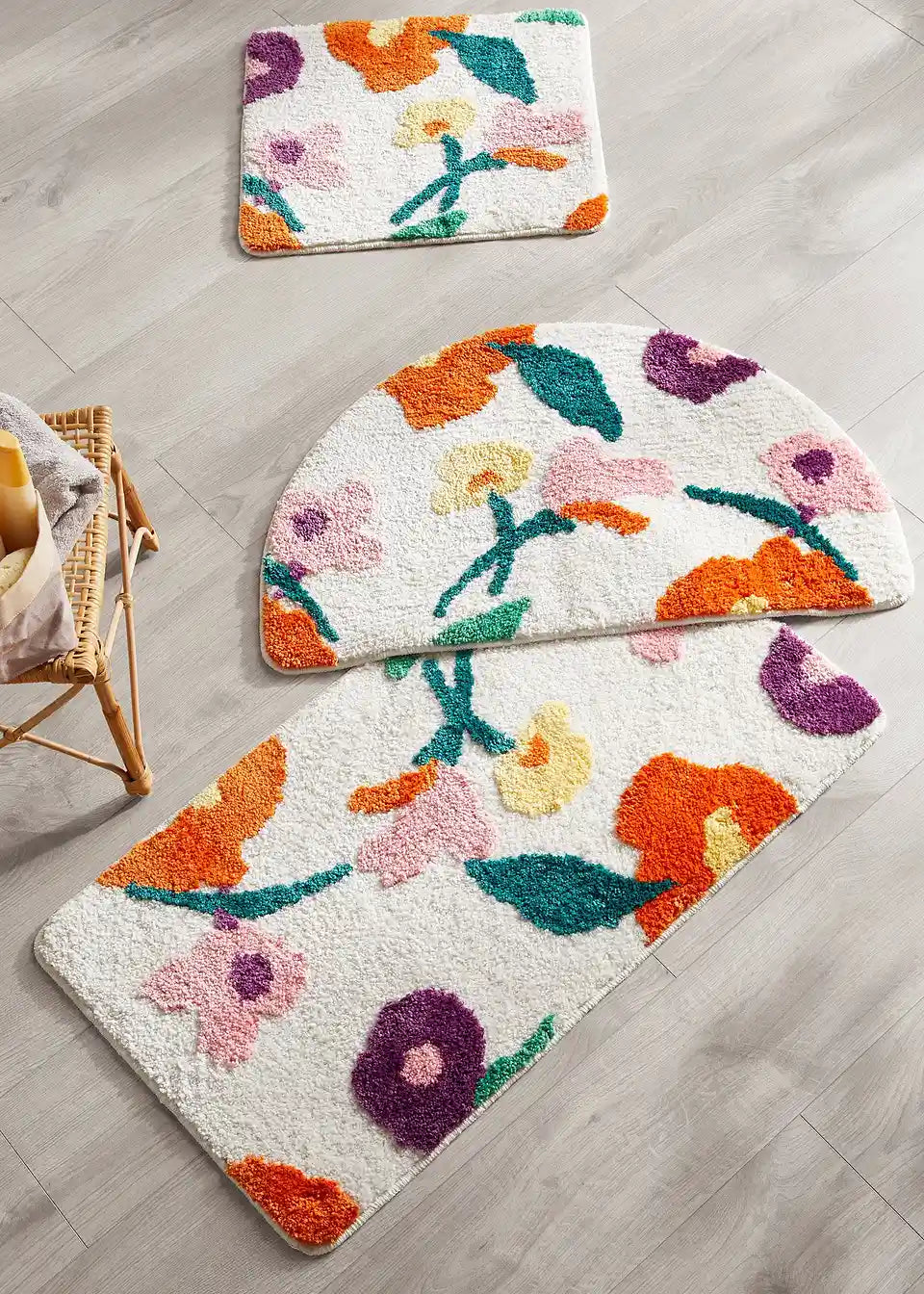 Čupav kupaonski tepih sa šarenim cvjetnim uzorkom