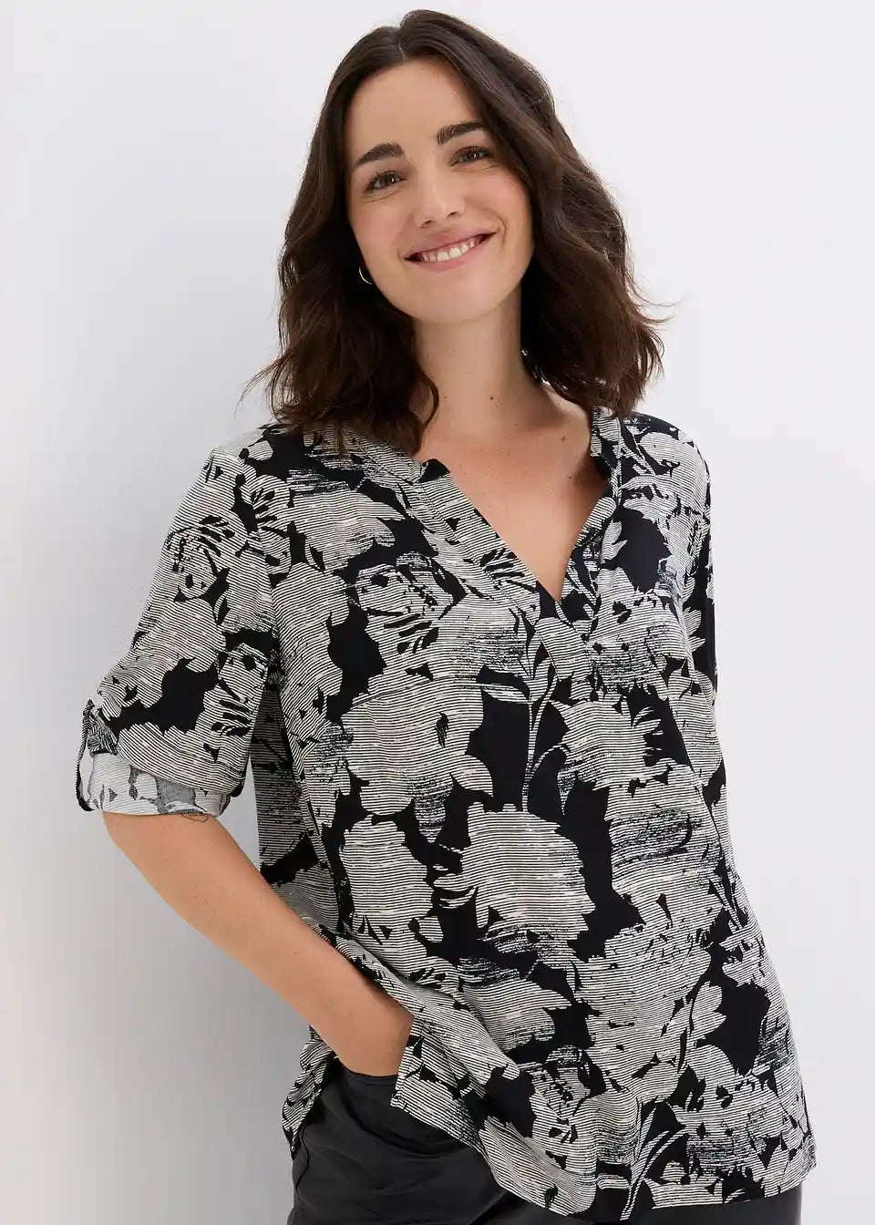 Privlačna bluzonska tunika s V-izrezom. Svaki komad je unikat.