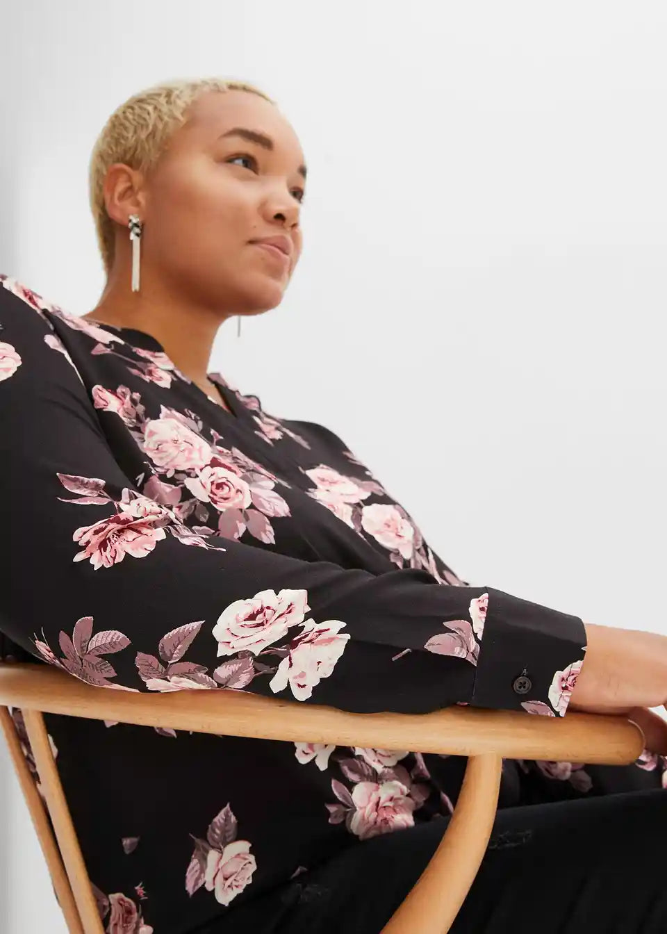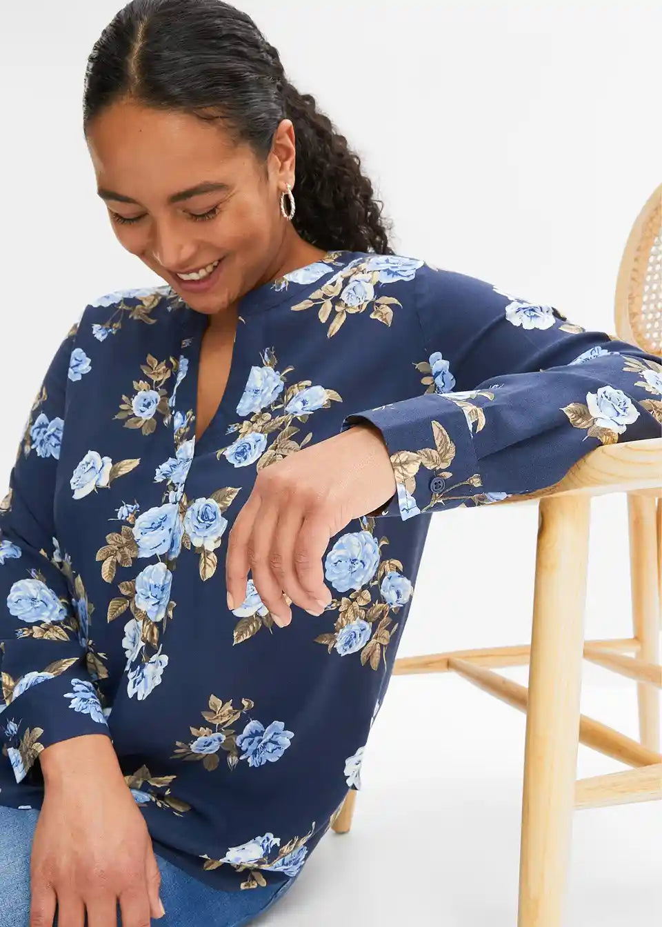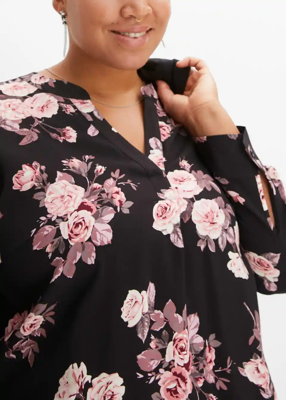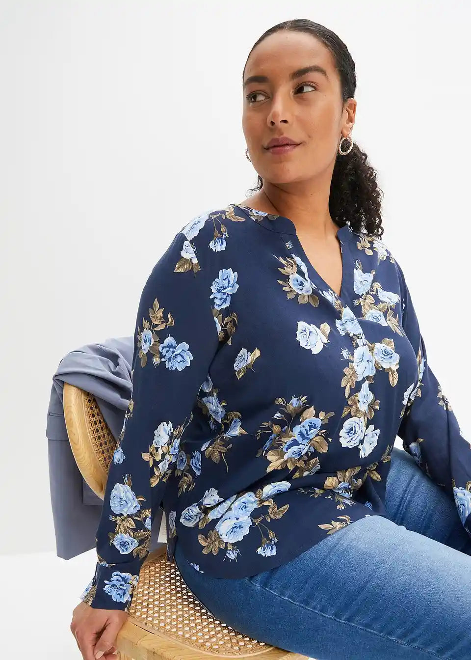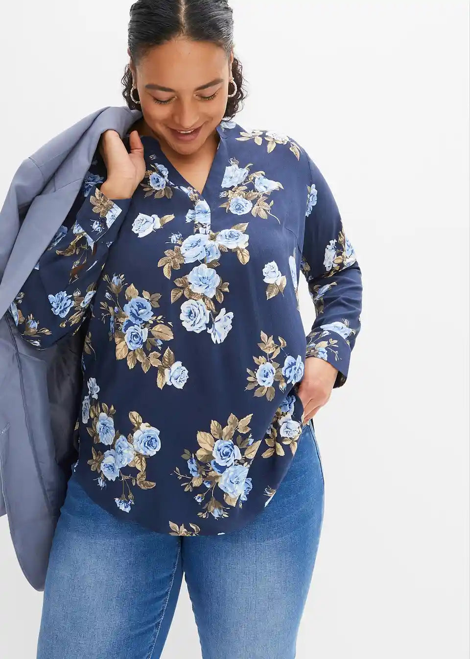 Moderna bluza s bočnim prorezima i zaobljenim rubom