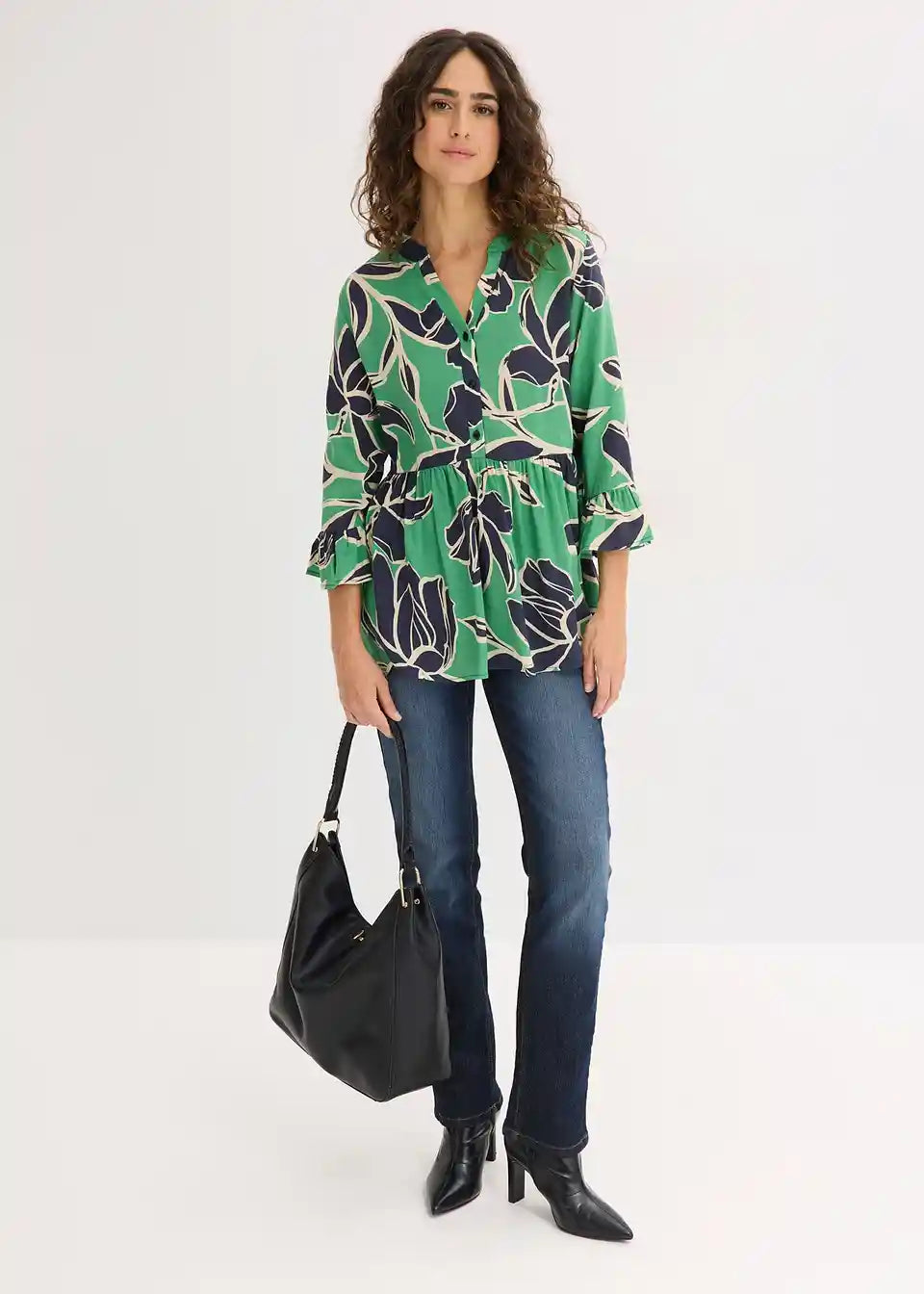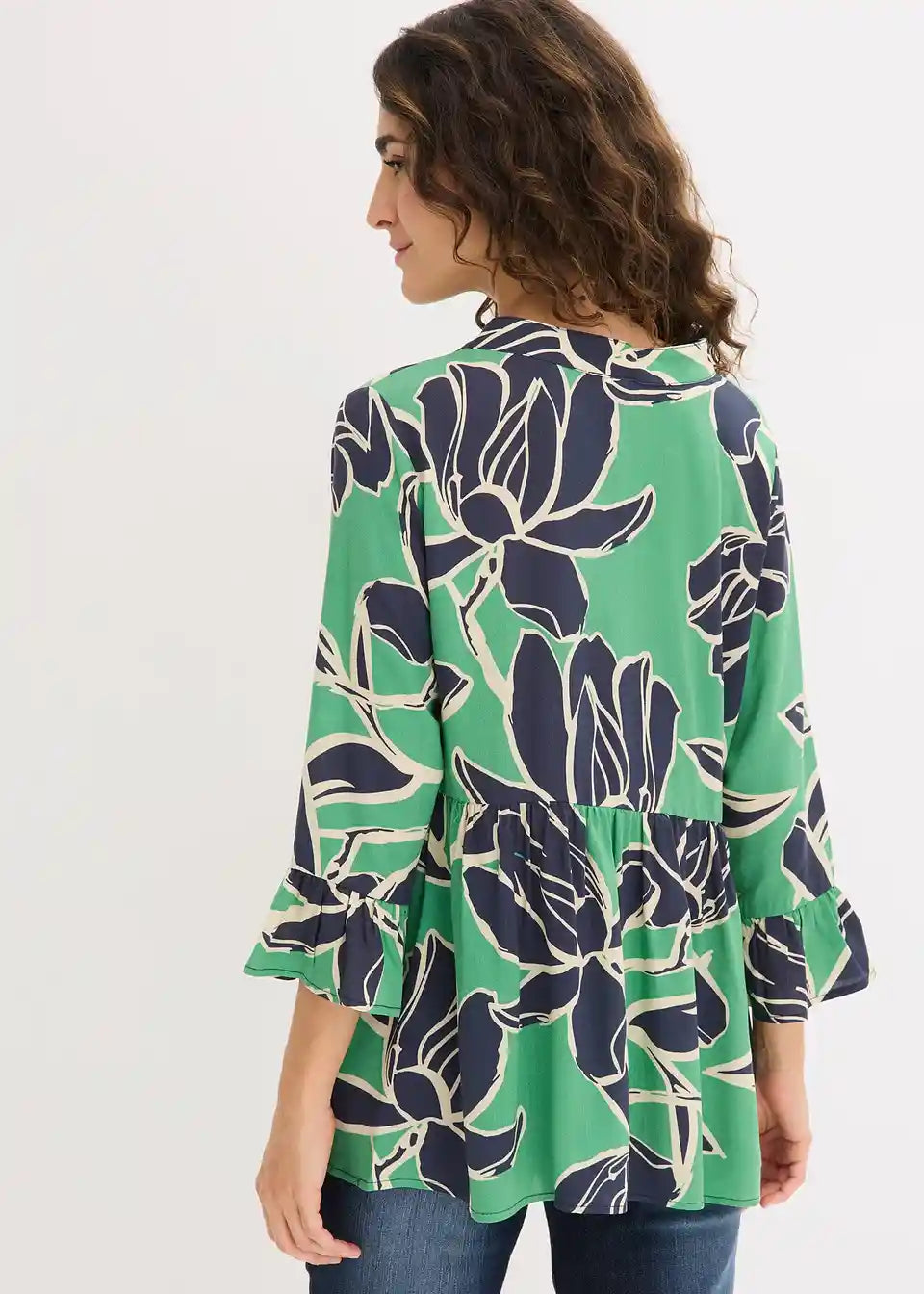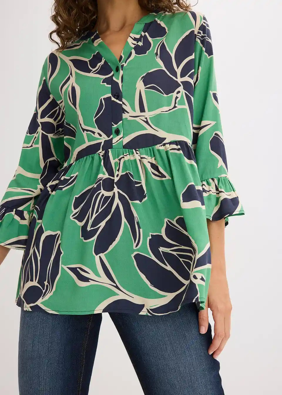 feminine tunika bluza od lepršave viskoze s polovičnom kopčanom trakom sprijeda