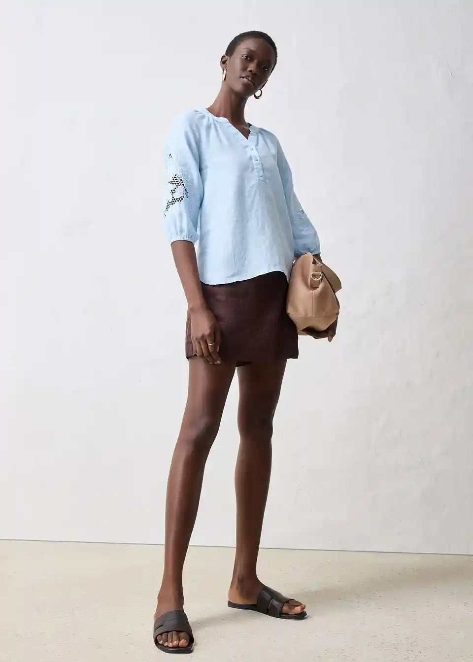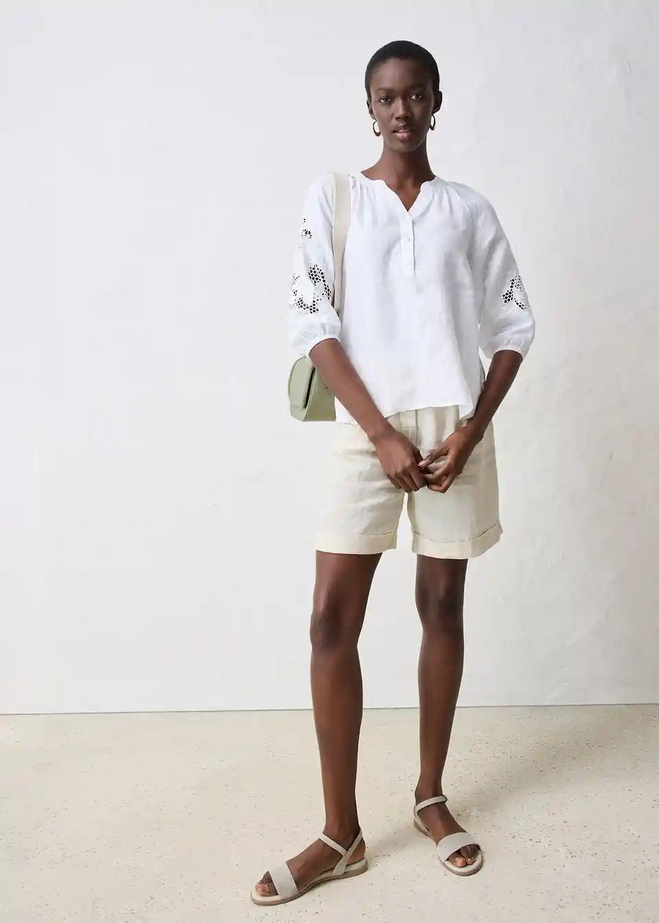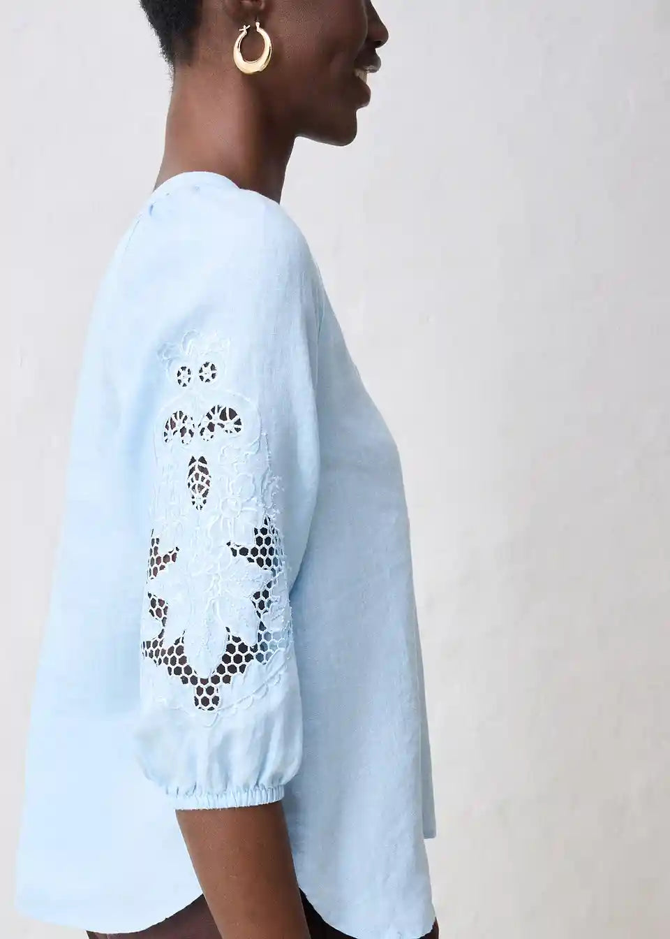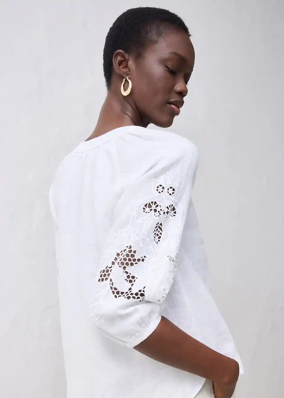 s lijepim vezom rupičastog uzorka na 3/4 rukavima, od čistog lana