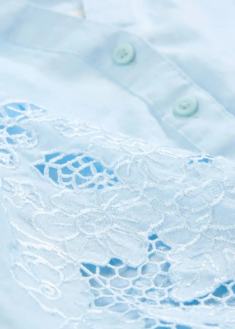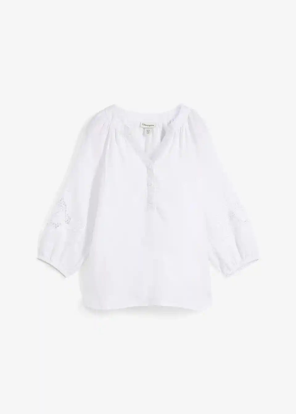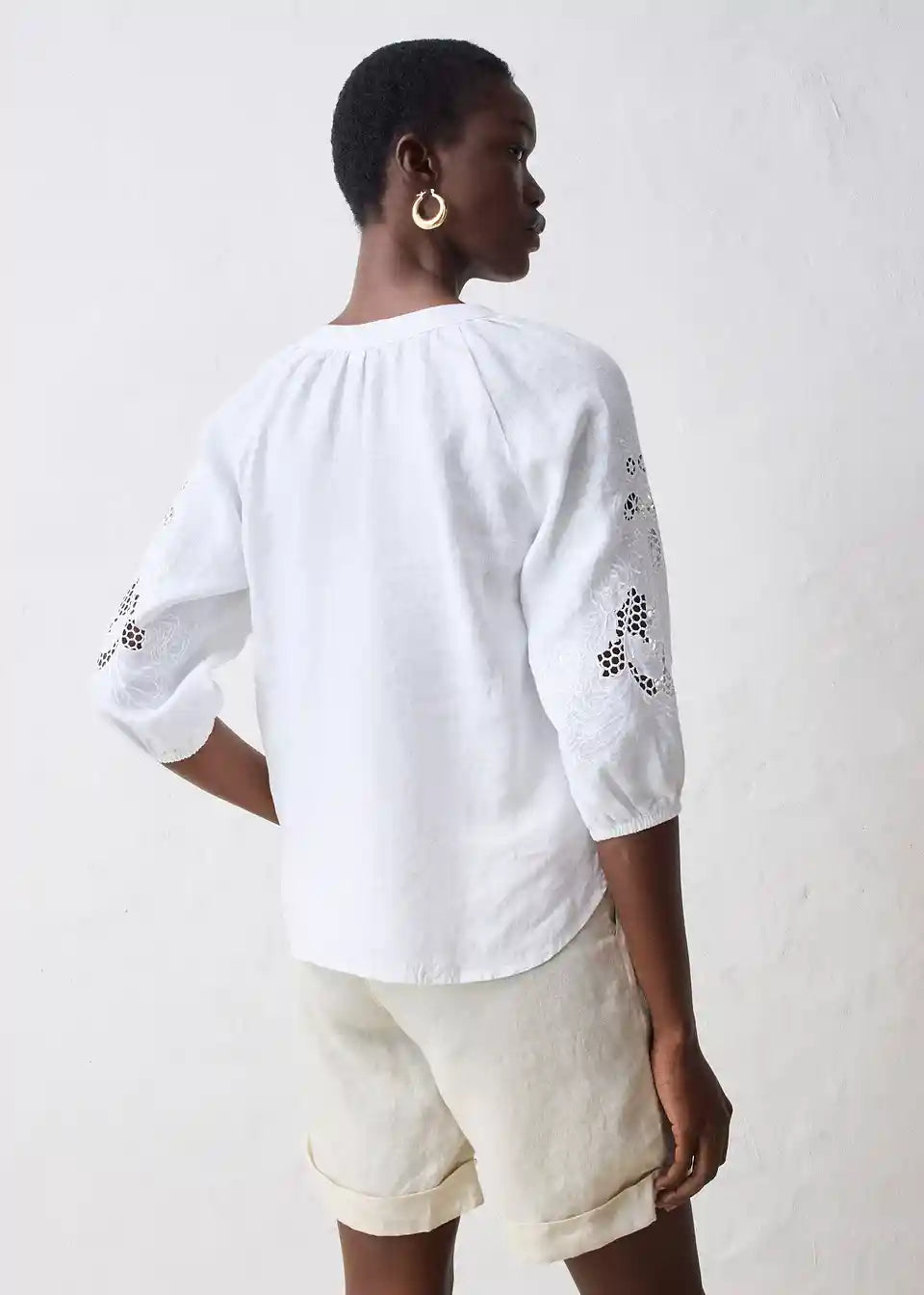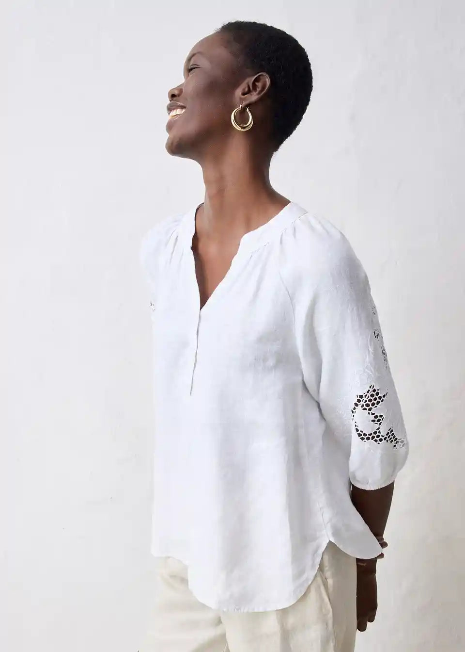 s lijepim vezom rupičastog uzorka na 3/4 rukavima, od čistog lana
