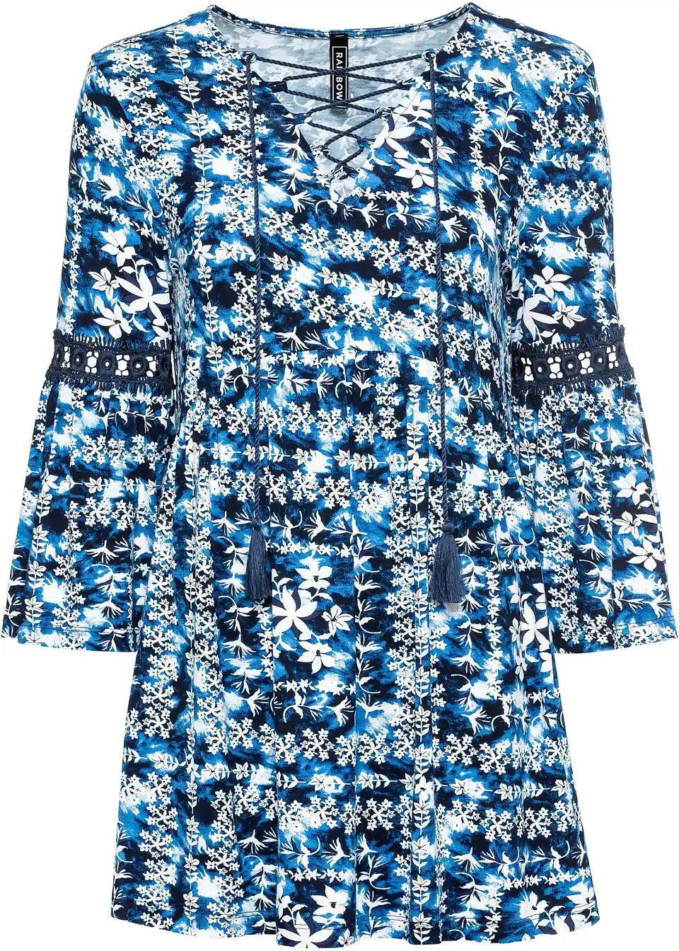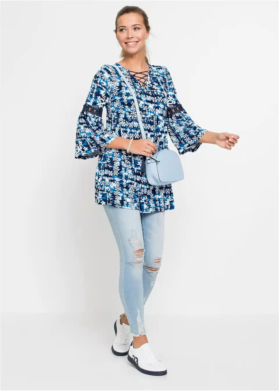 Moderna bluzica u stilu košulje s batik uzorkom i vezivanjem na izrezu