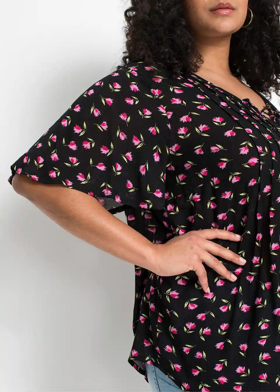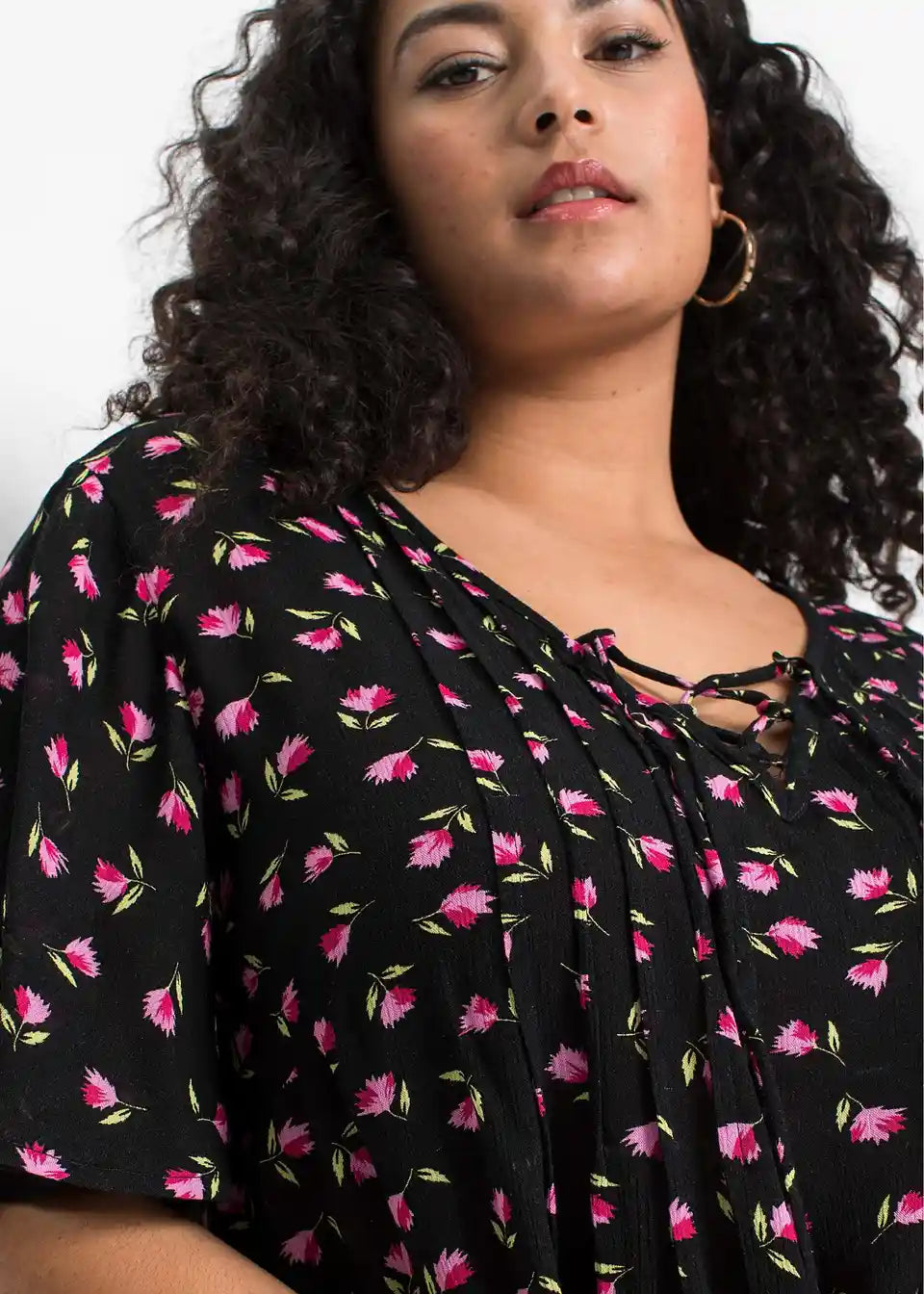 Široka tunika s vezicom na izrezu i ukrasnim naborima