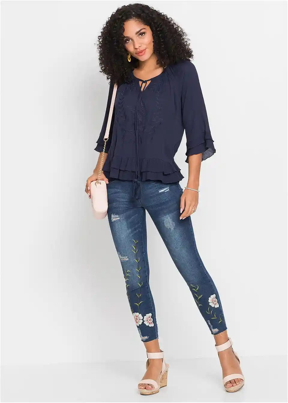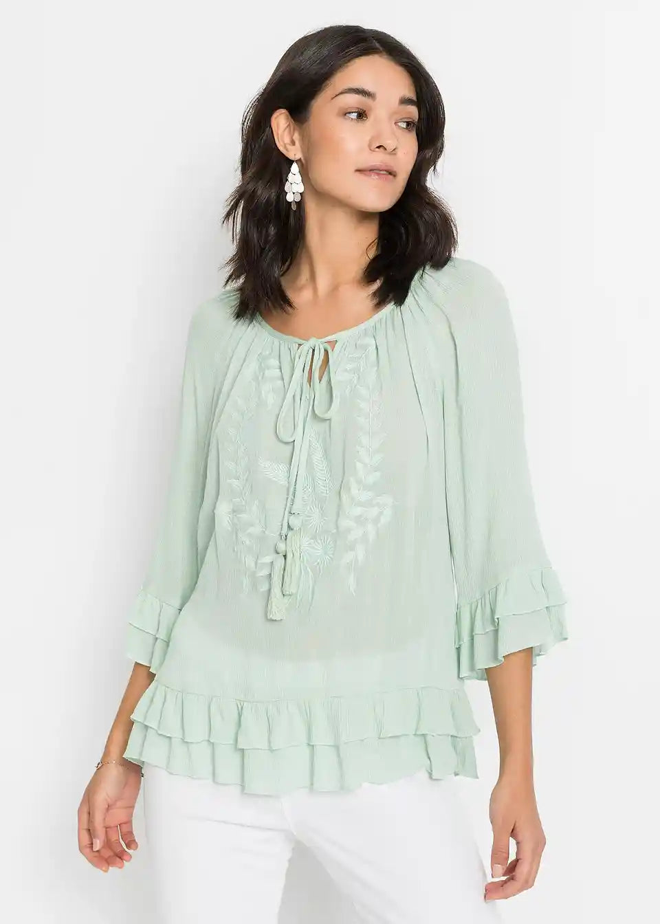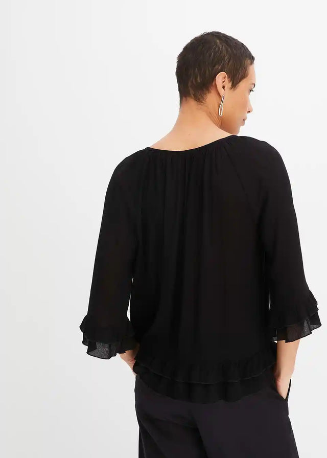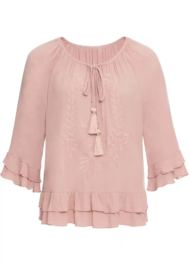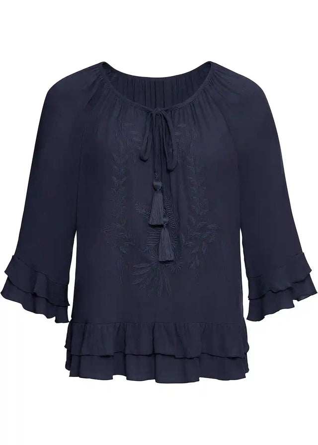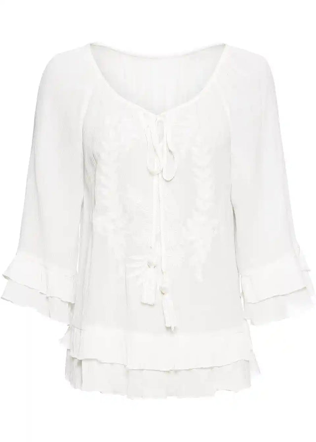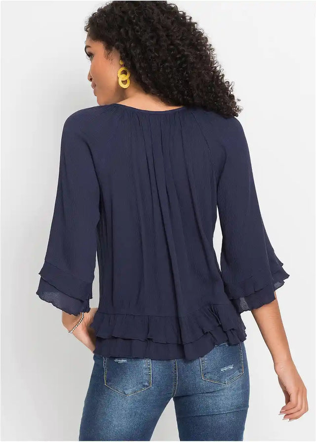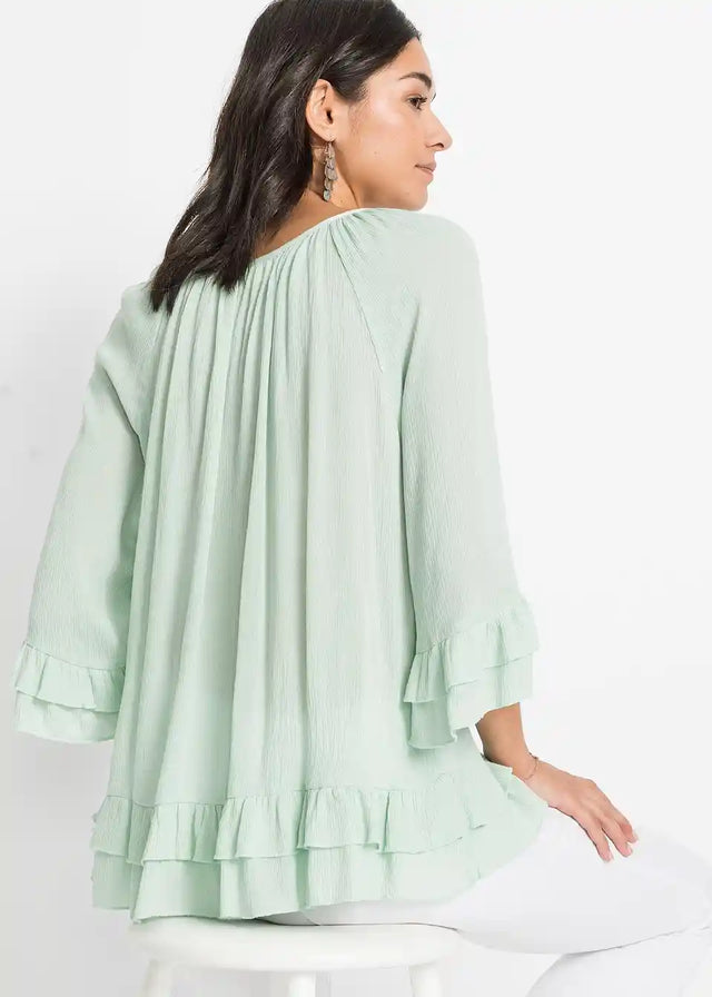 Ženstvena tunika s ukrasima i volanima